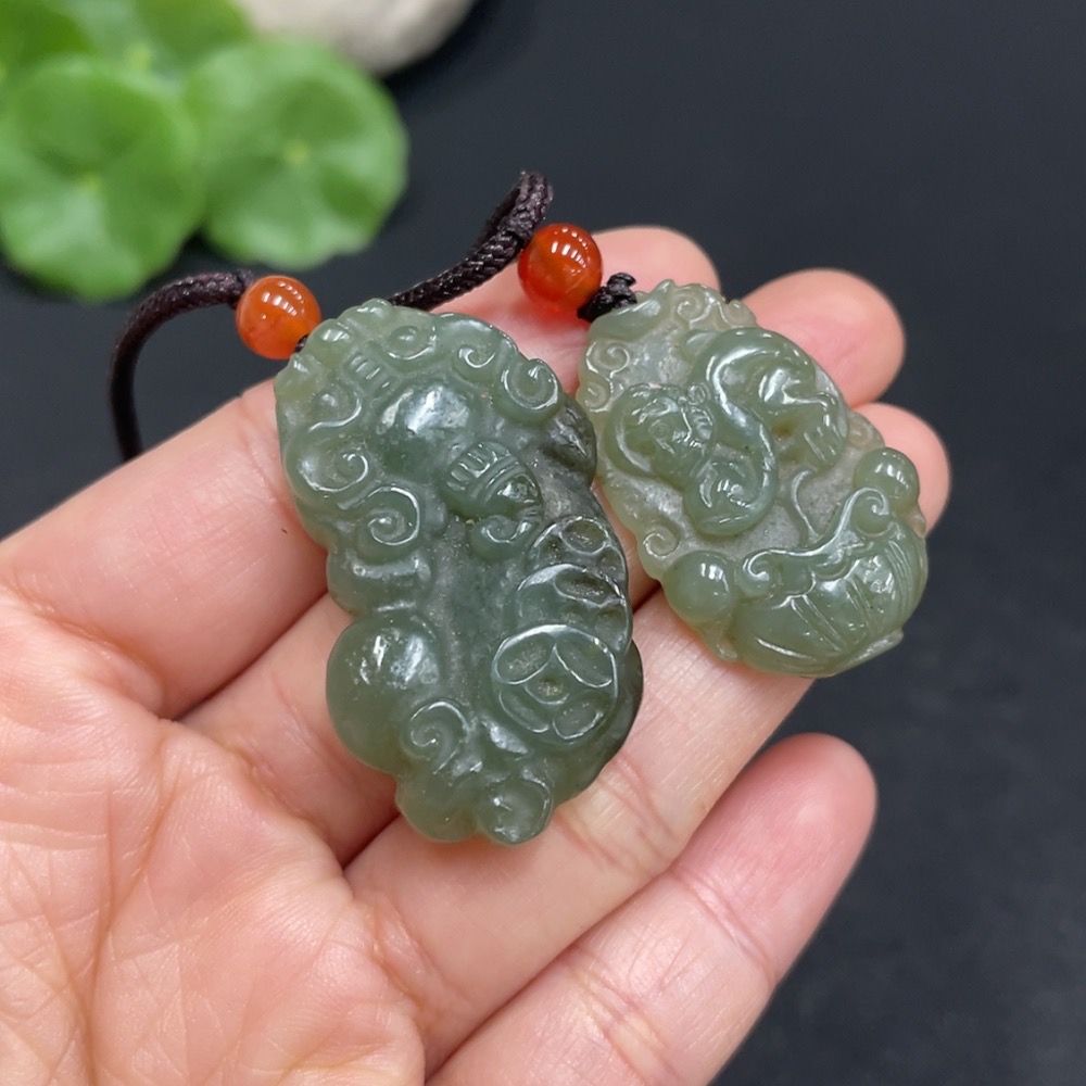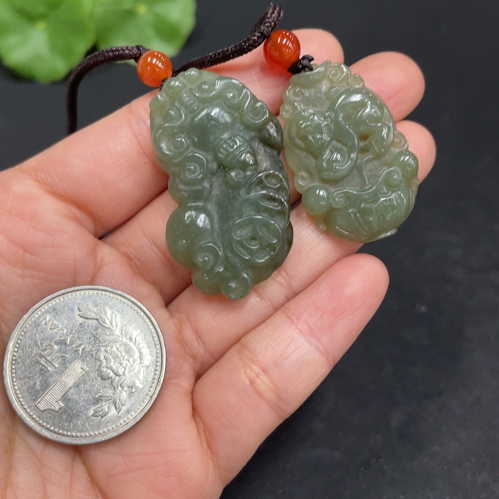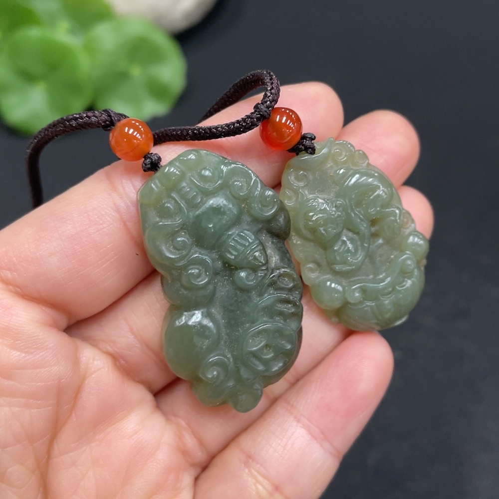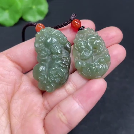 Hetian Jade Pendant - Spirit Monkey + Pi Xiu