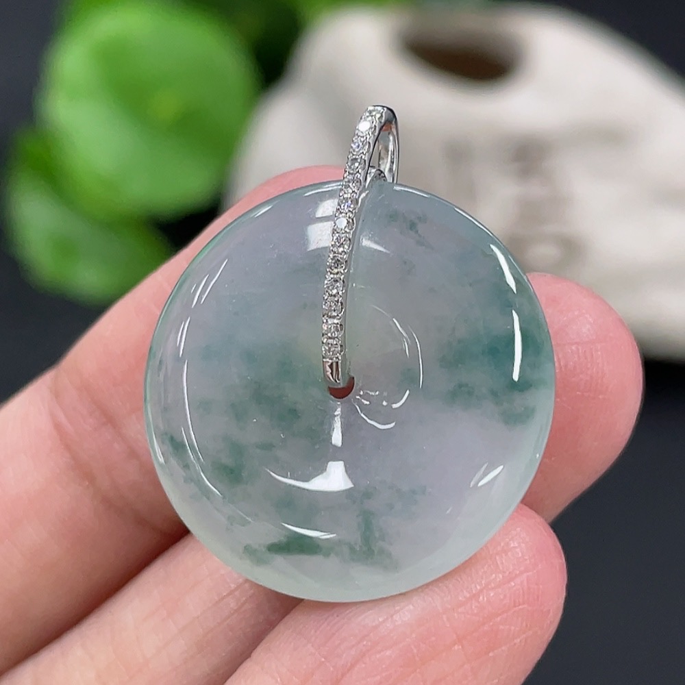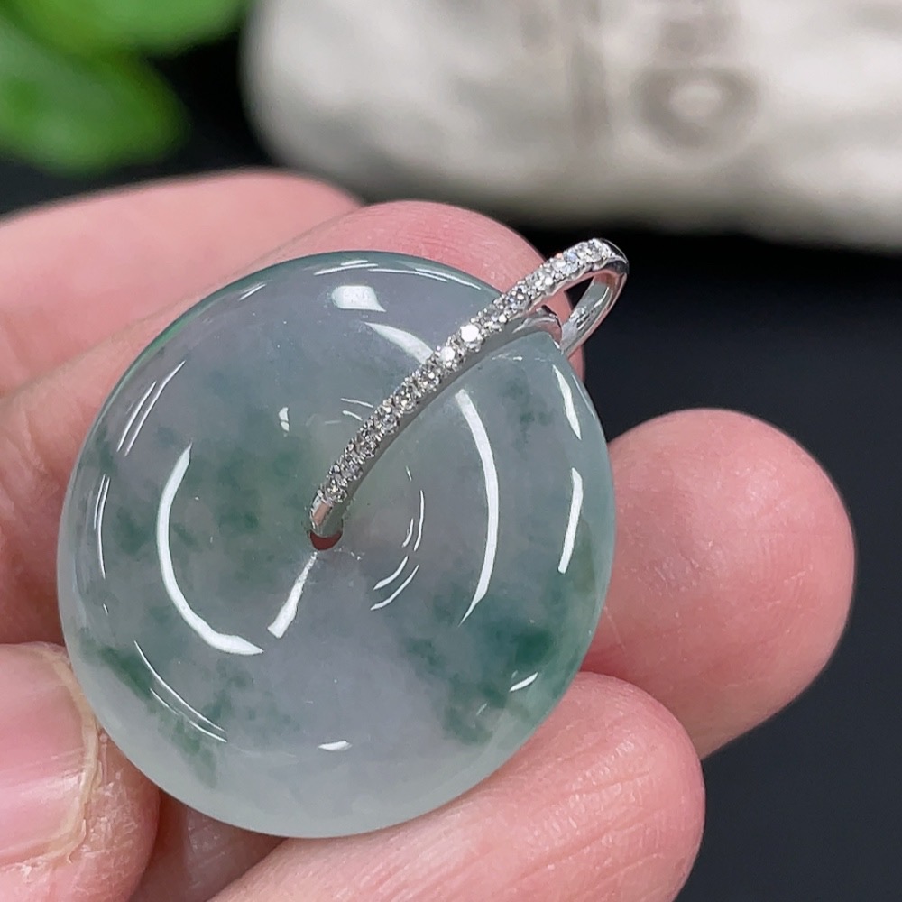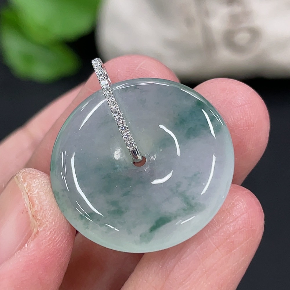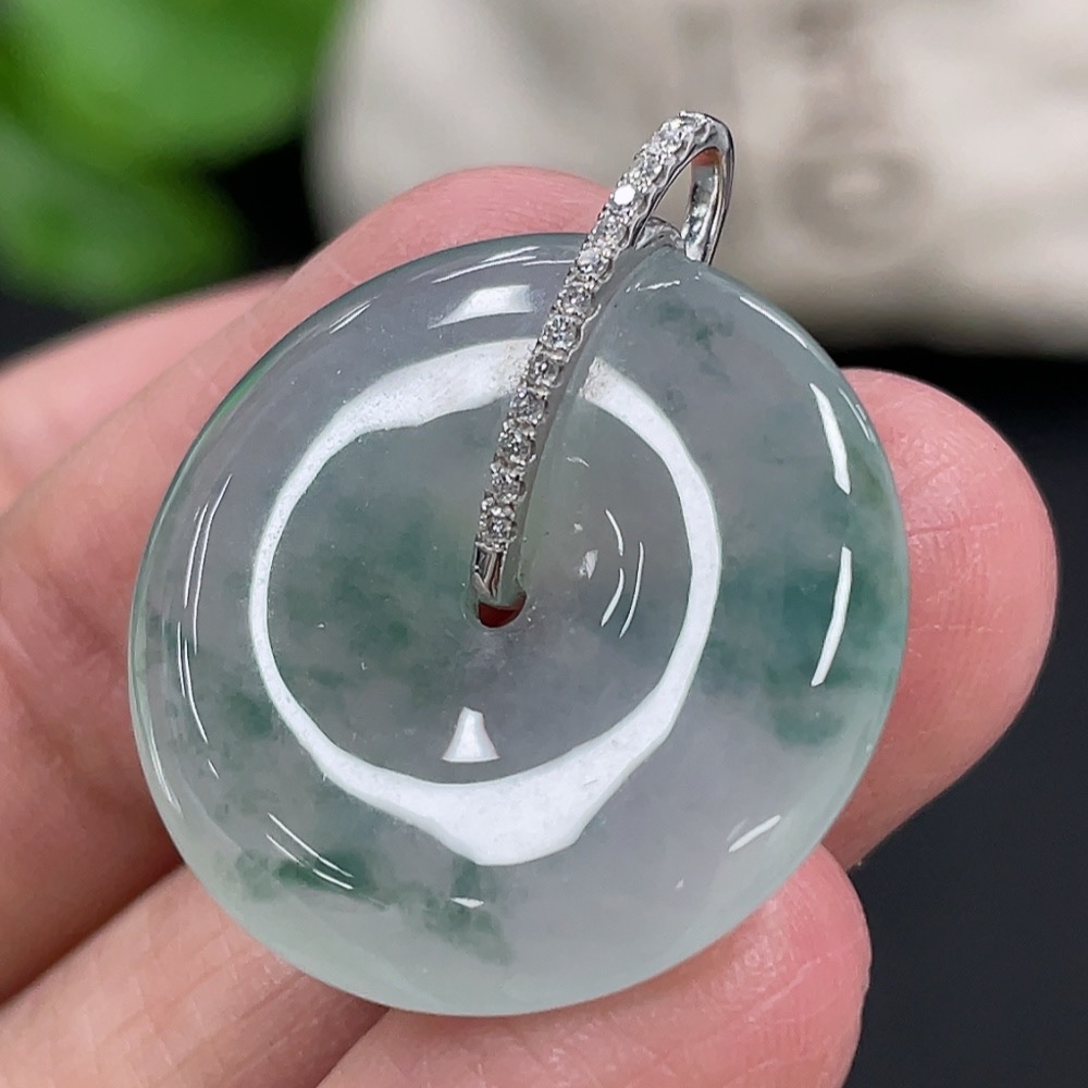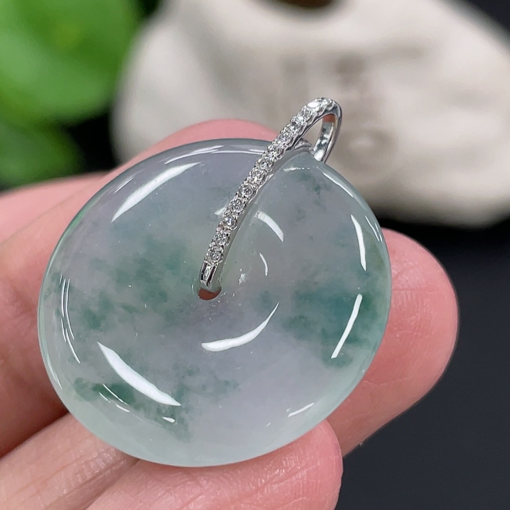 Jadeite Pendant Peace Buckle 18k with Diamond Accents Total Weight Approximately 5.94g