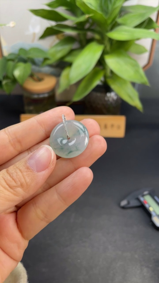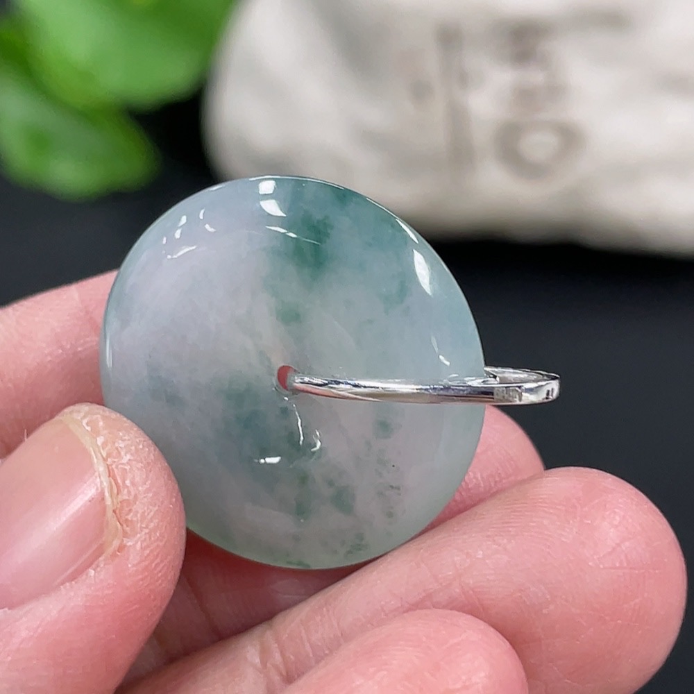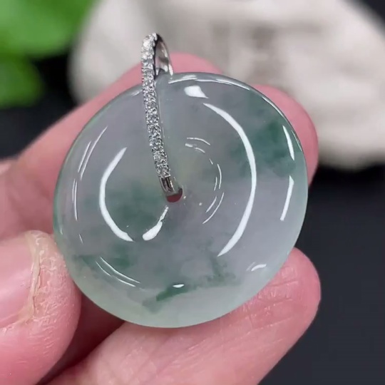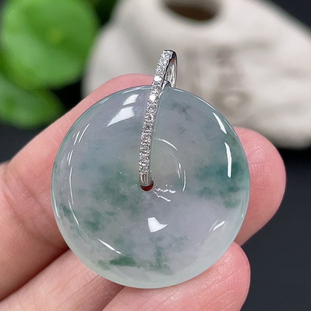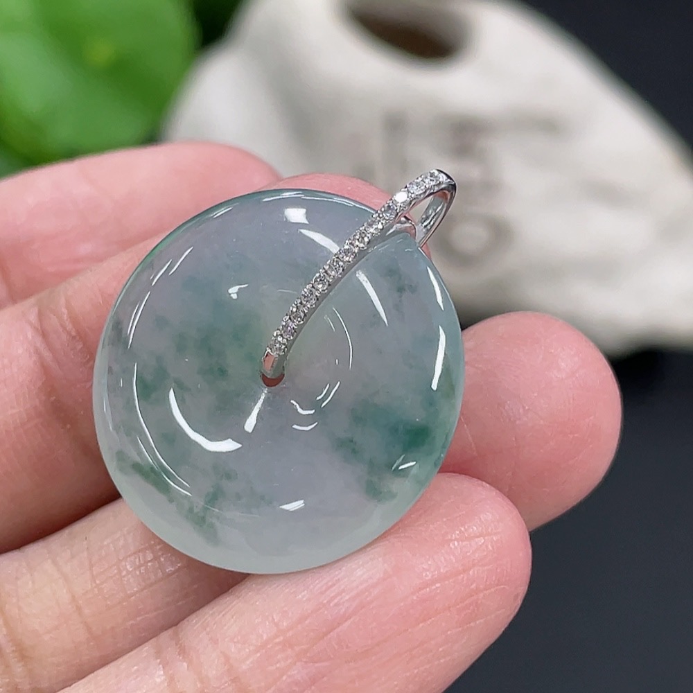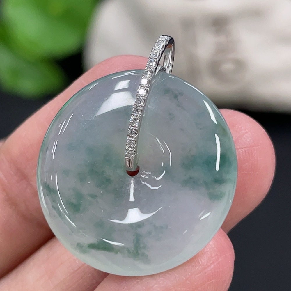 Jadeite Pendant Peace Buckle 18k with Diamond Accents Total Weight Approximately 5.94g