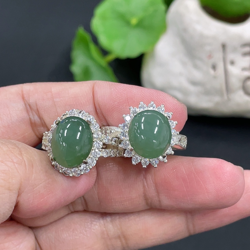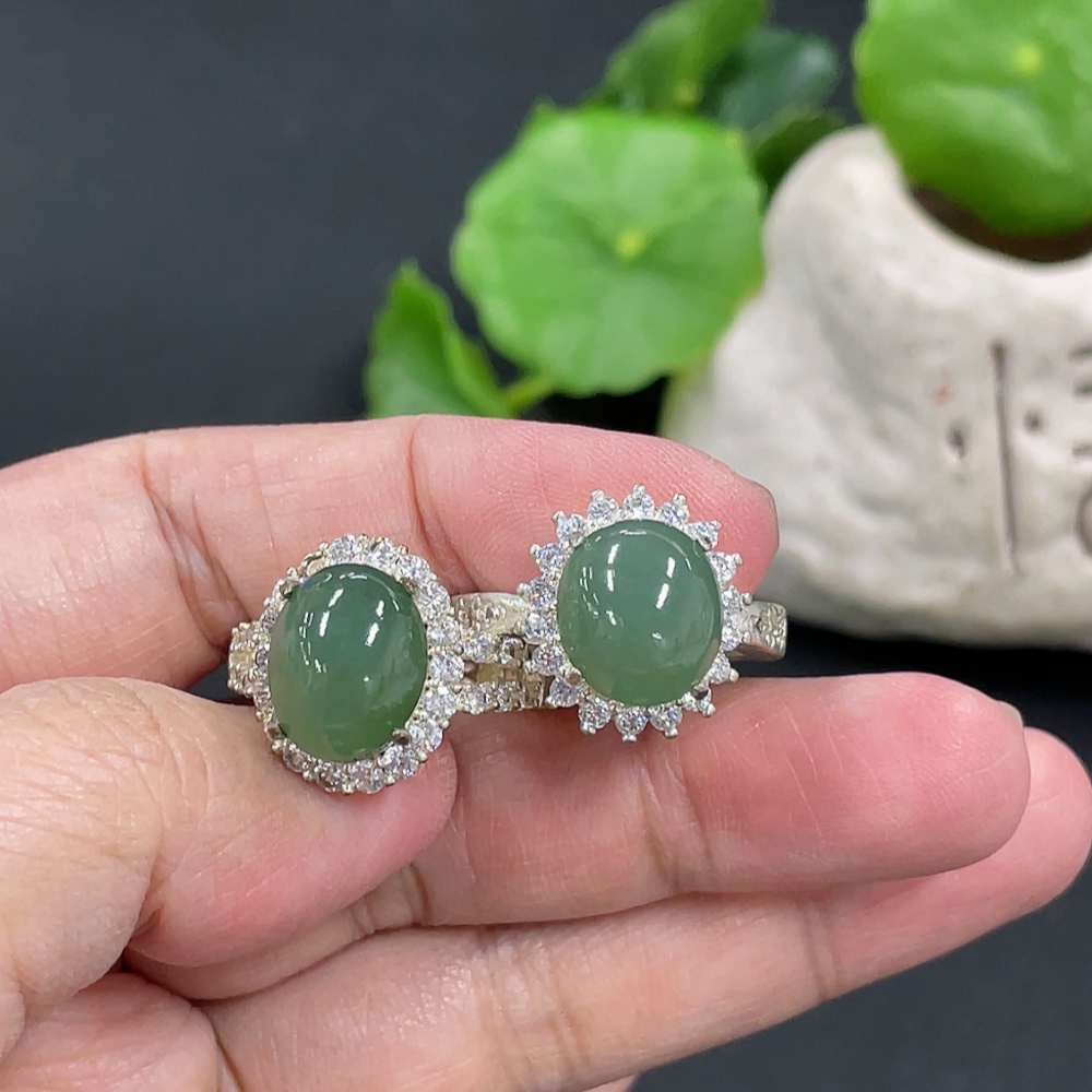 Jadeite cabochon, non-gold inlaid, total weight approx. 16.2g