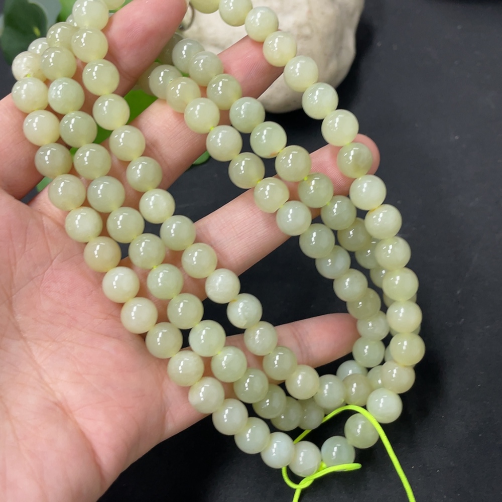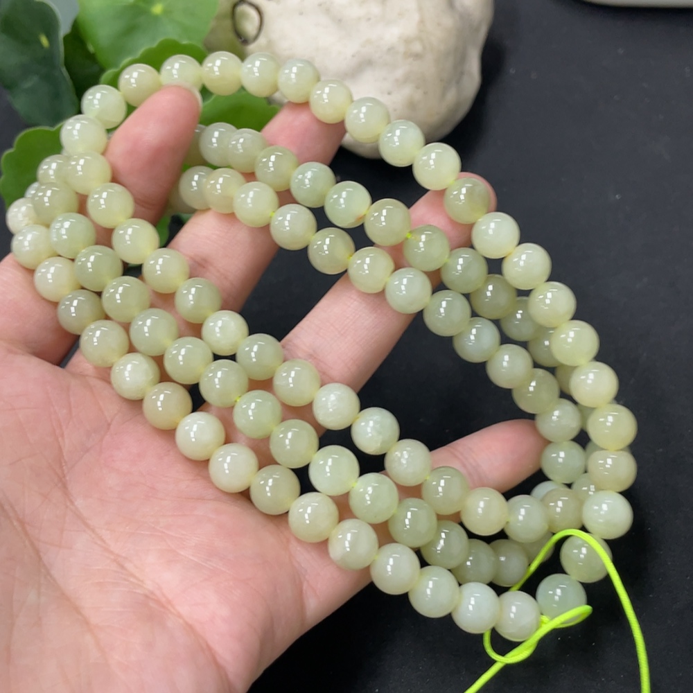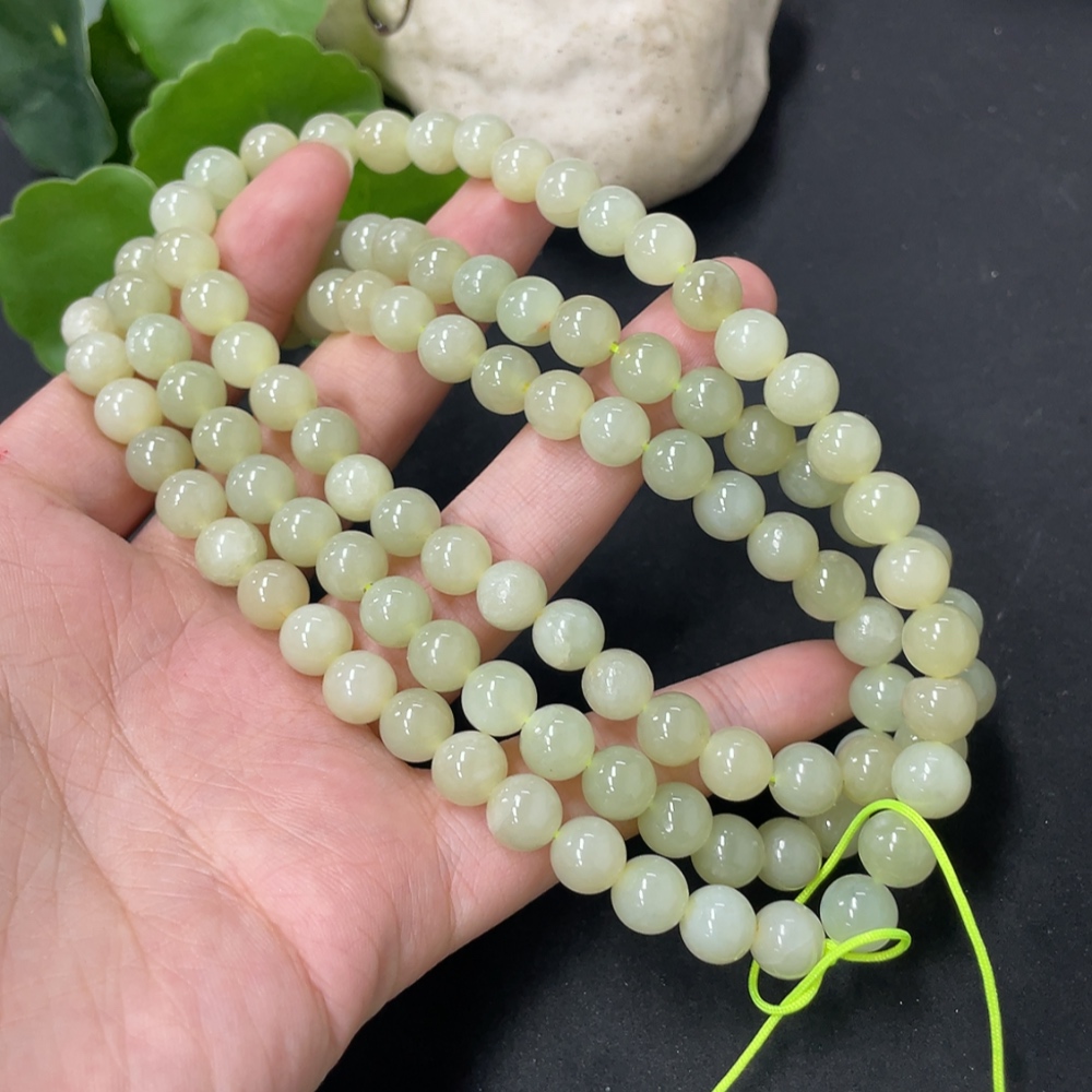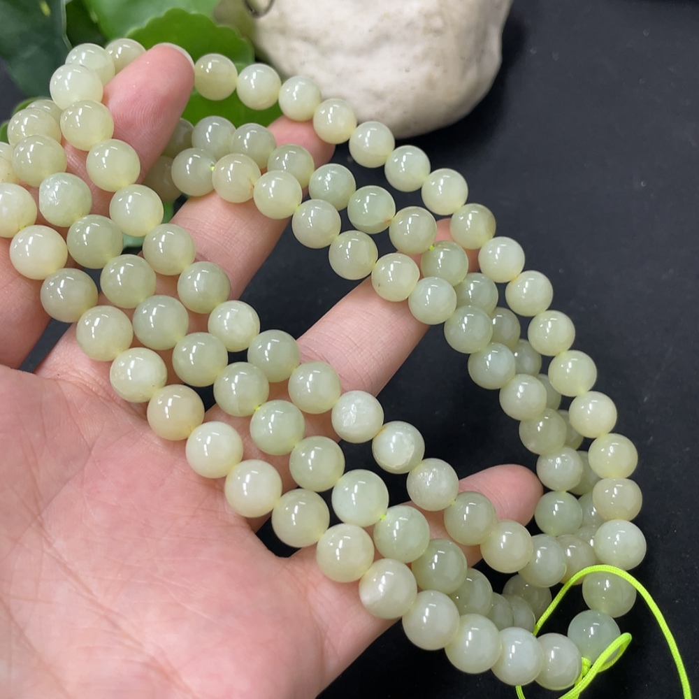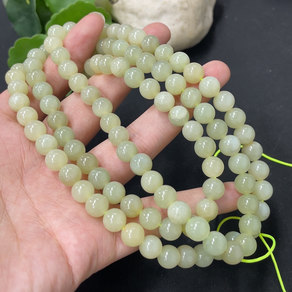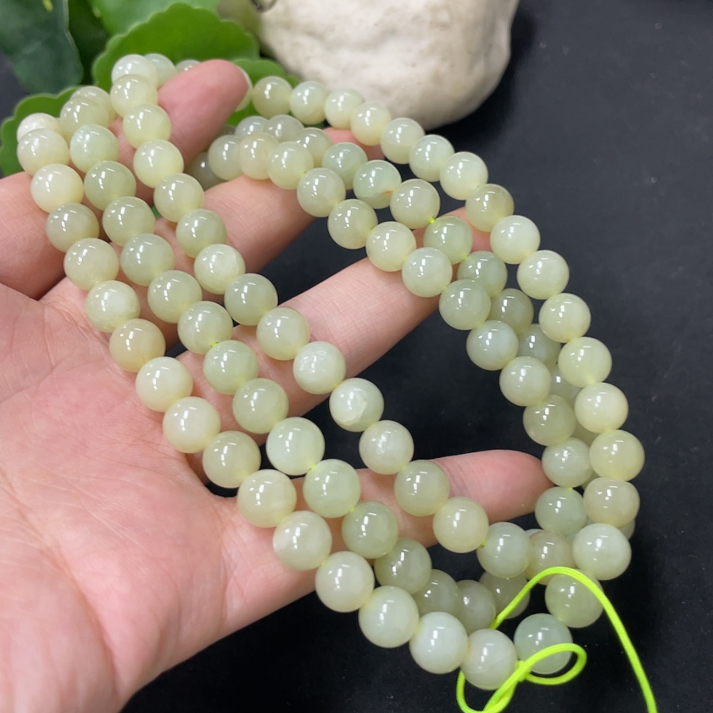 Hetian Jade Bead Necklace, Approx. 7.7mm, Total Weight Approx. 86.8g