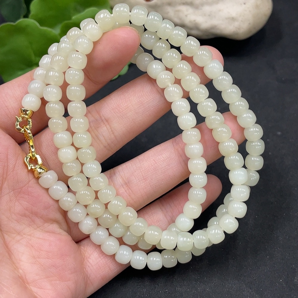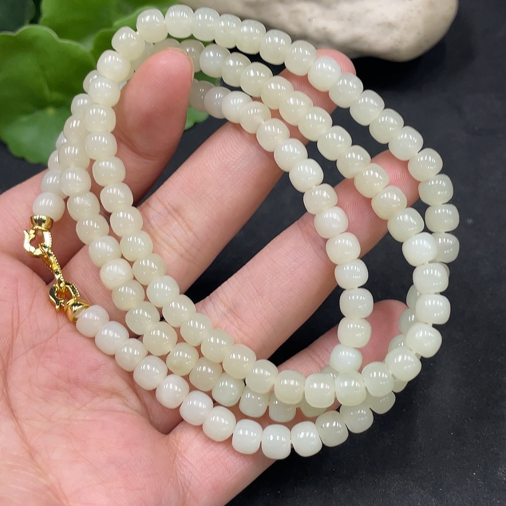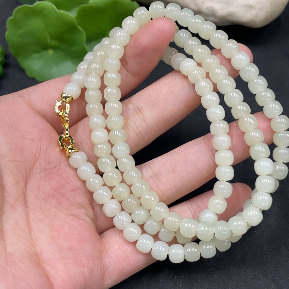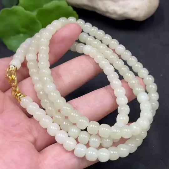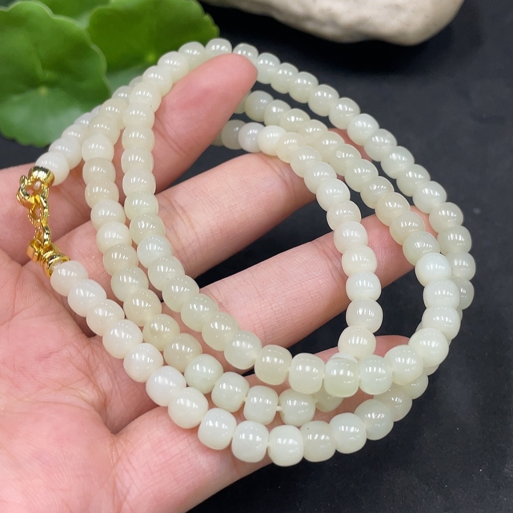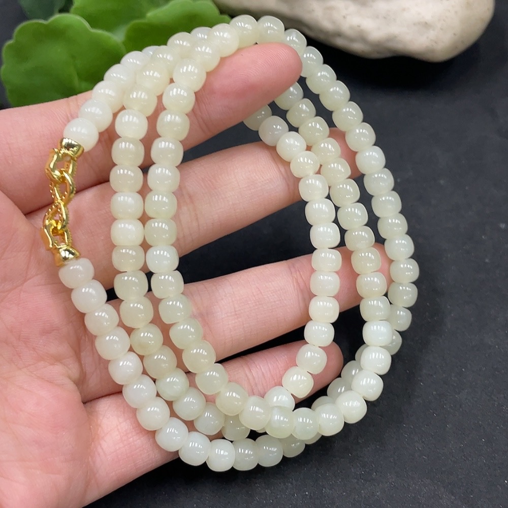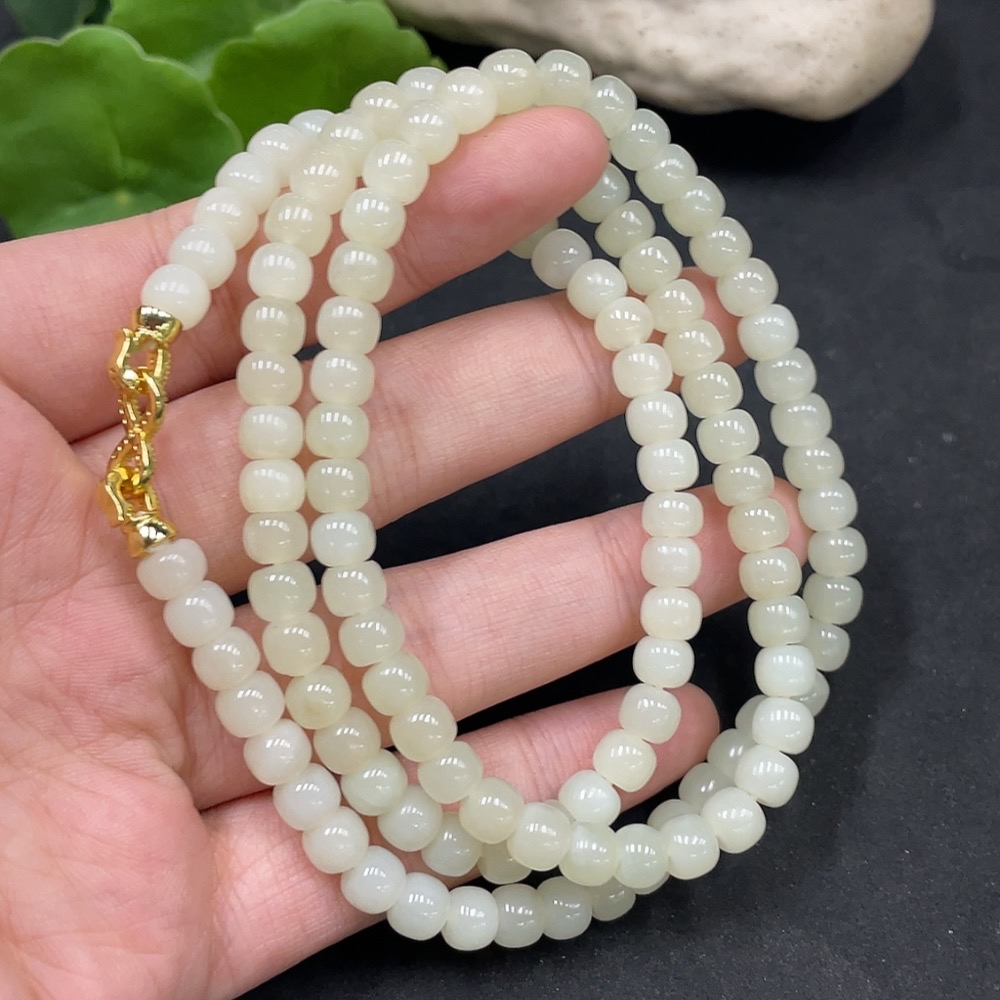 Hetian Jade Bead Necklace Non-Gold Approx. 5.7mm Total Weight About 39g