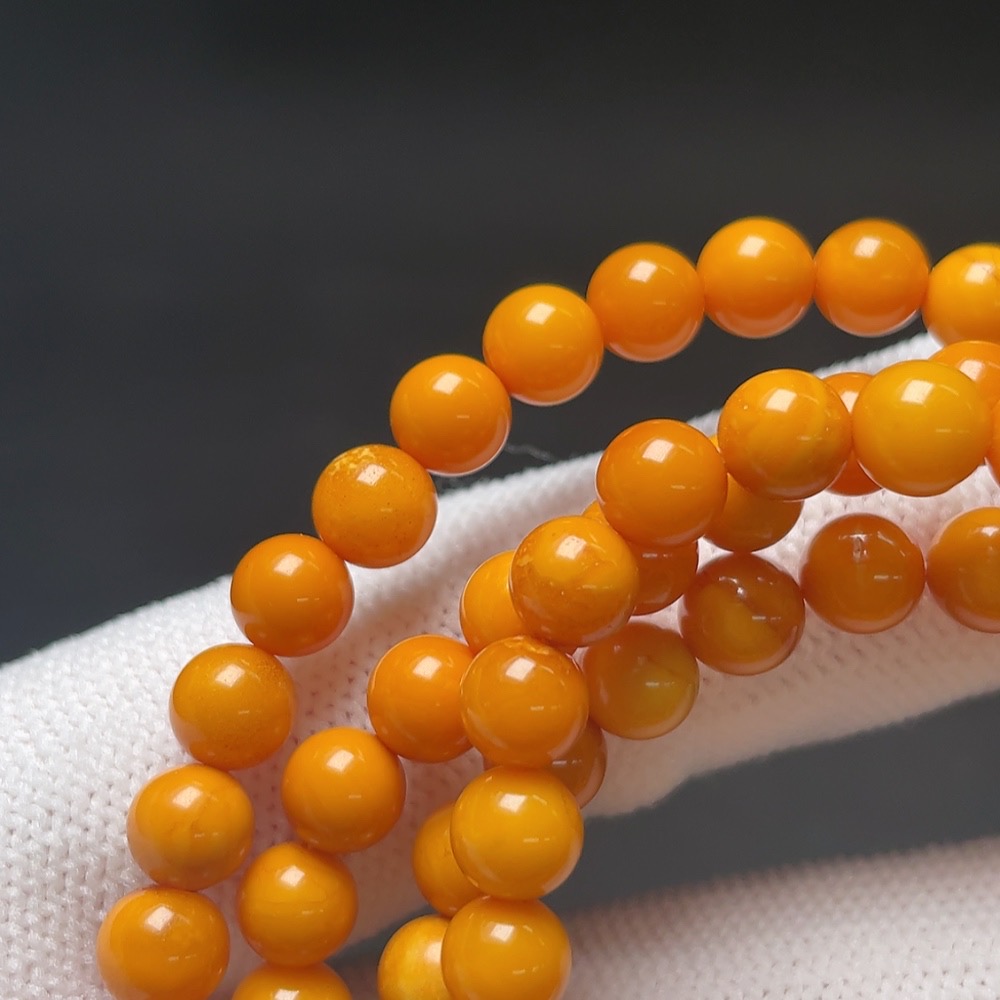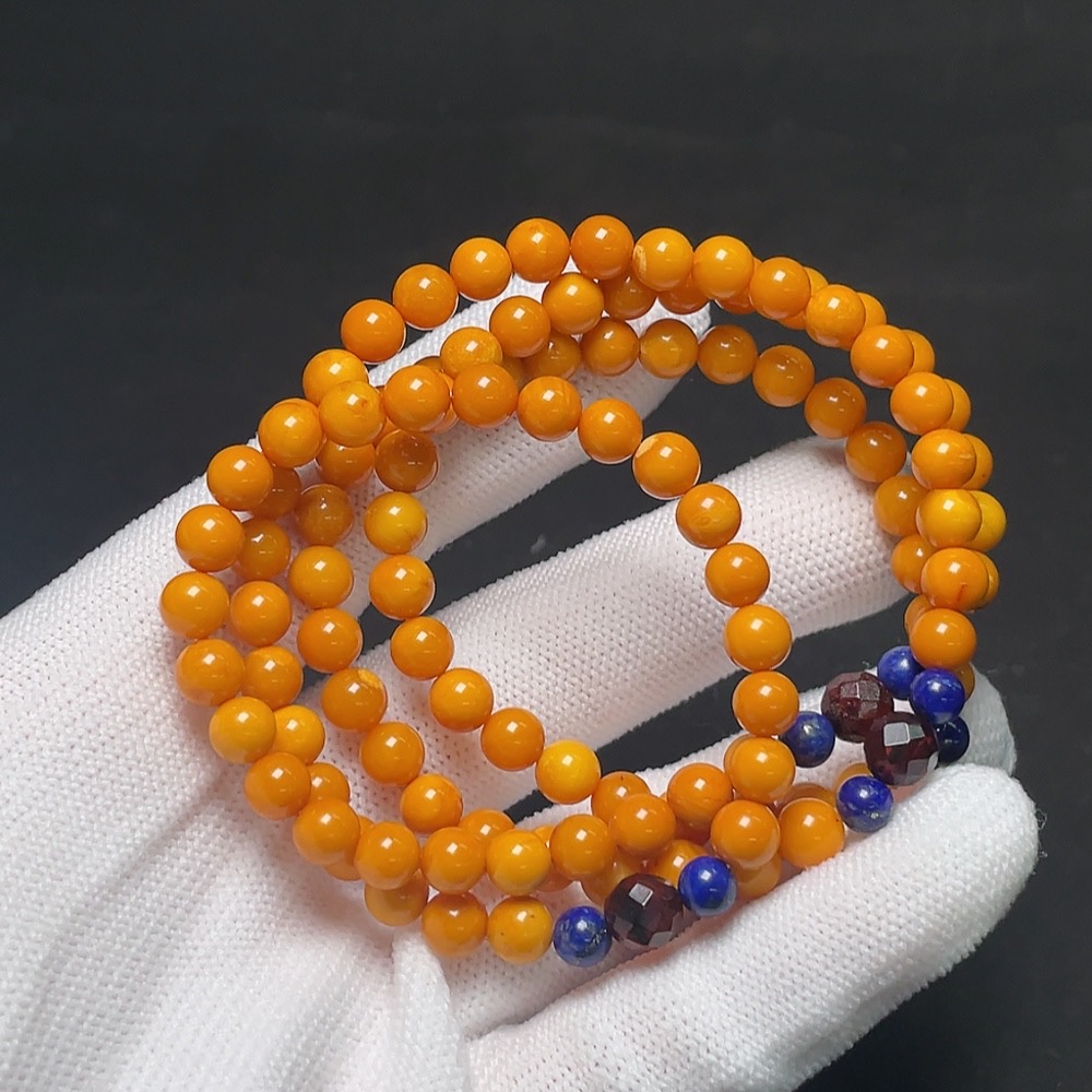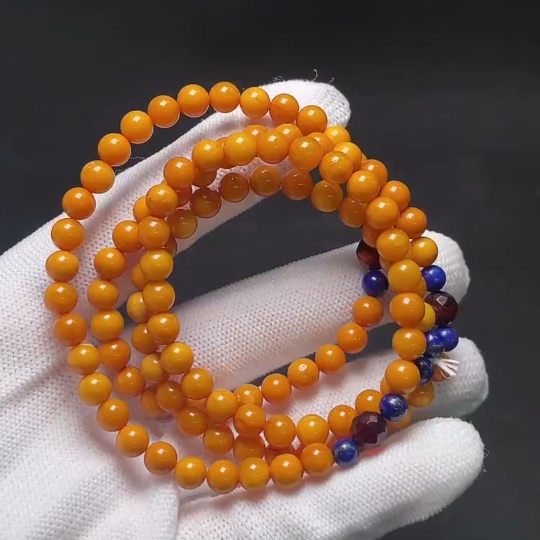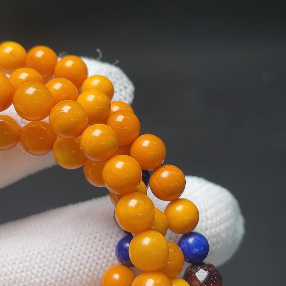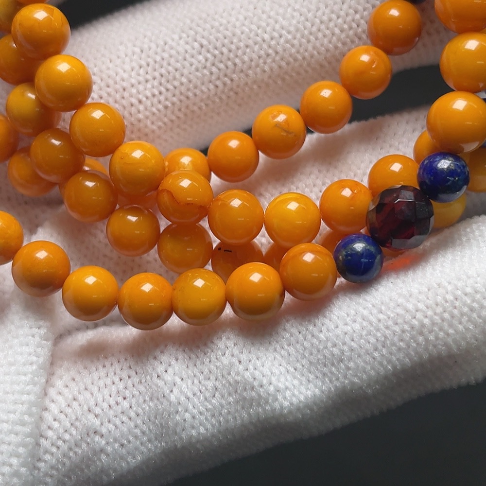 Amber and beeswax bead necklace with non-natural gemstones, total weight approximately 15.5g, bead size about 6mm