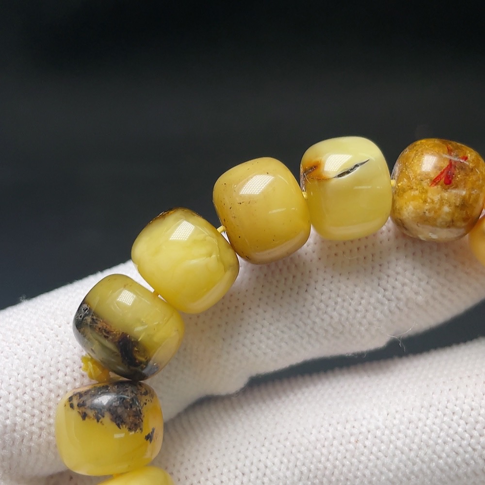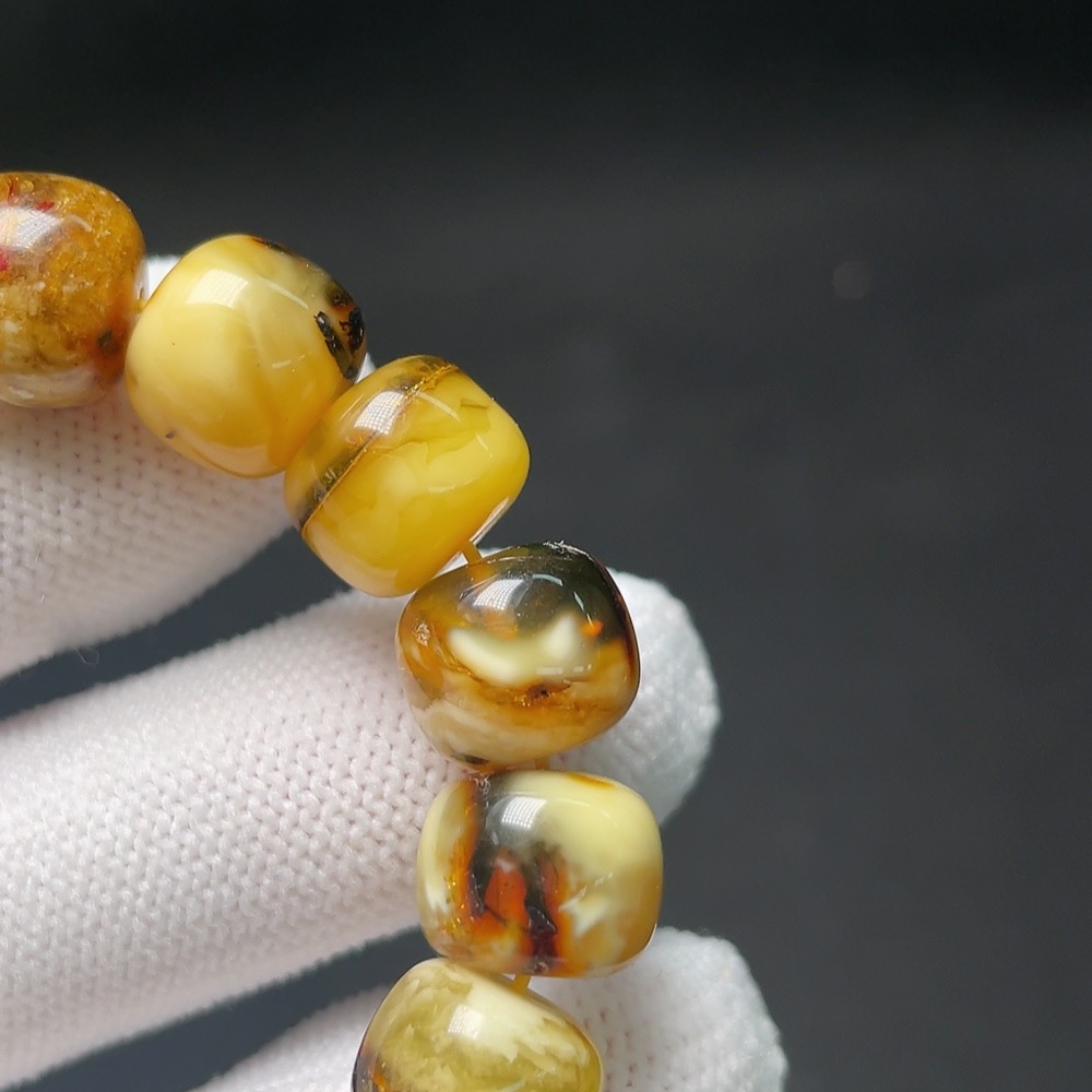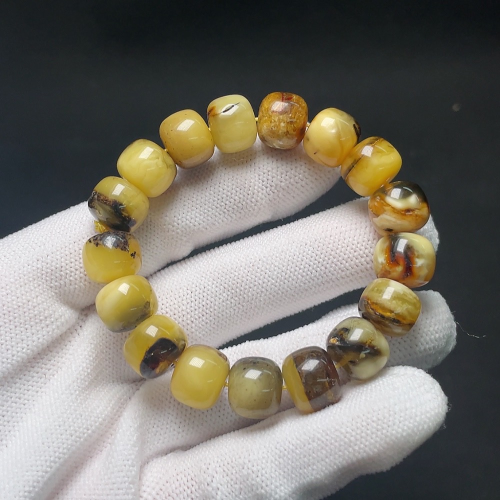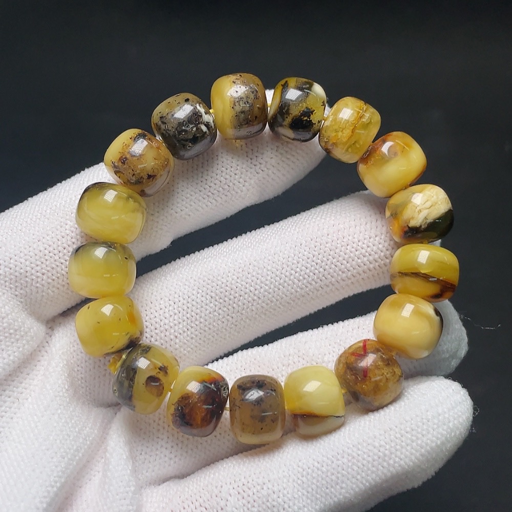 Amber Beeswax Bracelet with Non-Natural Inlay Stones, Total Weight Approx. 15.2g, Size About 11.6mm (Mixed Stones)