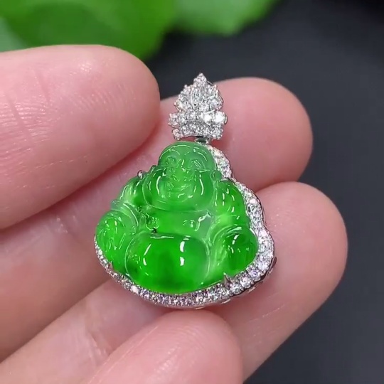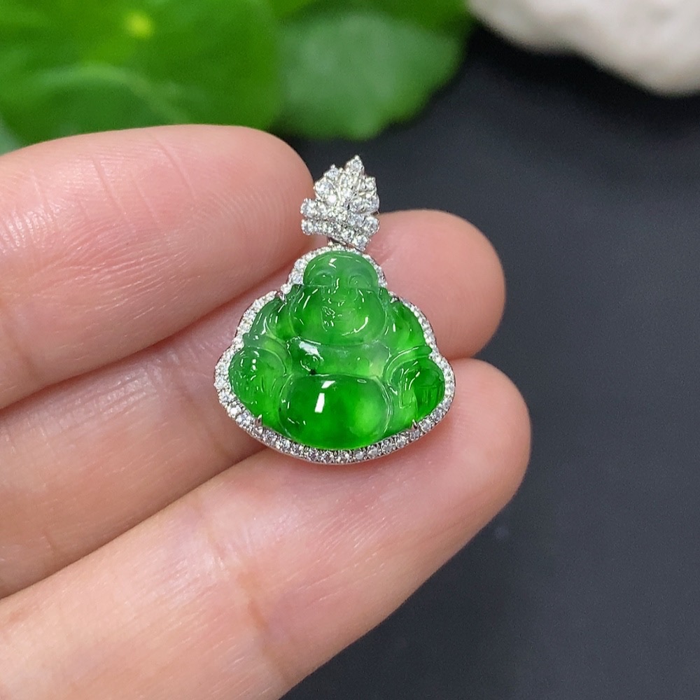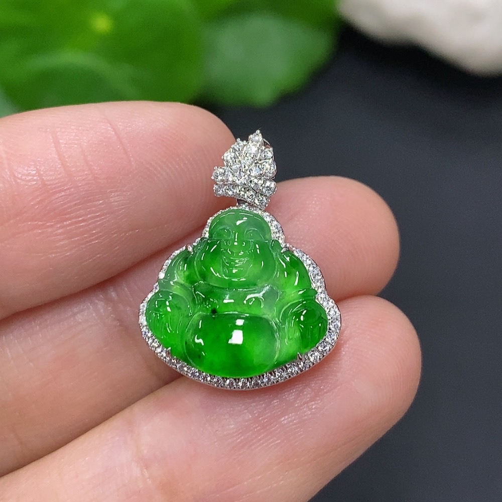 Jadeite Inlaid Buddha Pendant 18k Non-Diamond Total Weight Approx. 1.85g
