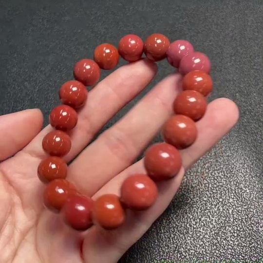 Red Agate Bracelet with Visible Organic Matter, Total Weight Approx. 35.35g, Size ~11.6mm