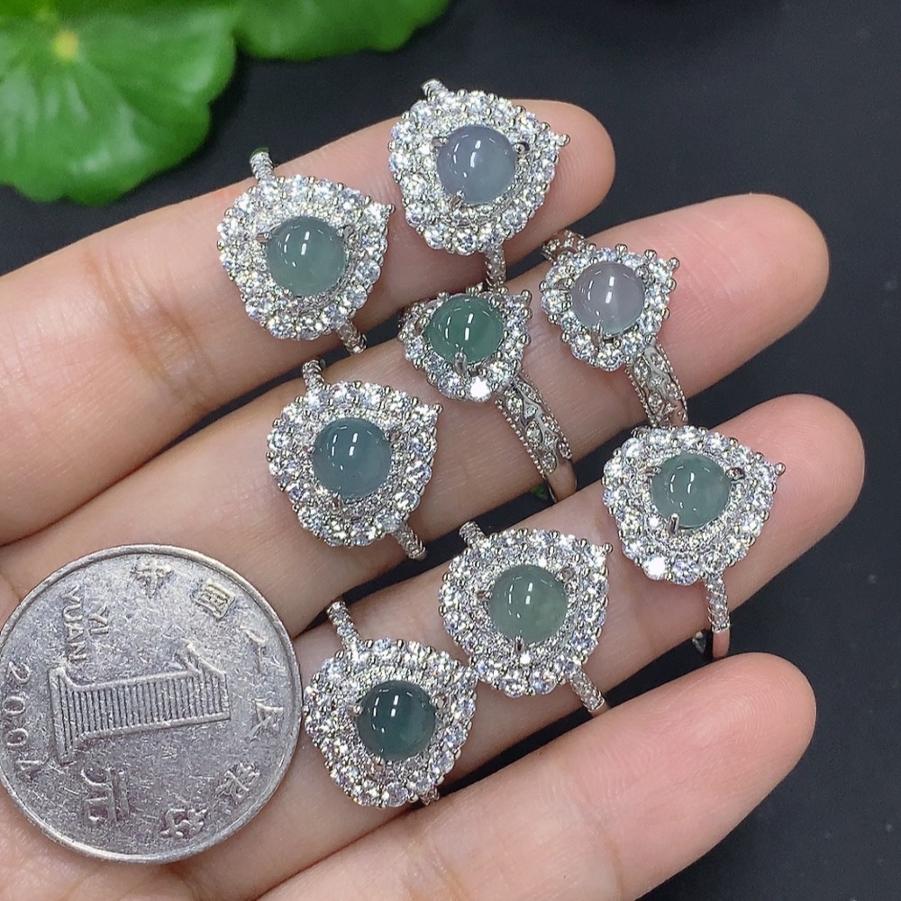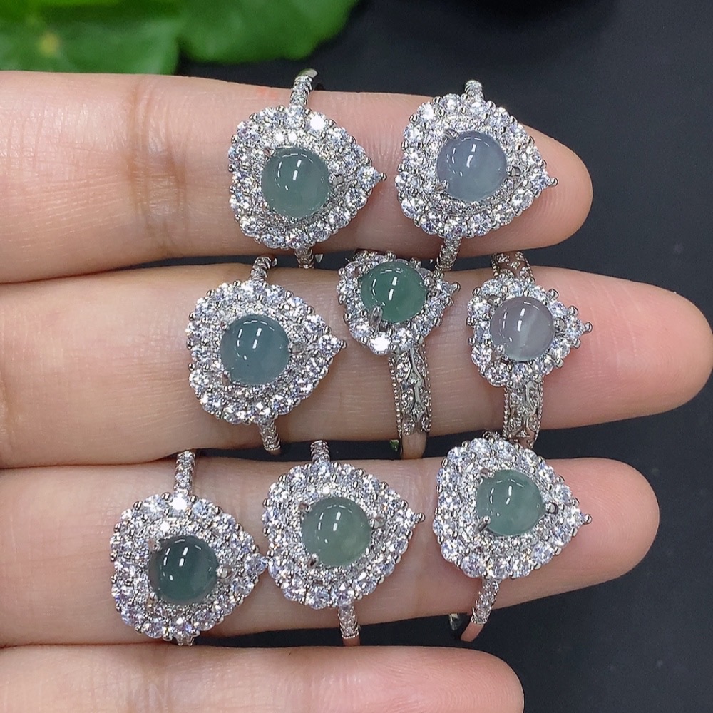 Jadeite Cabochon Ring Sell as a Lot Non-Gold Setting Adjustable Size