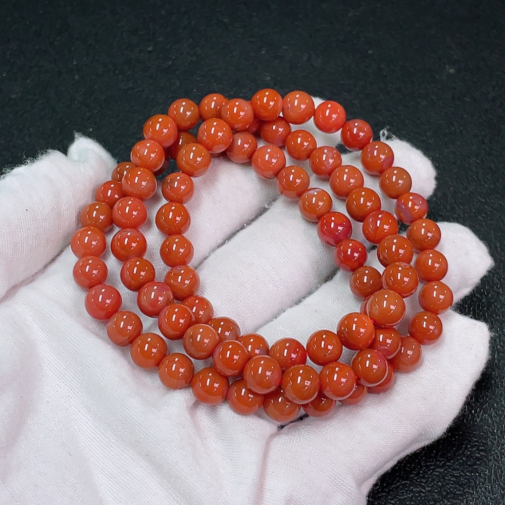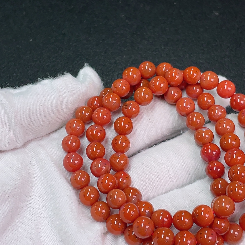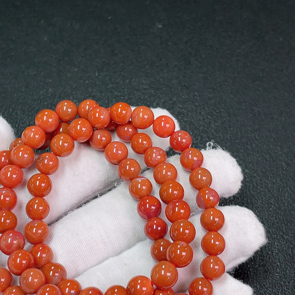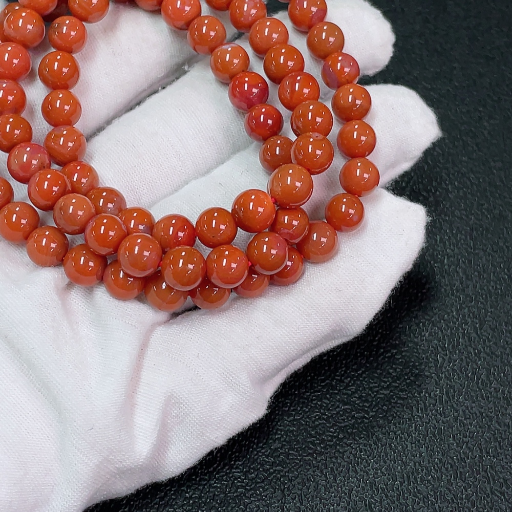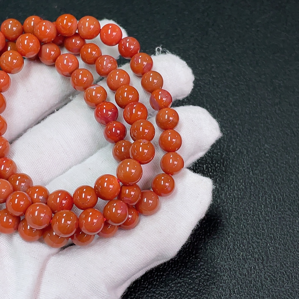 Red Agate Bead Strand with Visible Organic Matter, Total Weight Approx. 39.43g, Size About 7.3mm