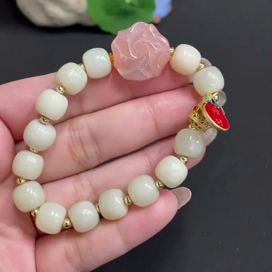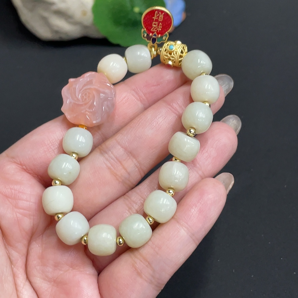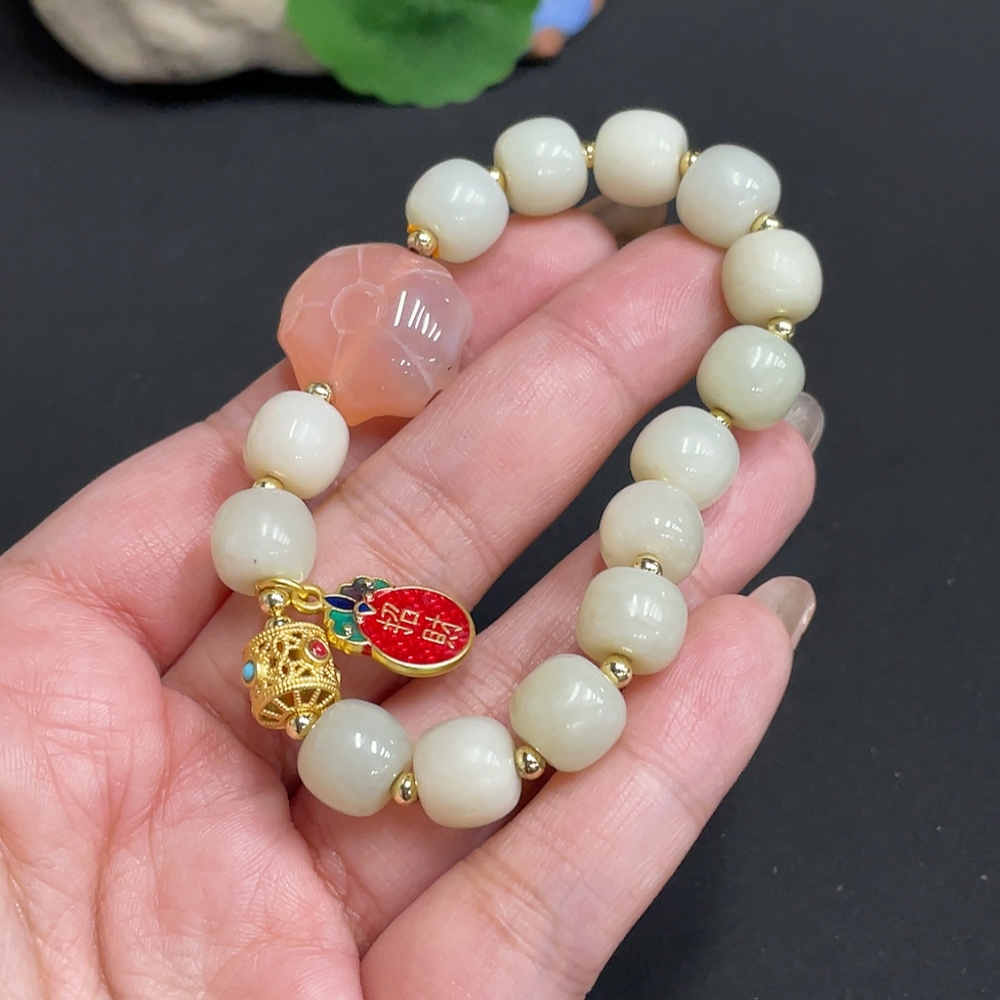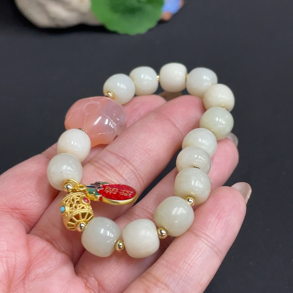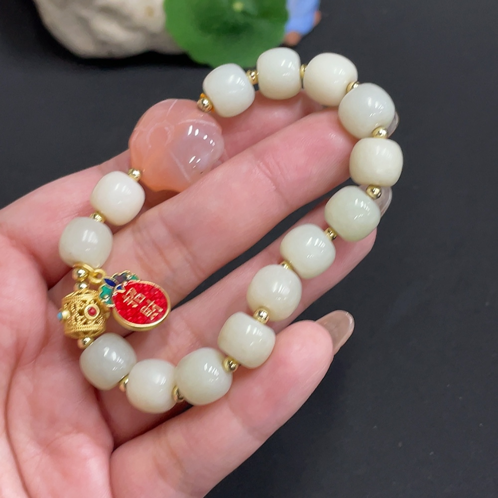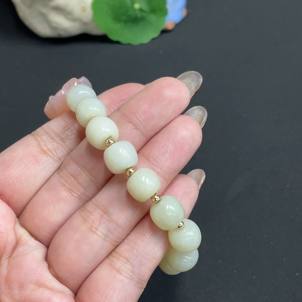 Hetian Jade Bracelet, approx. 9.8mm, total weight about 30.5g, with non-Hetian Jade beads, non-gold