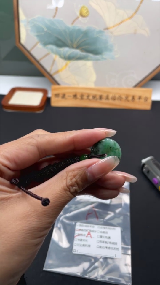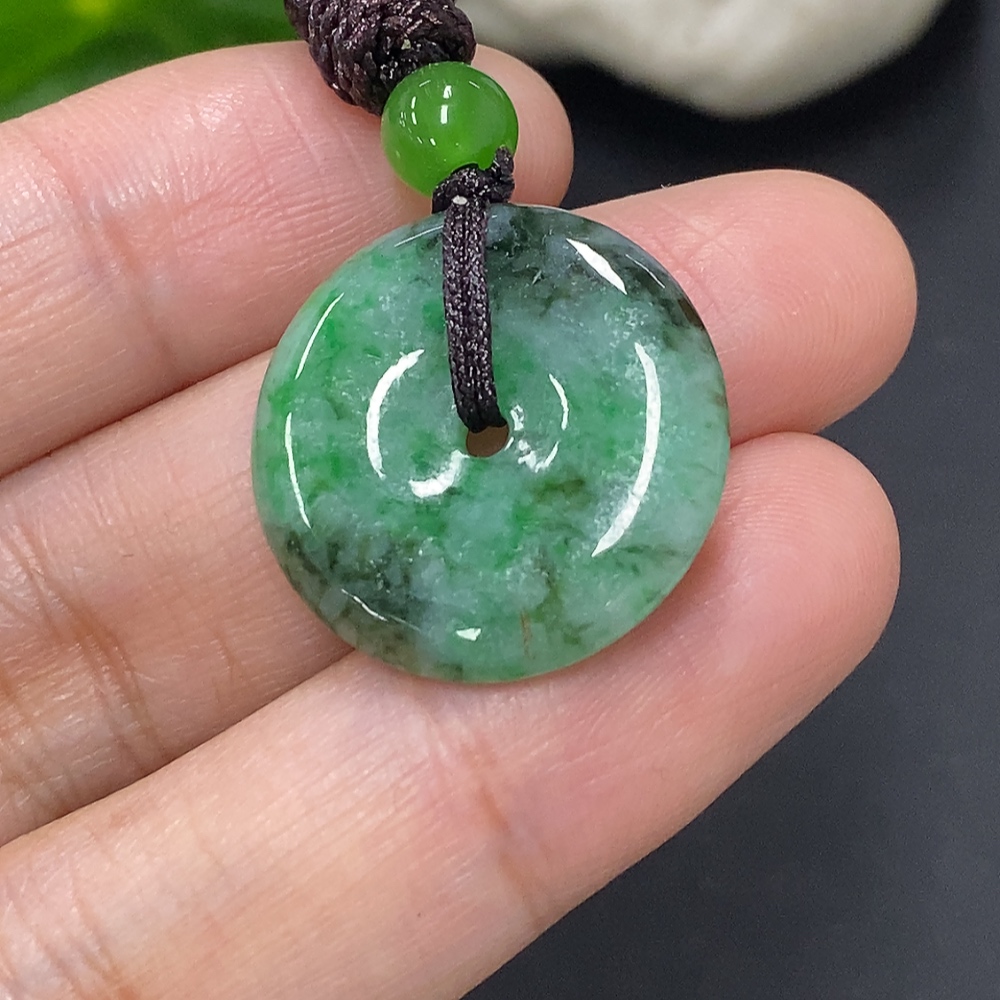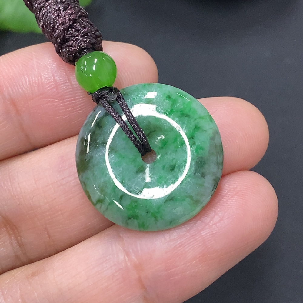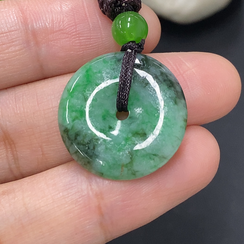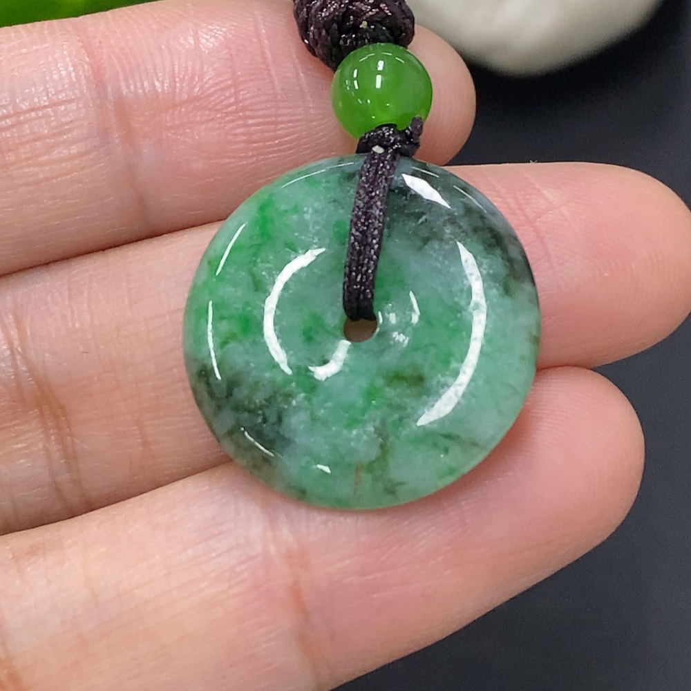 Jadeite Peace Knot, total weight including rope approximately 5.3g (containing other mineral components) (matching beads not grade A)