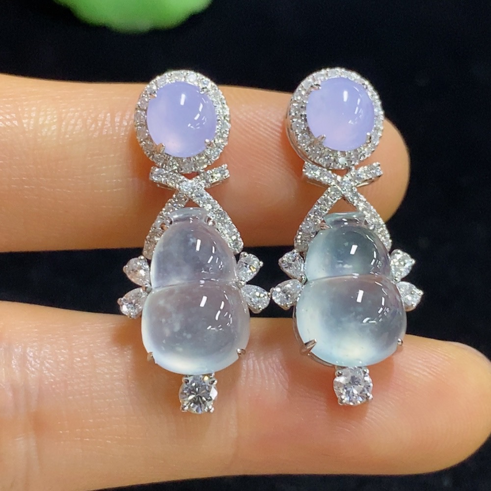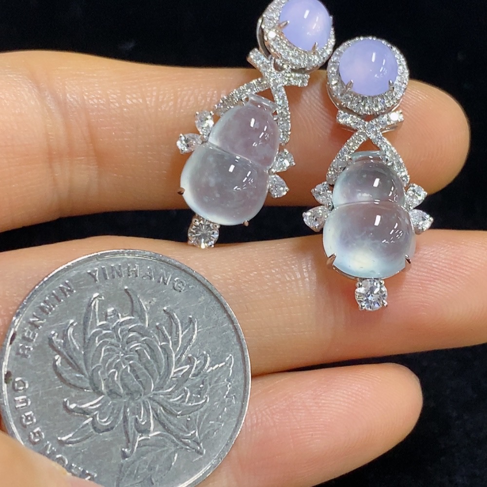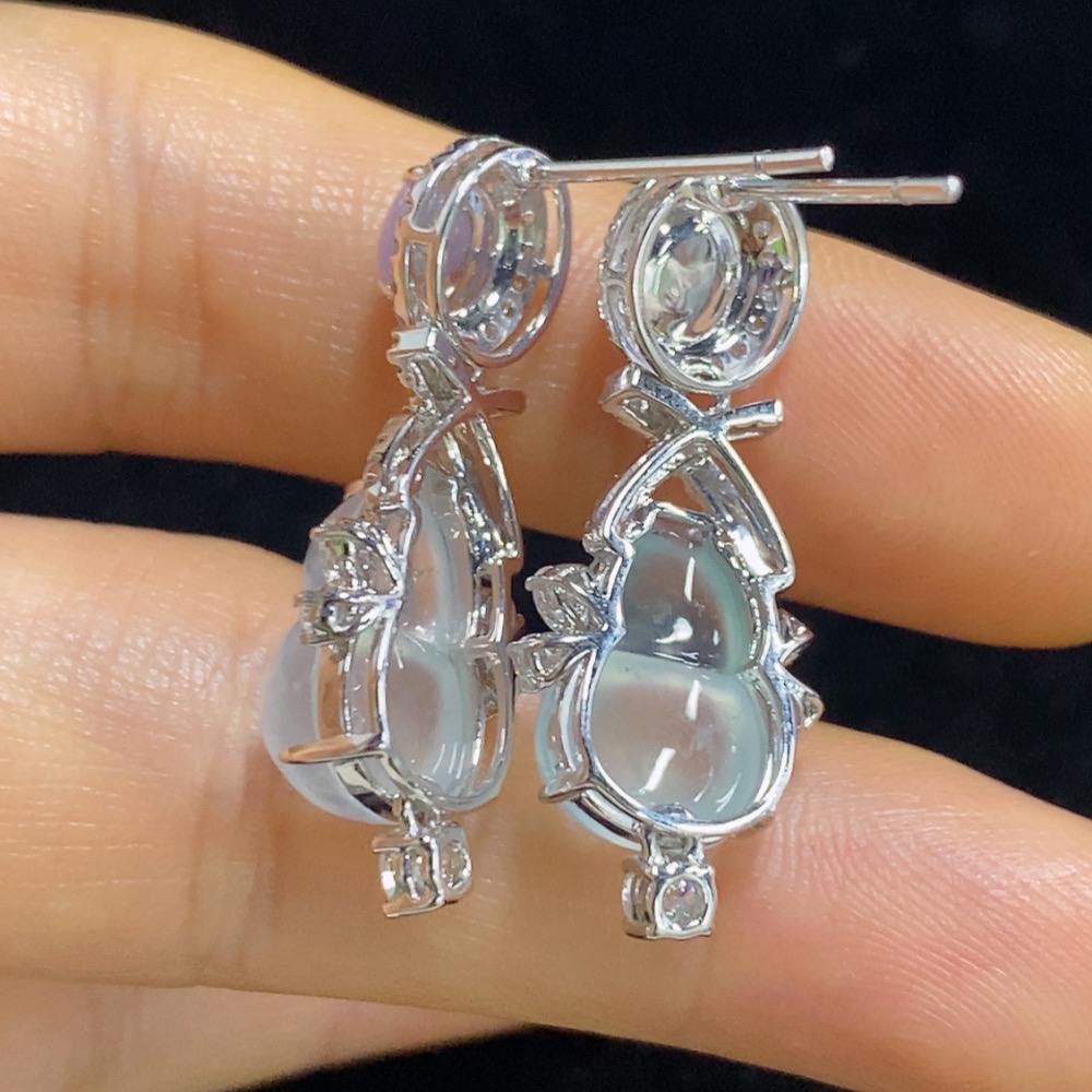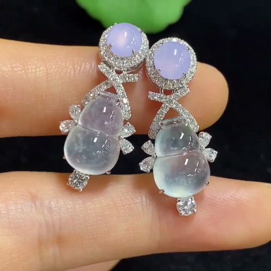 Jadeite Gourd Inlaid Earrings 18k with Diamond, Total Weight Approx. 6.89g