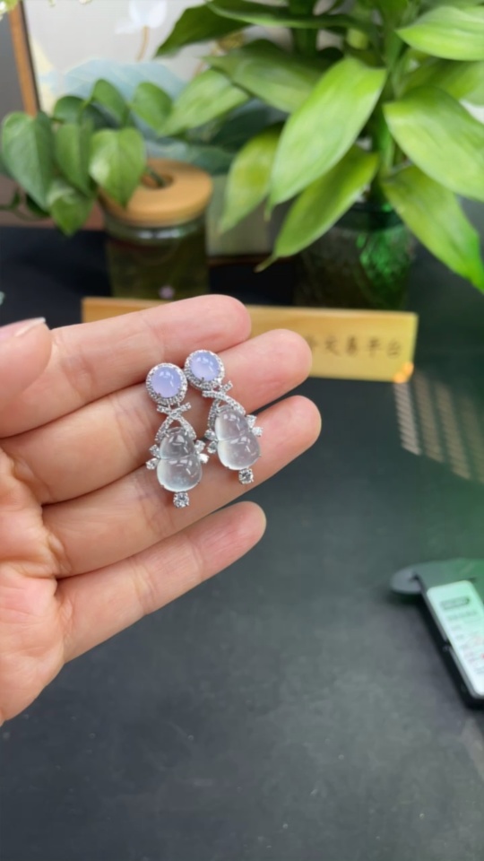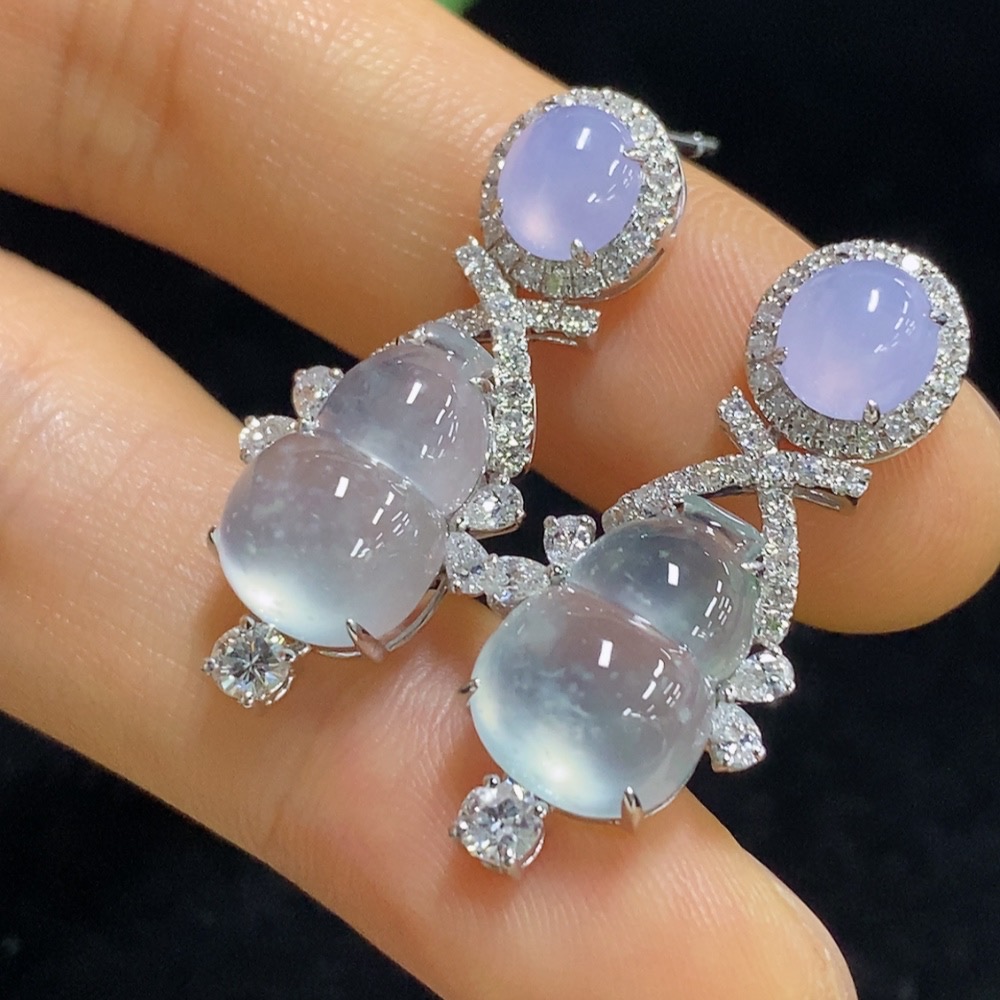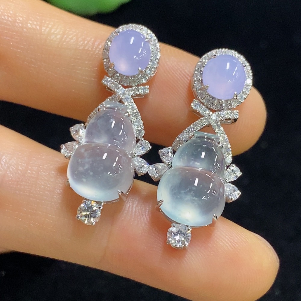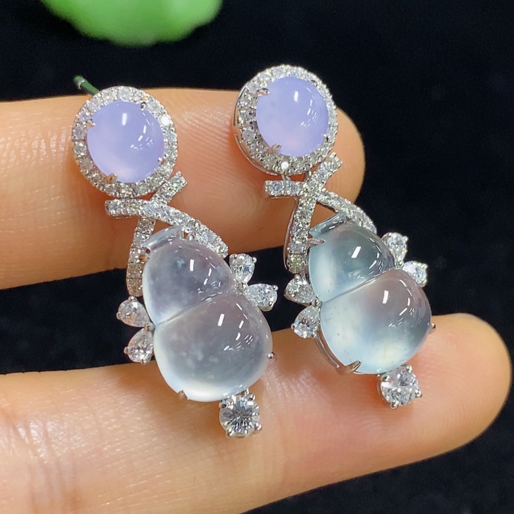 Jadeite Gourd Inlaid Earrings 18k with Diamond, Total Weight Approx. 6.89g