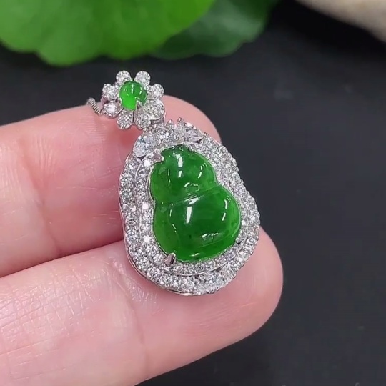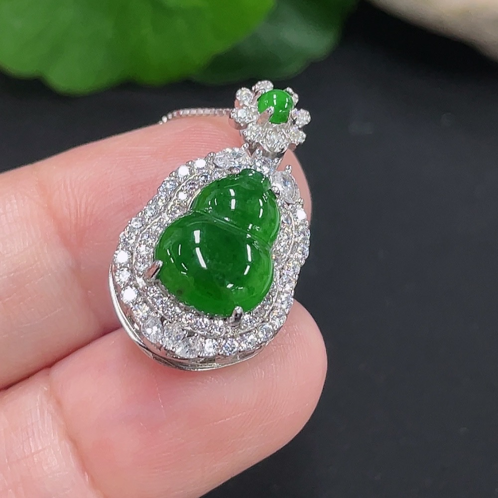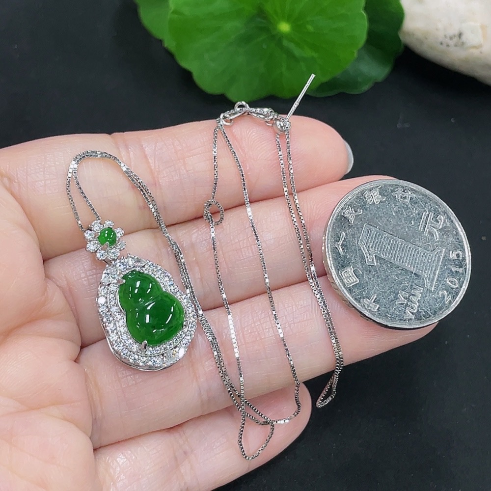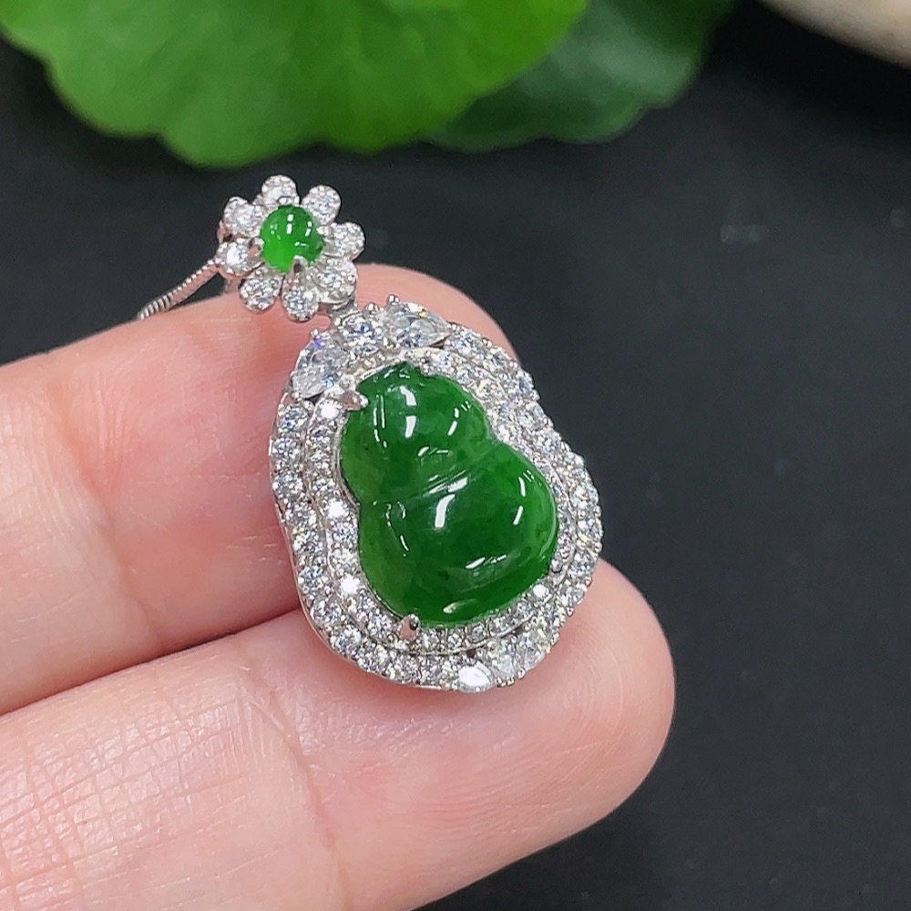 Jadeite Gourd Pendant Total Weight Approx. 4.6g (Including Rope Weight)