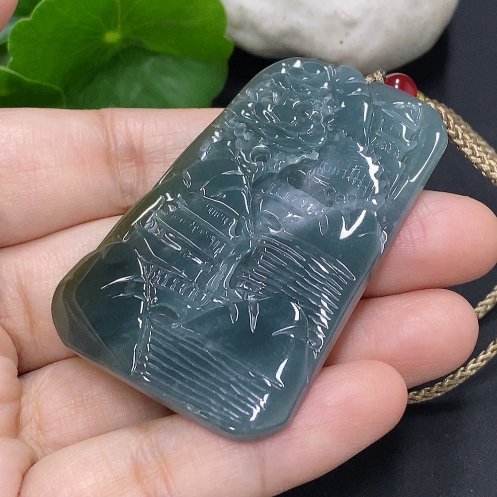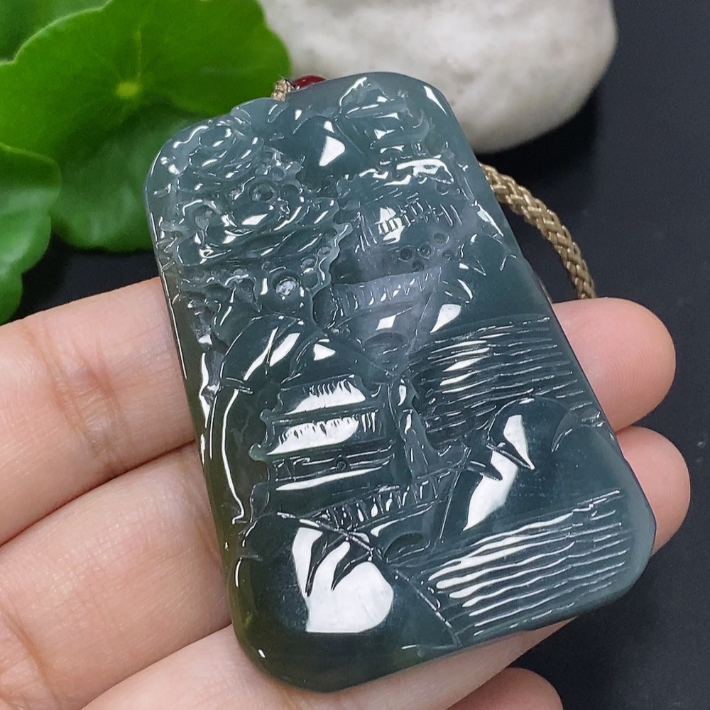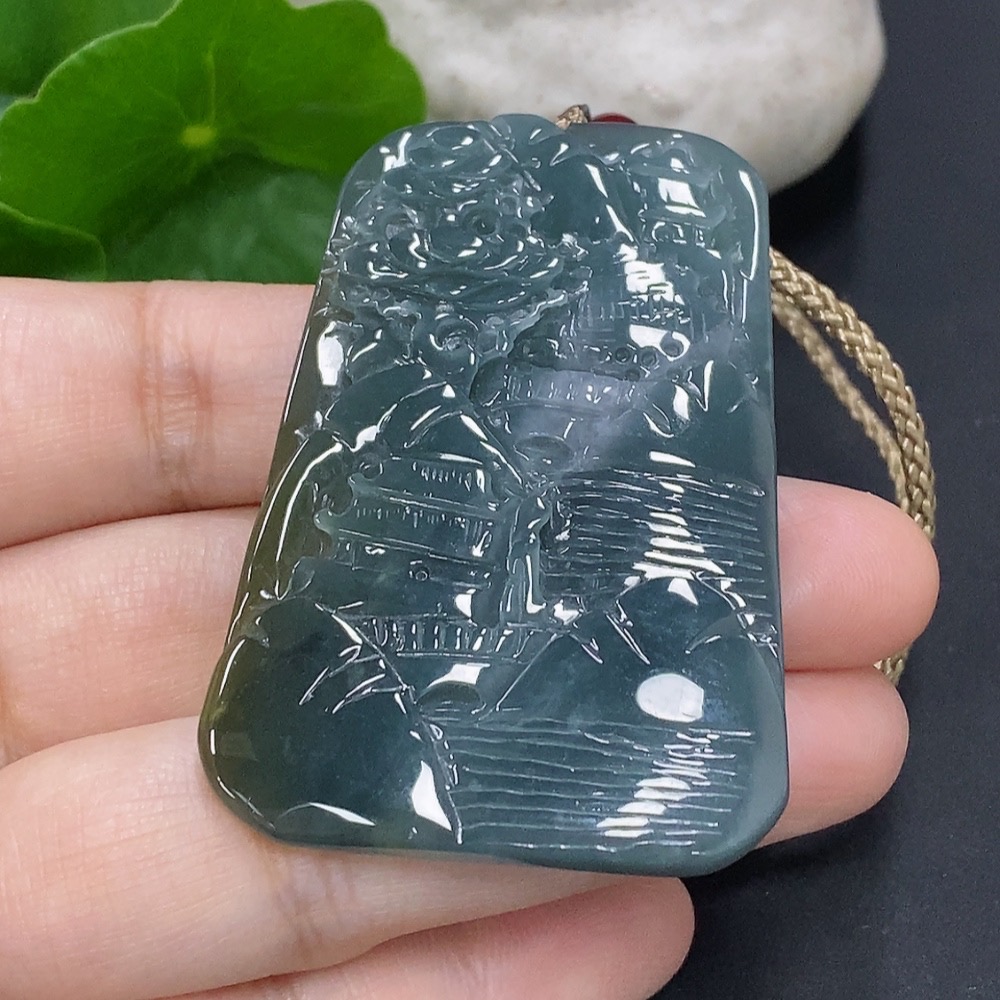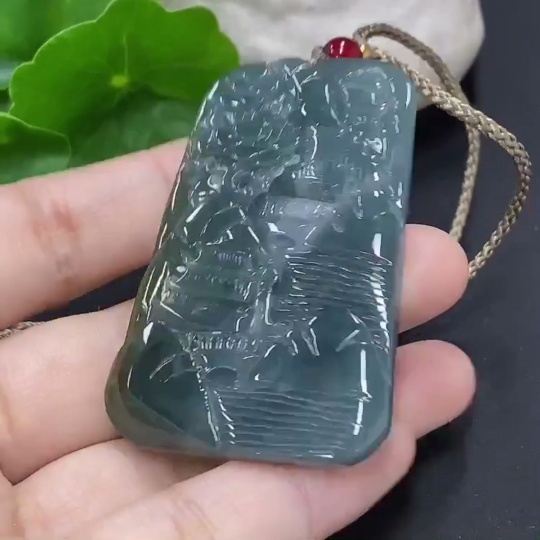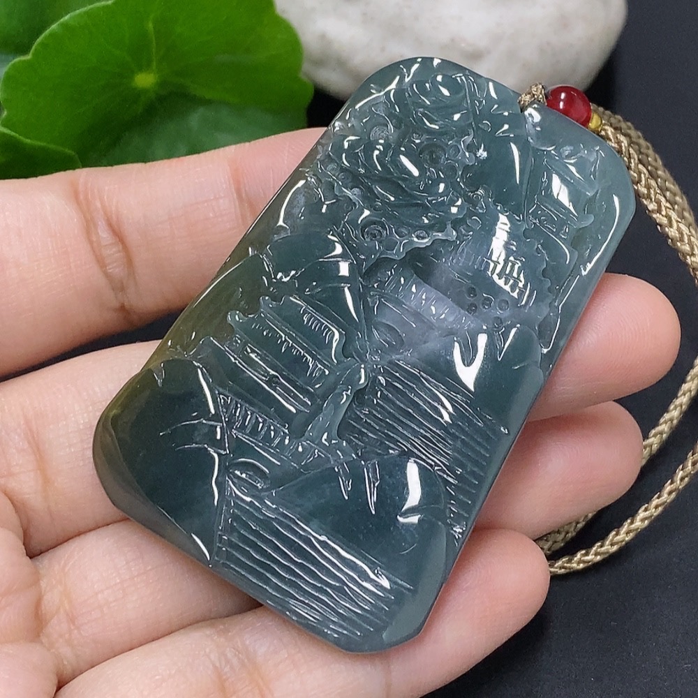 Jadeite Landscape Pendant Total Weight Approx. 24.5g (including rope weight) Beads not jadeite
