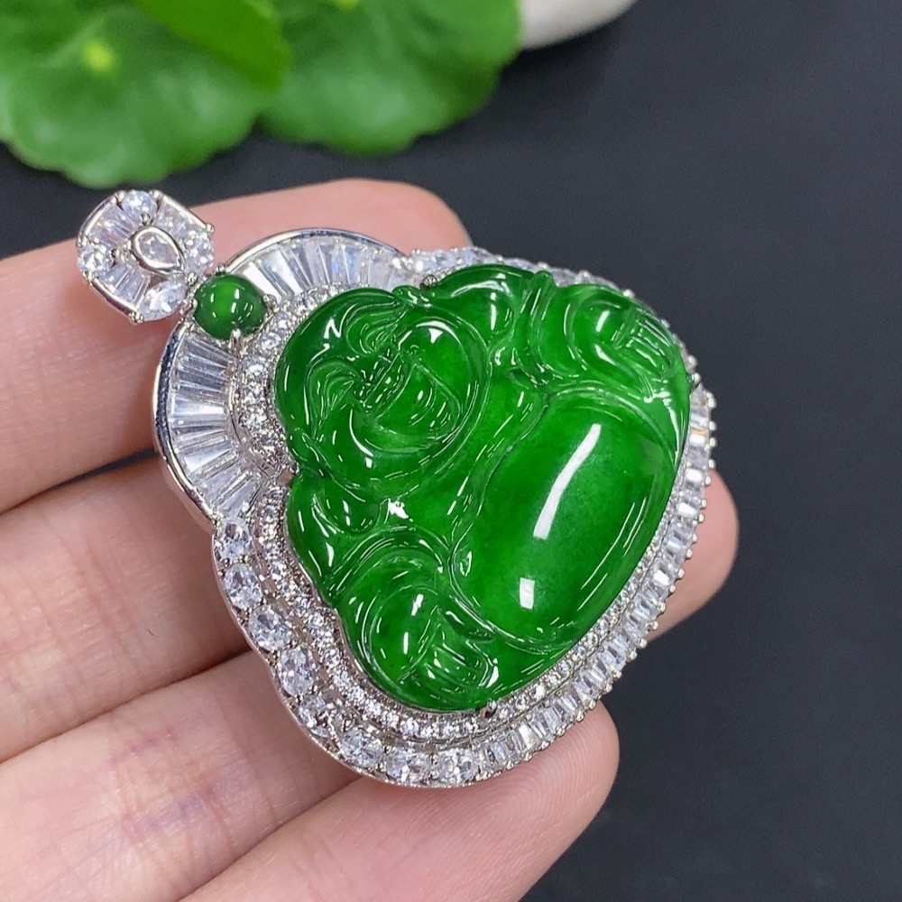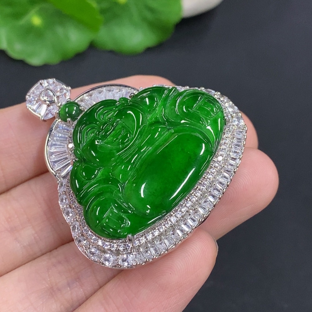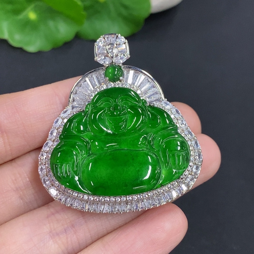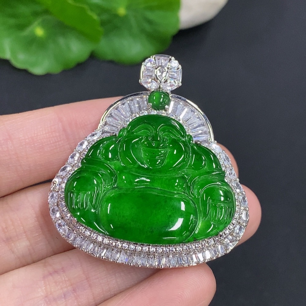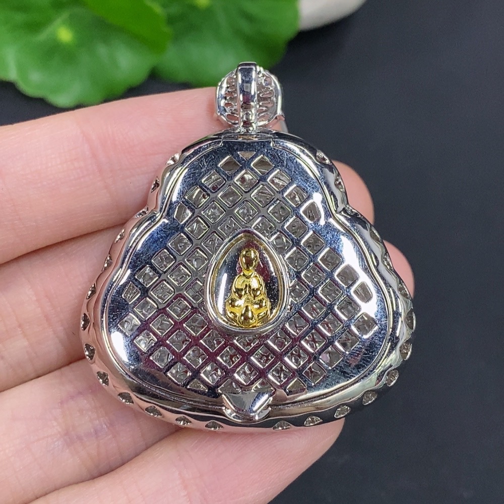 Jadeite Buddha Inlaid Pendant Non-Gold Total Weight Approx. 24.66g