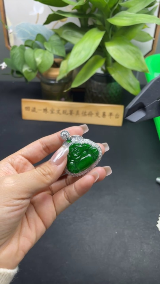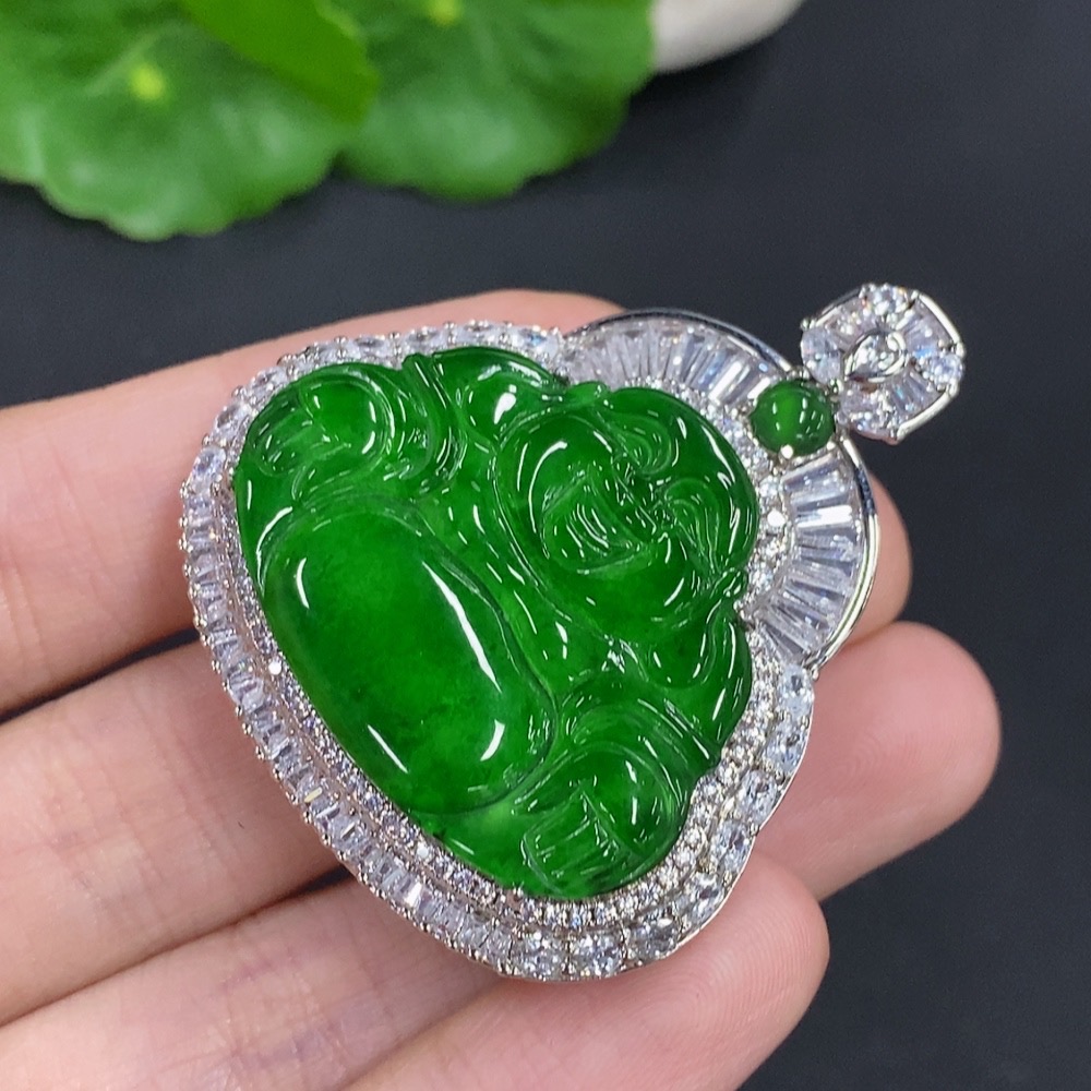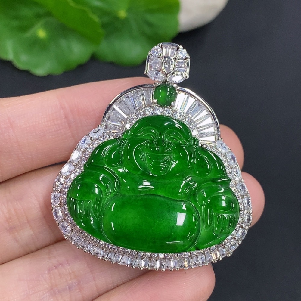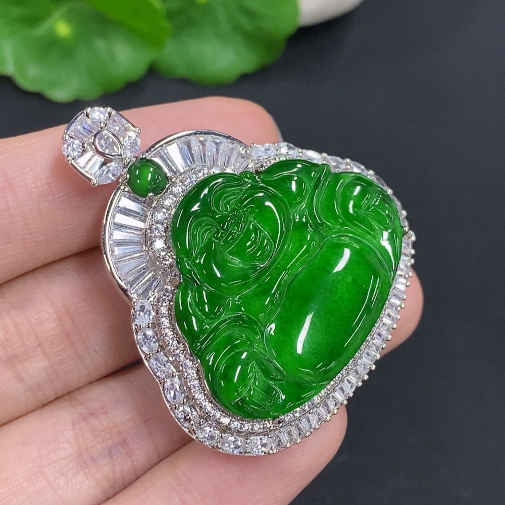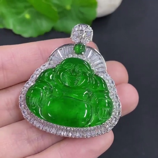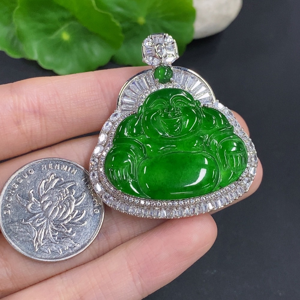 Jadeite Buddha Inlaid Pendant Non-Gold Total Weight Approx. 24.66g