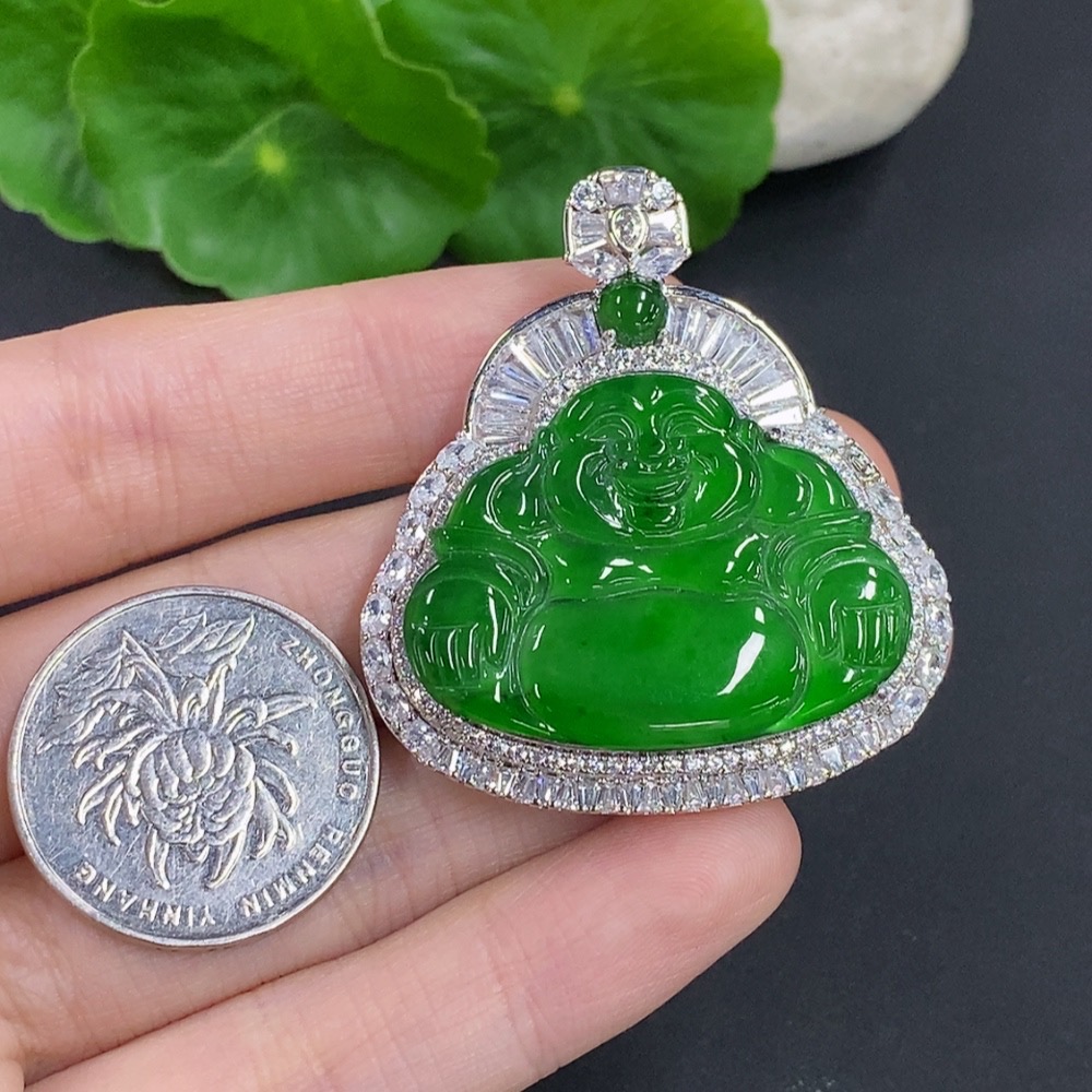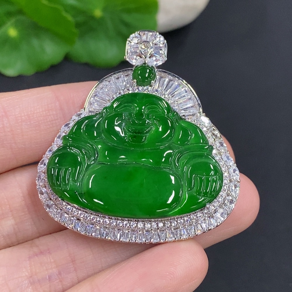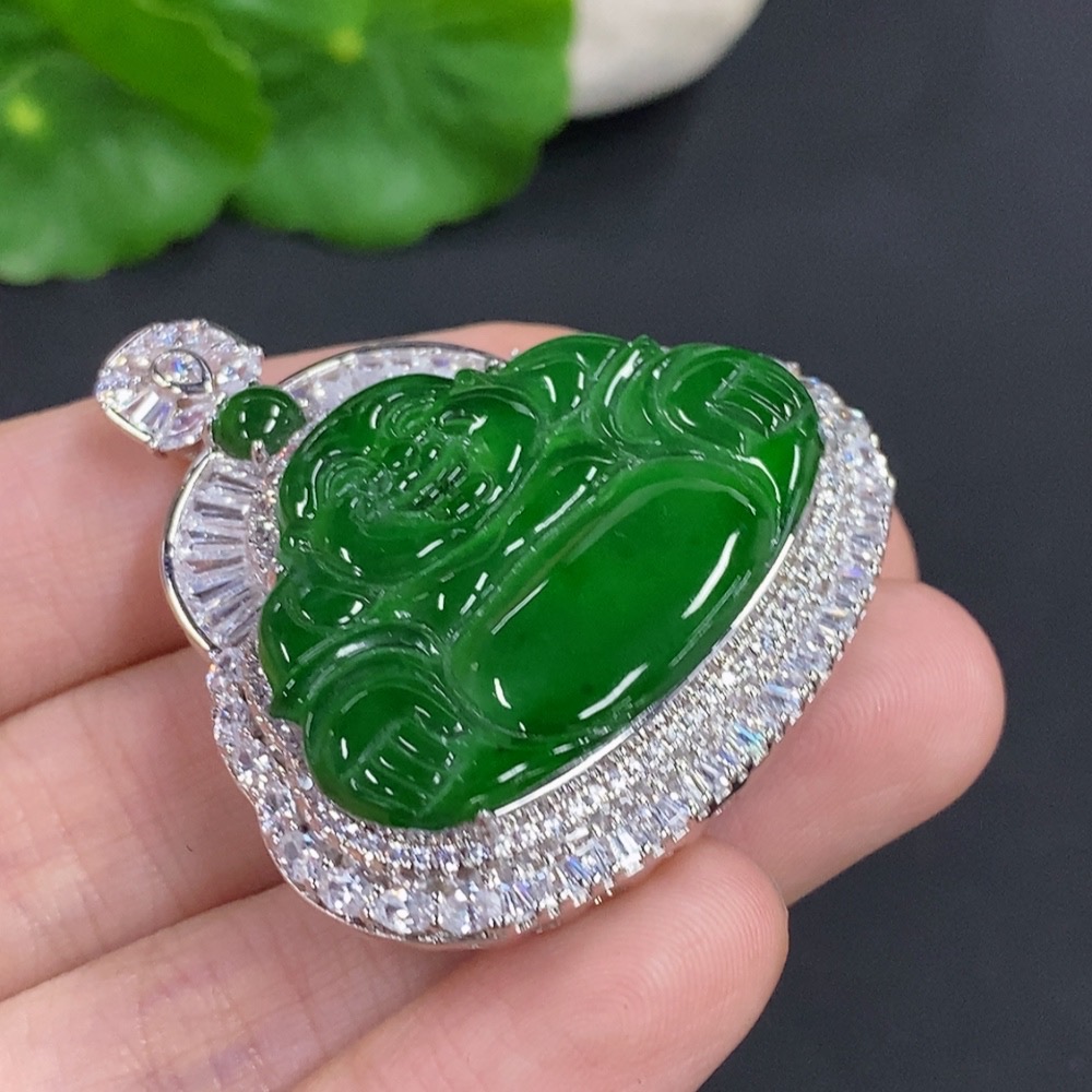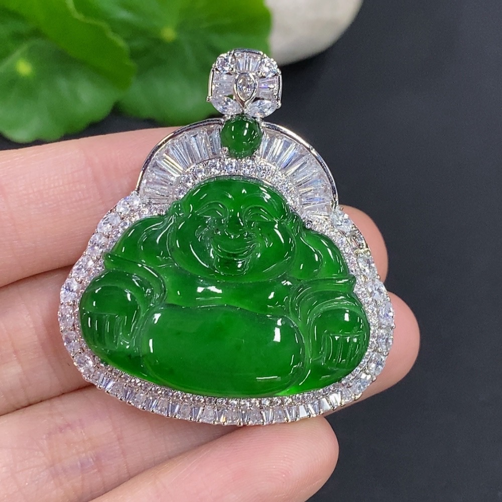 Jadeite Buddha Pendant with Mounting Non-Gold Total Weight Approx. 23.4g