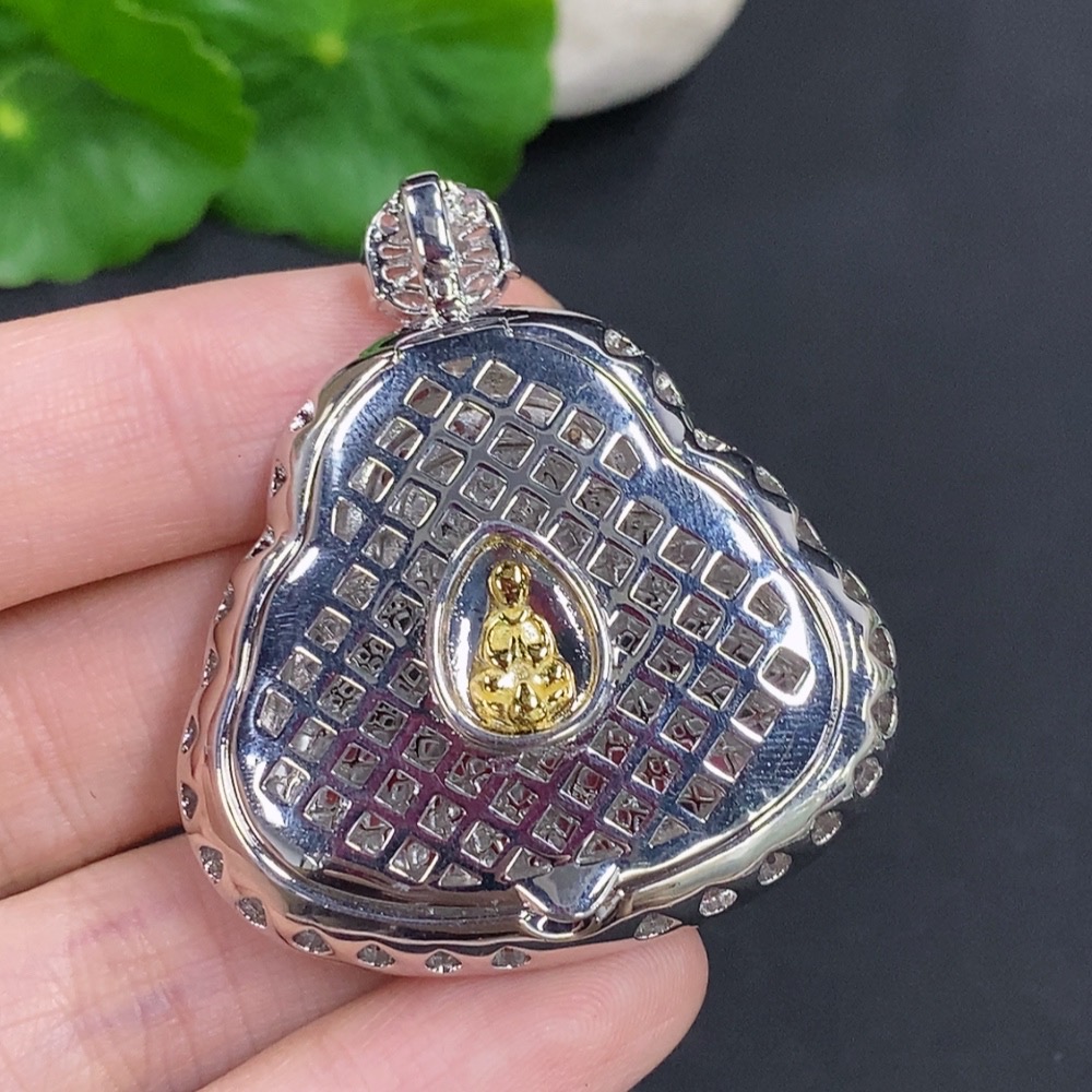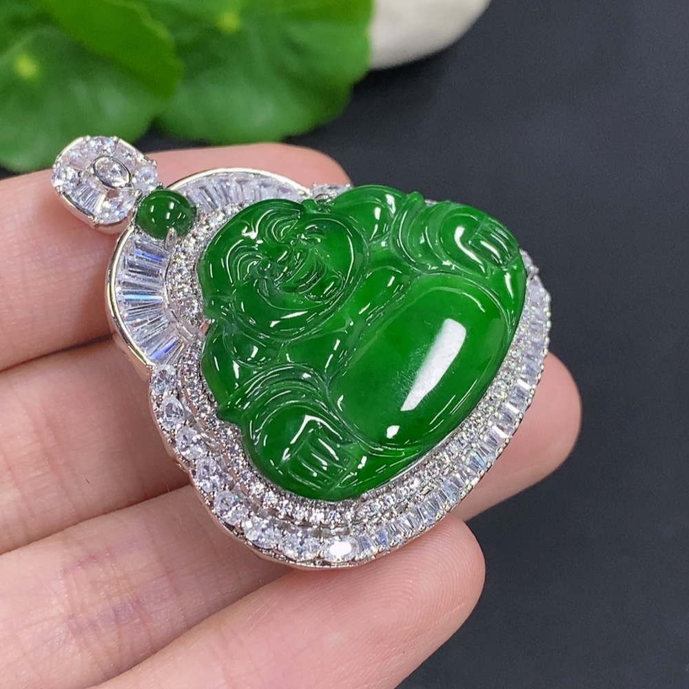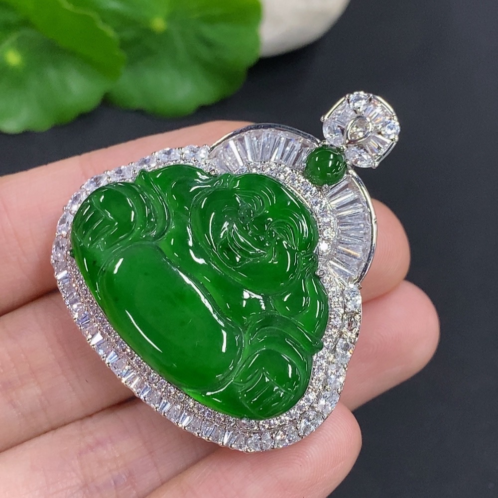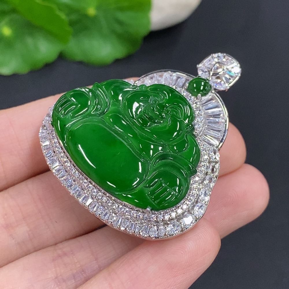 Jadeite Buddha Pendant with Mounting Non-Gold Total Weight Approx. 23.4g