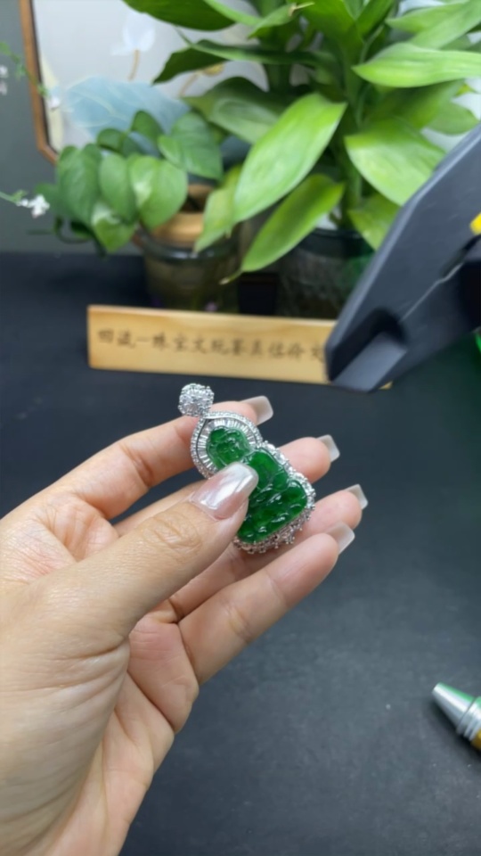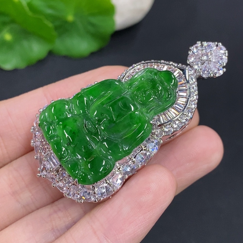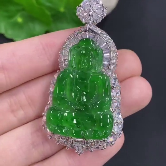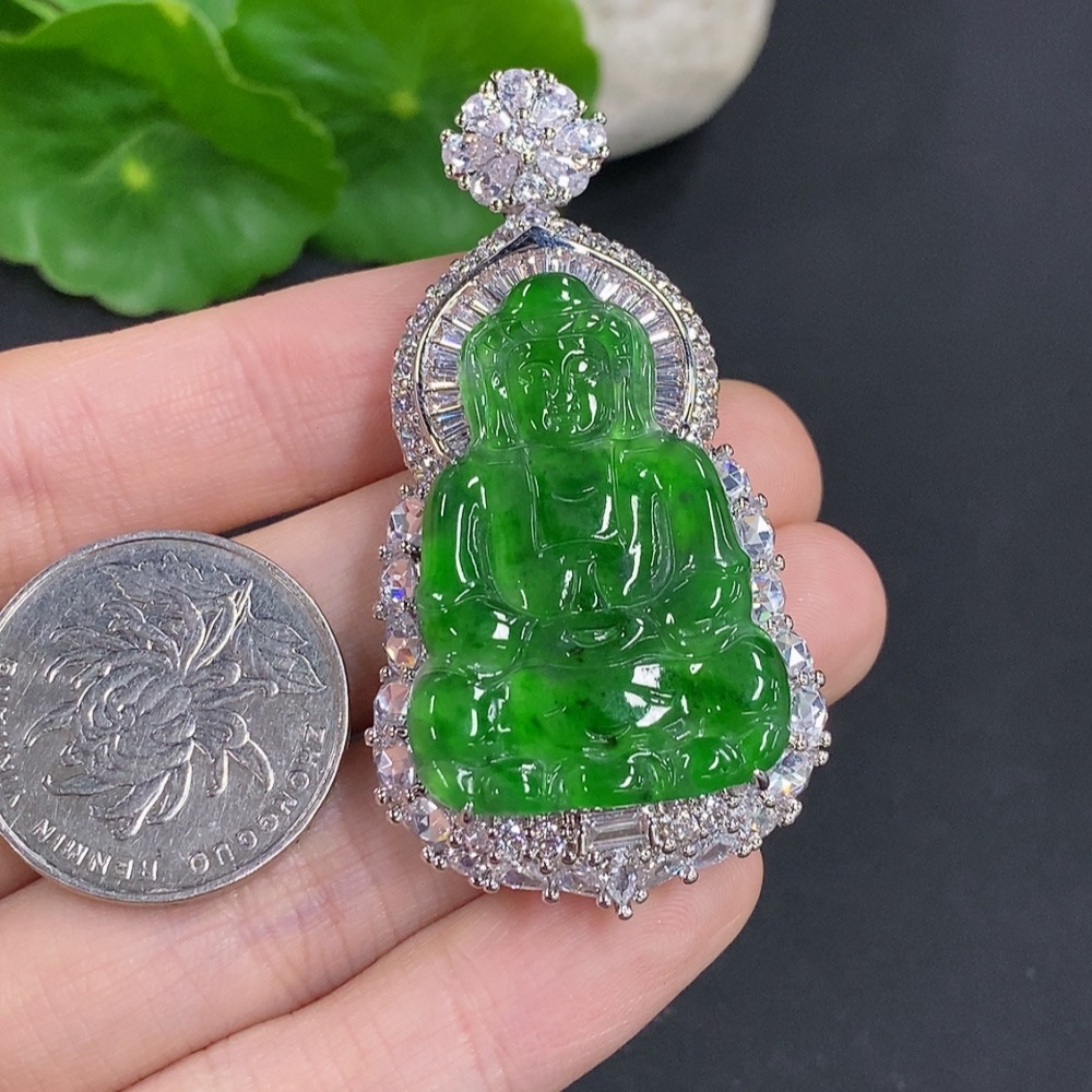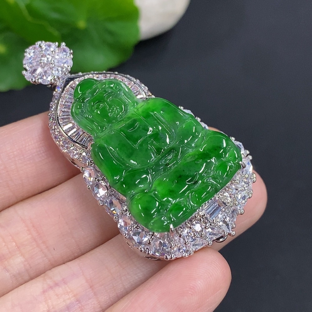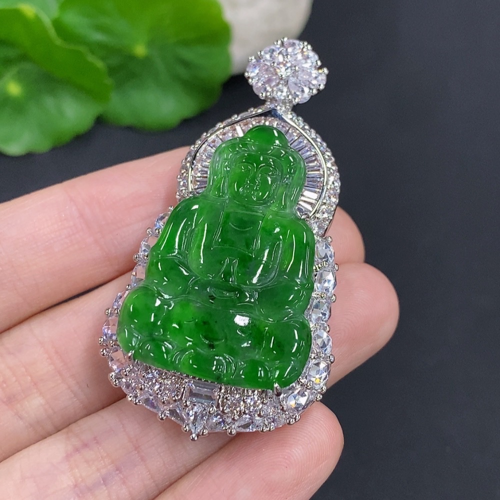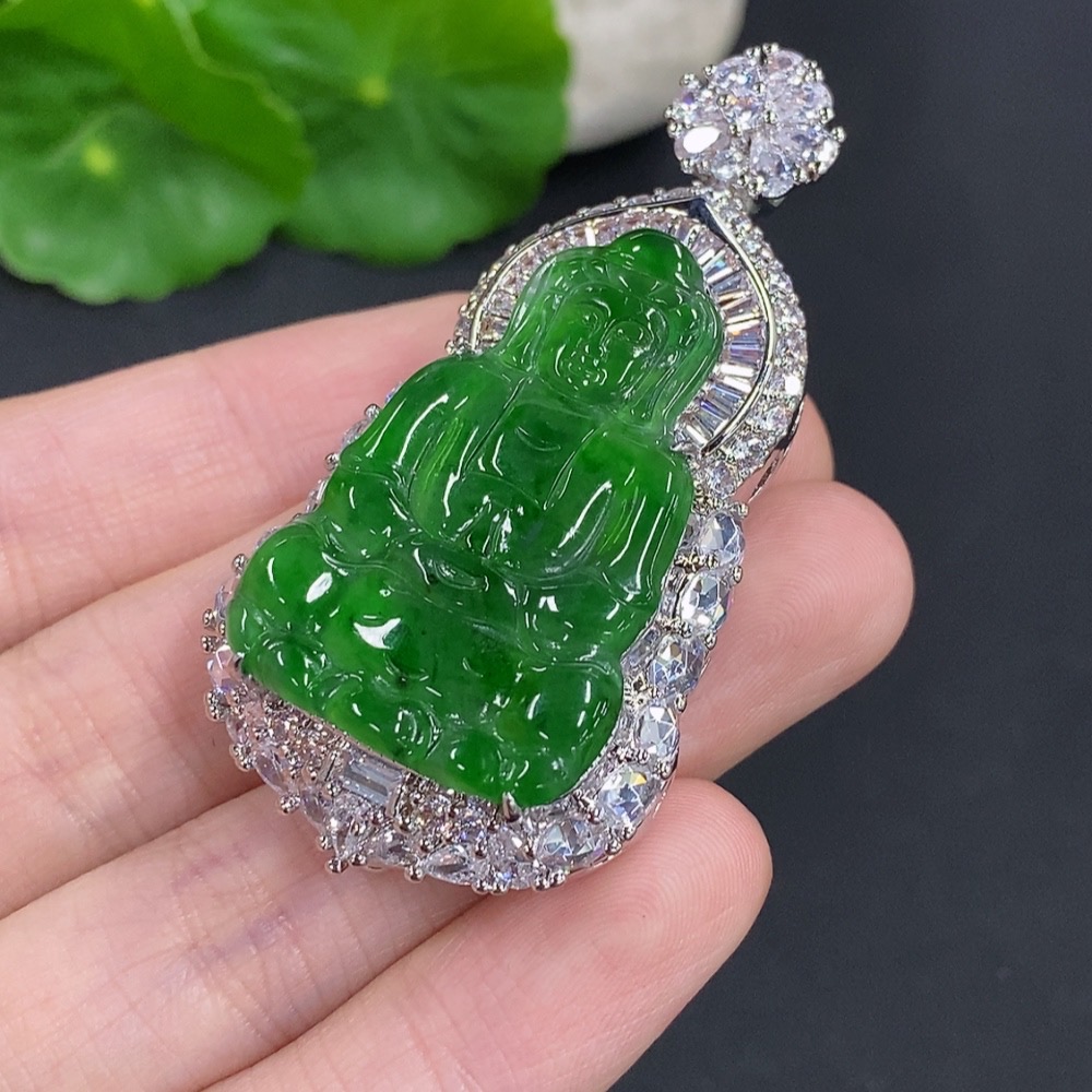 Jadeite Guanyin inlaid pendant non-gold total weight about 23.88g