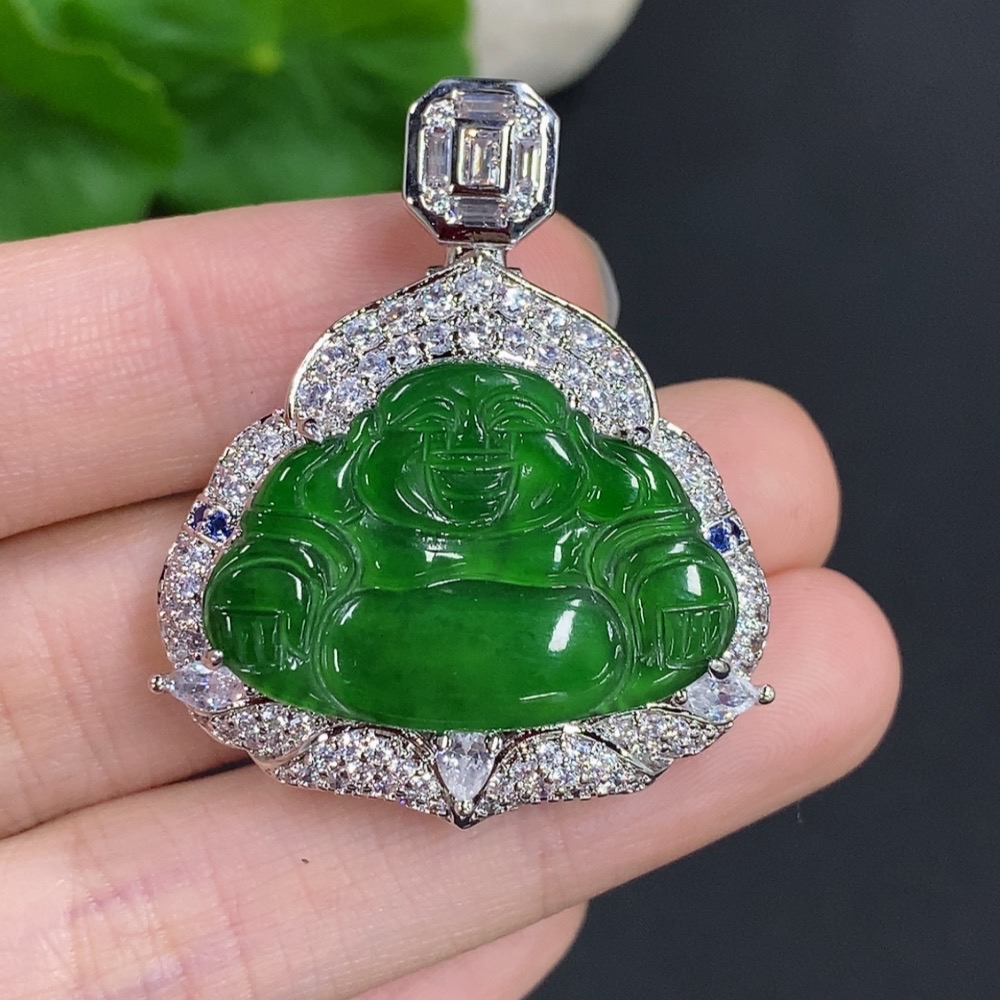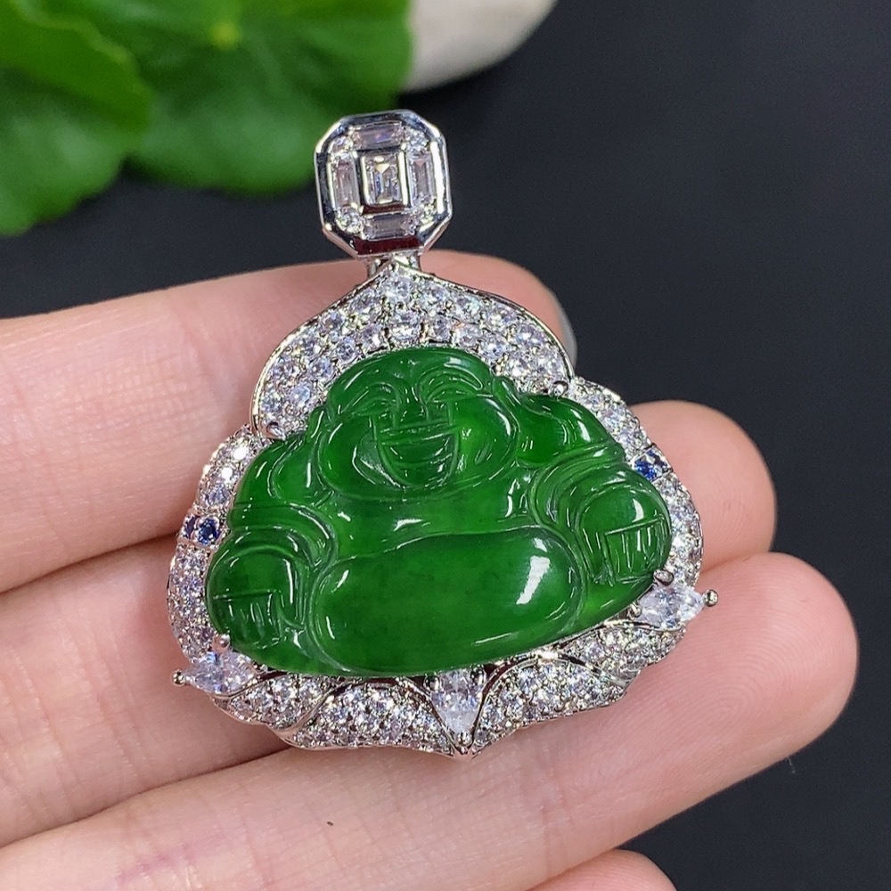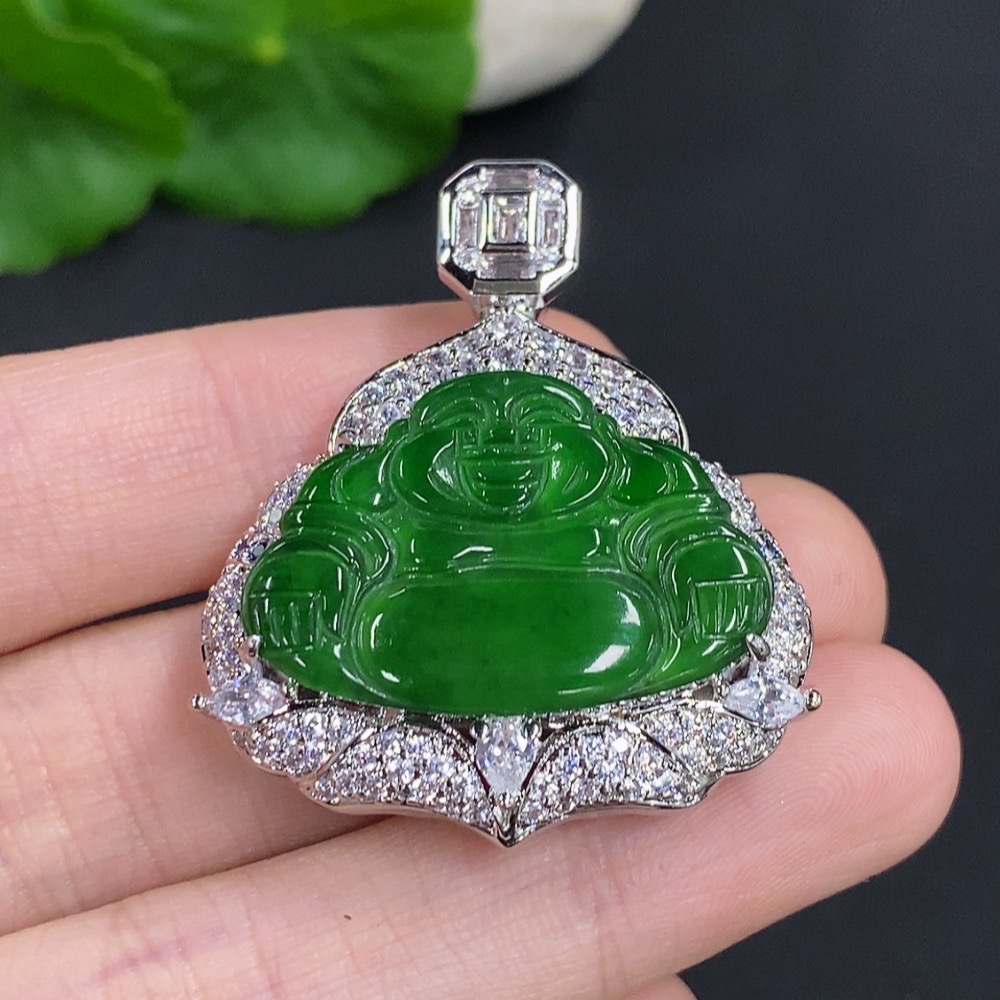 Jadeite Buddha Pendant with Non-Gold Setting, Total Weight Approximately 16.79g
