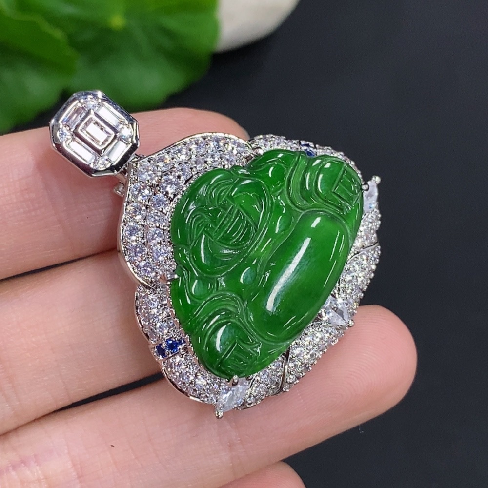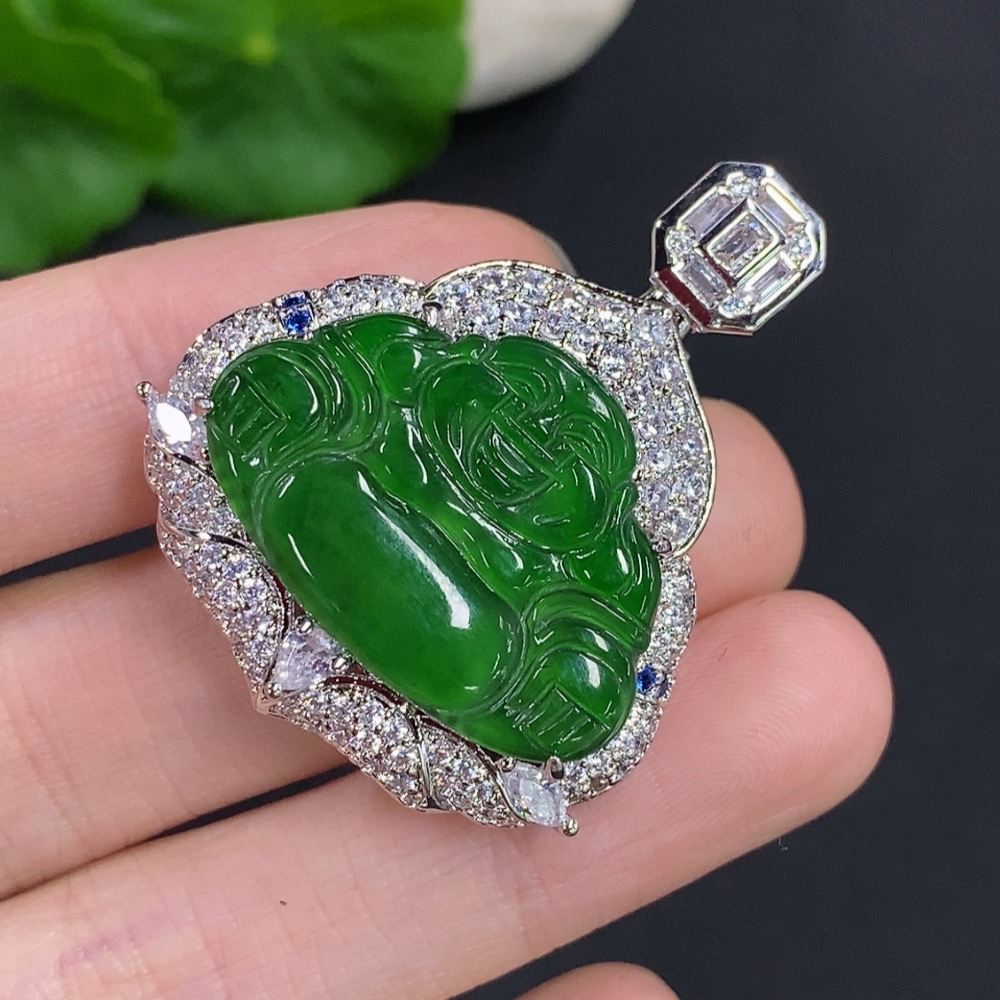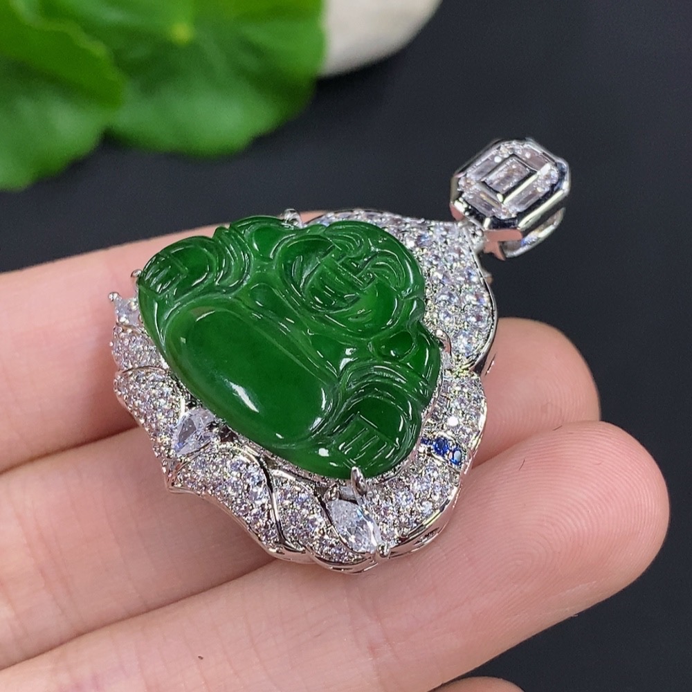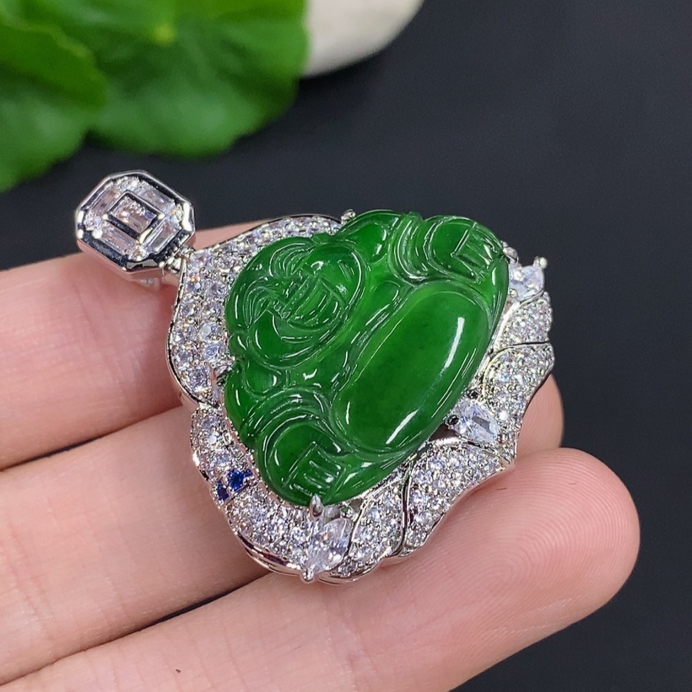 Jadeite Buddha Pendant with Non-Gold Setting, Total Weight Approximately 16.79g