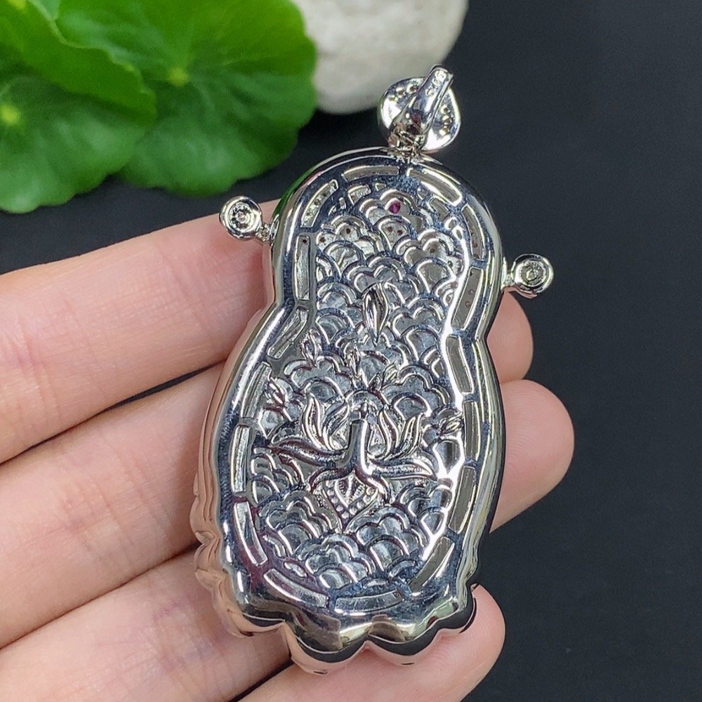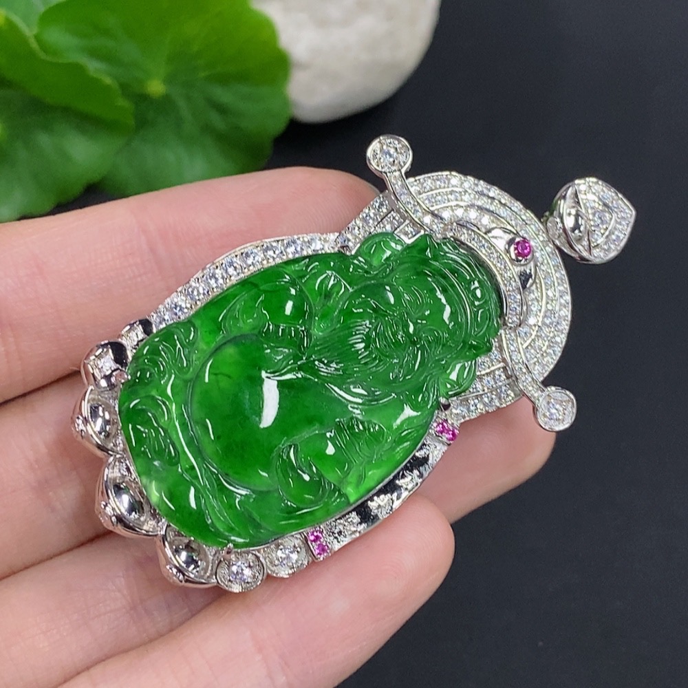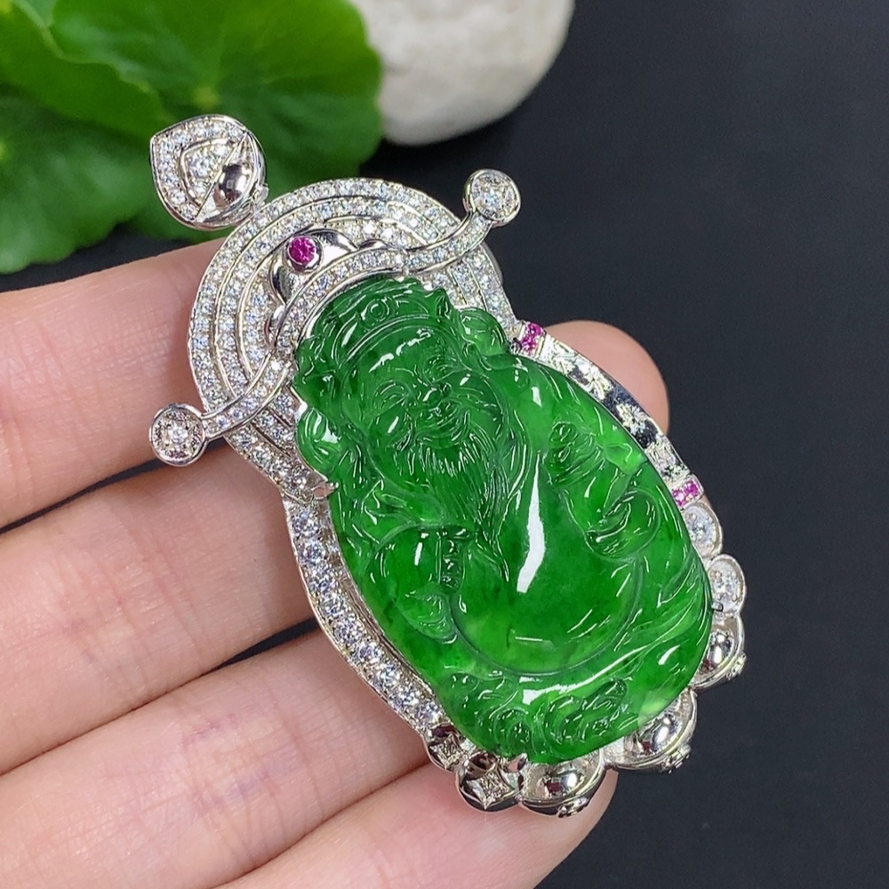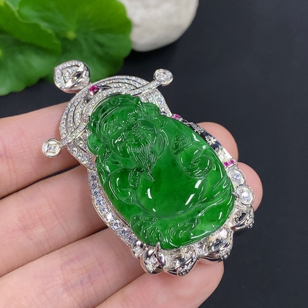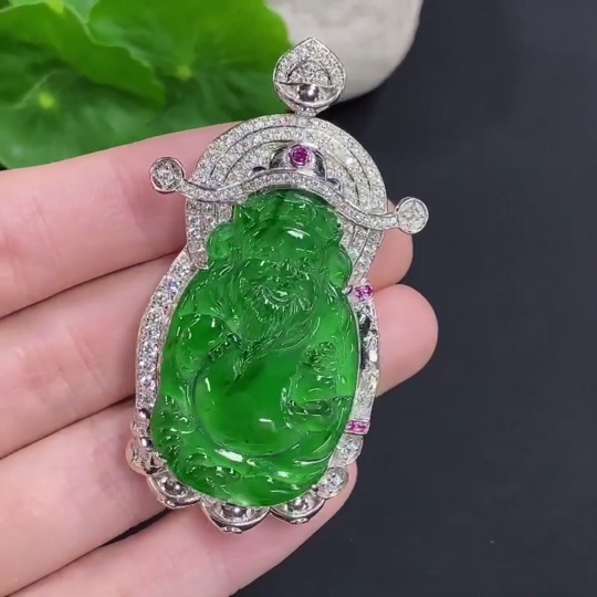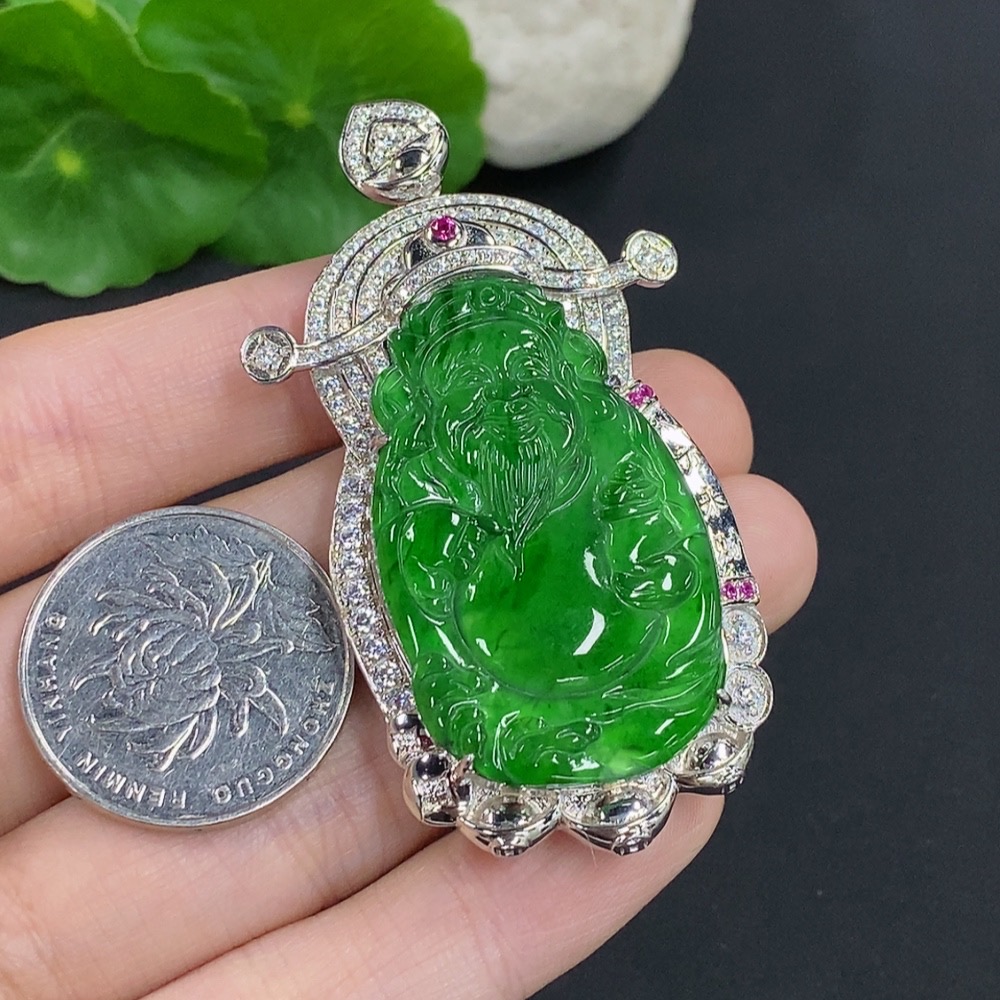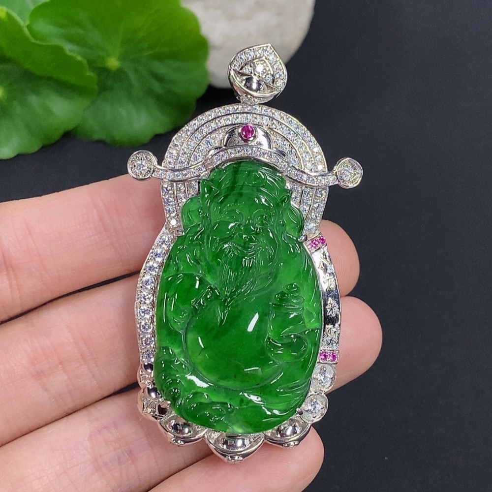 Jadeite Wealth God Inlaid Pendant Non-Gold Total Weight Approx. 25.74g