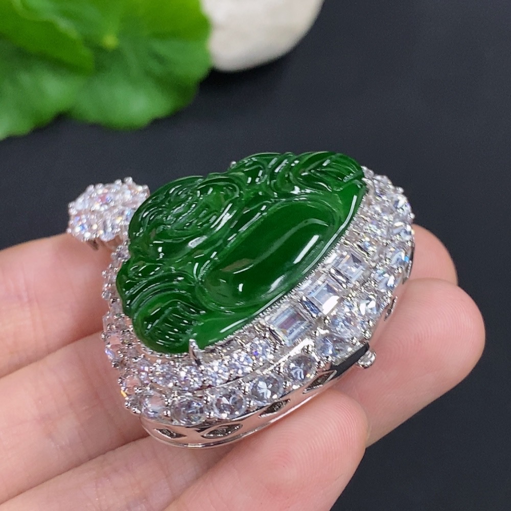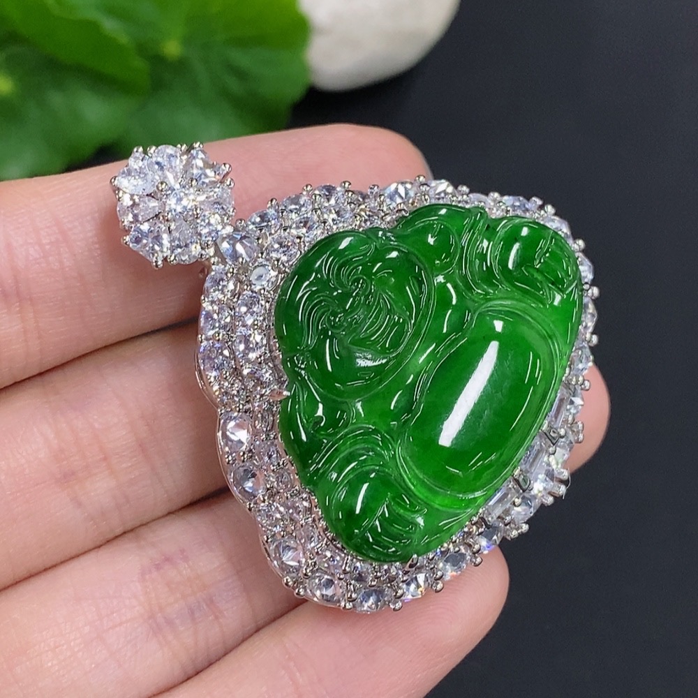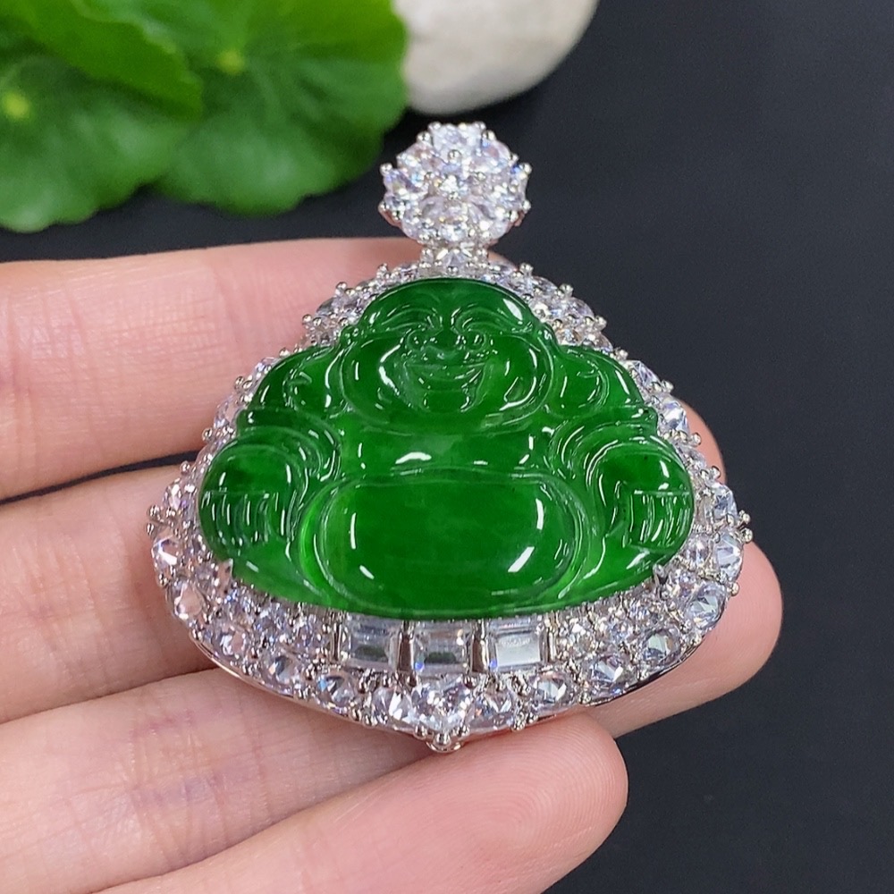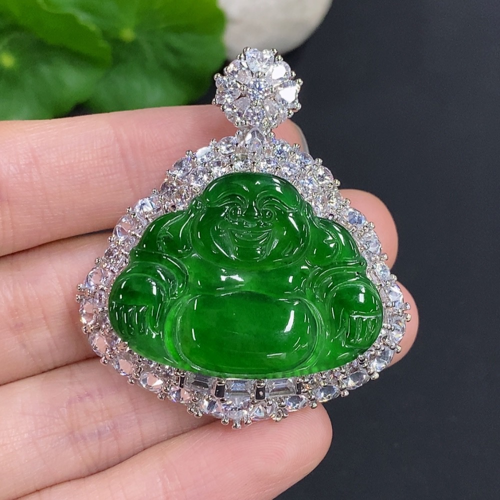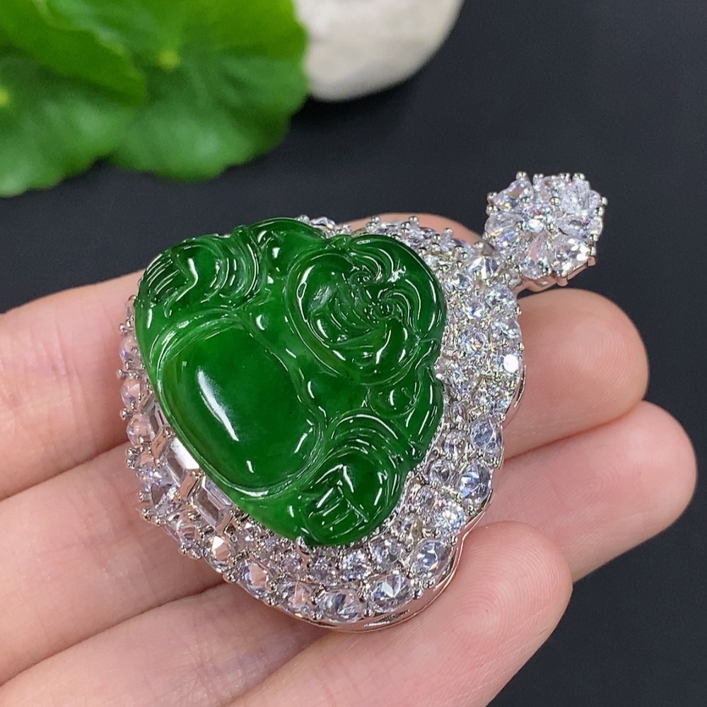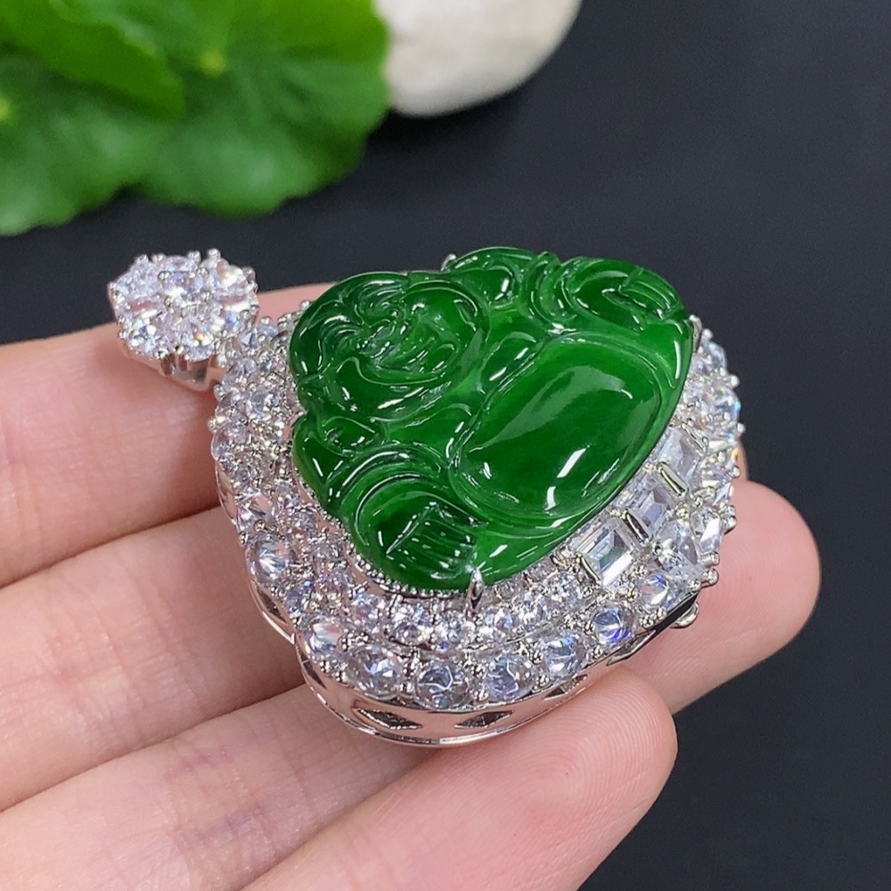 Jadeite Buddha Pendant with Inlay Non-Gold Total Weight Approx. 27.61g