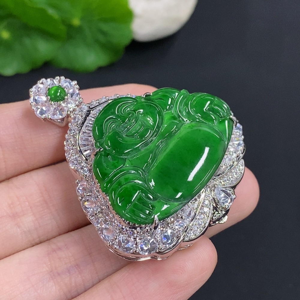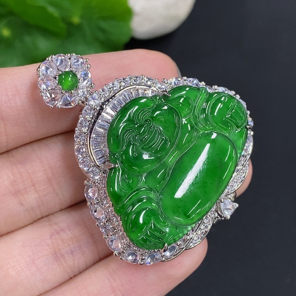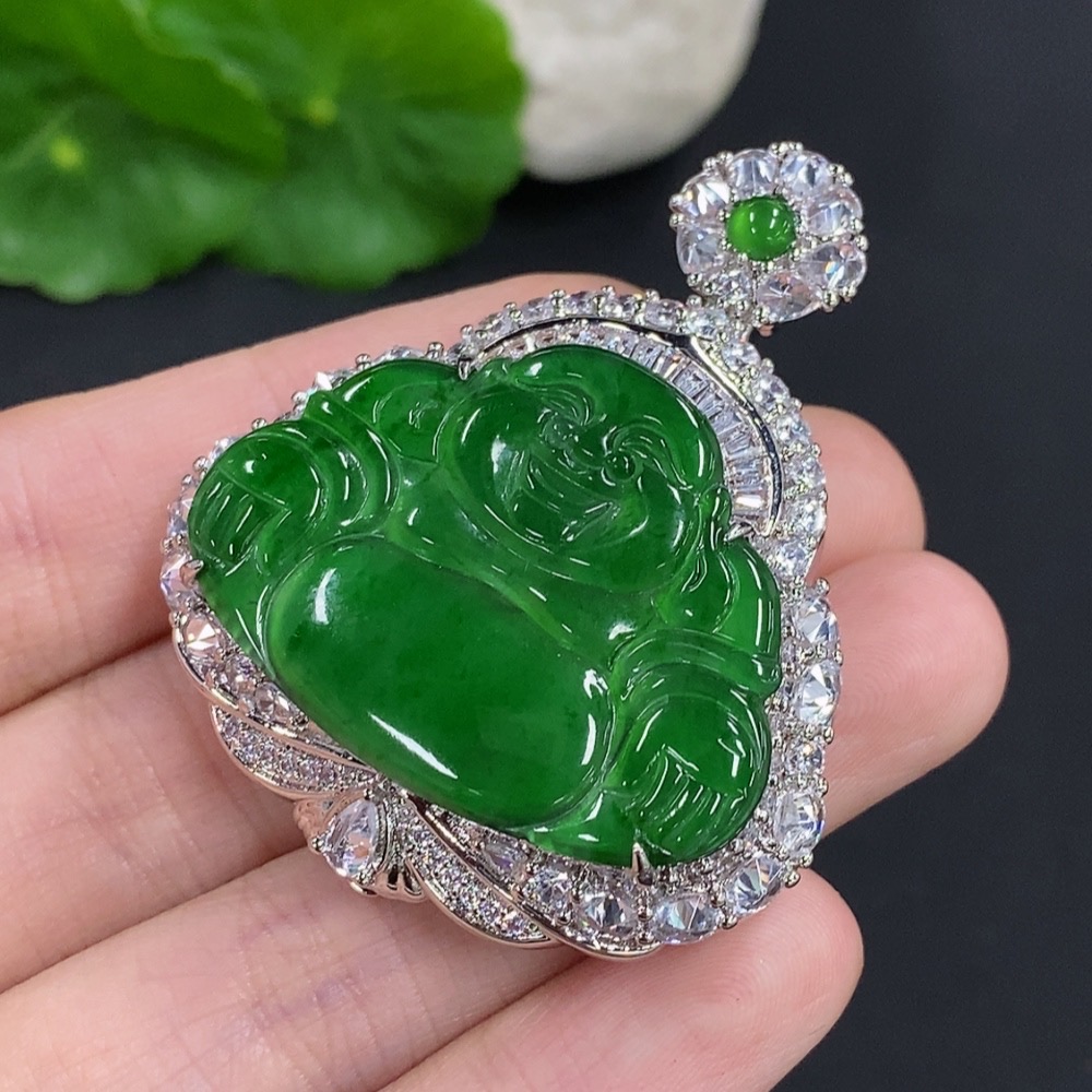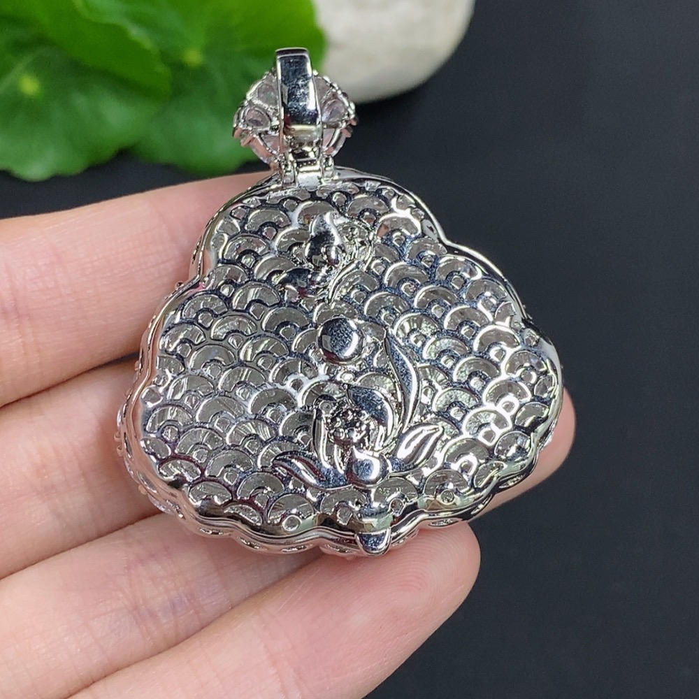 Jadeite Buddha Pendant with Mounting, Non-Gold, Total Weight Approx. 27.09g