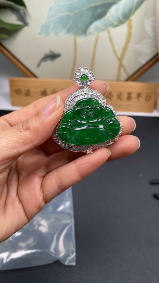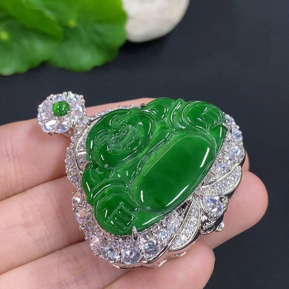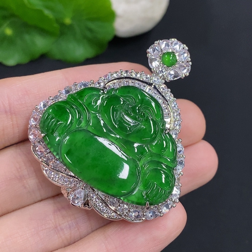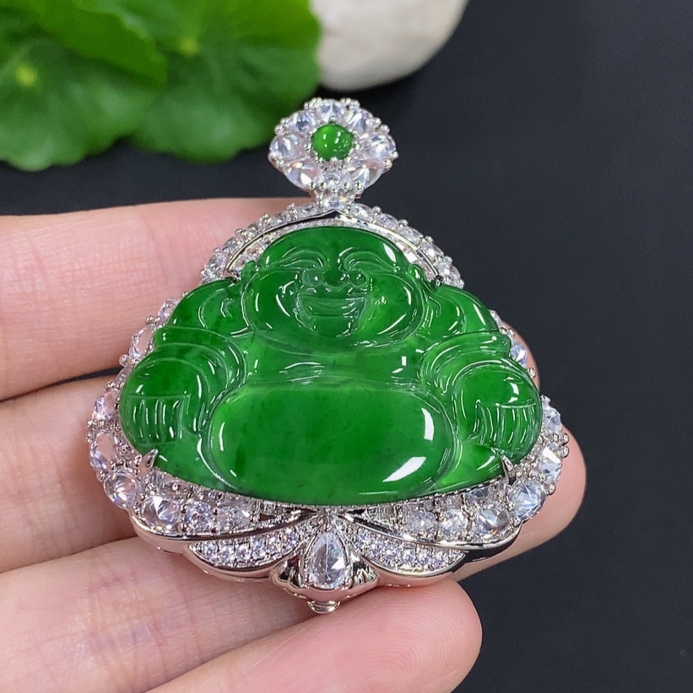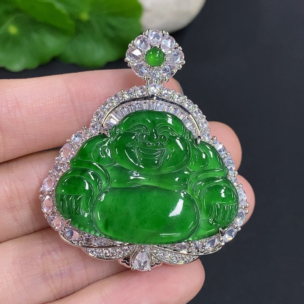 Jadeite Buddha Pendant with Mounting, Non-Gold, Total Weight Approx. 27.09g