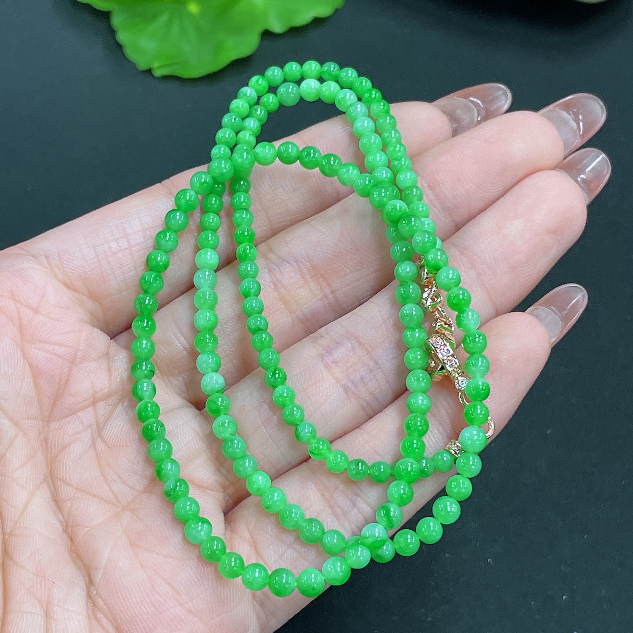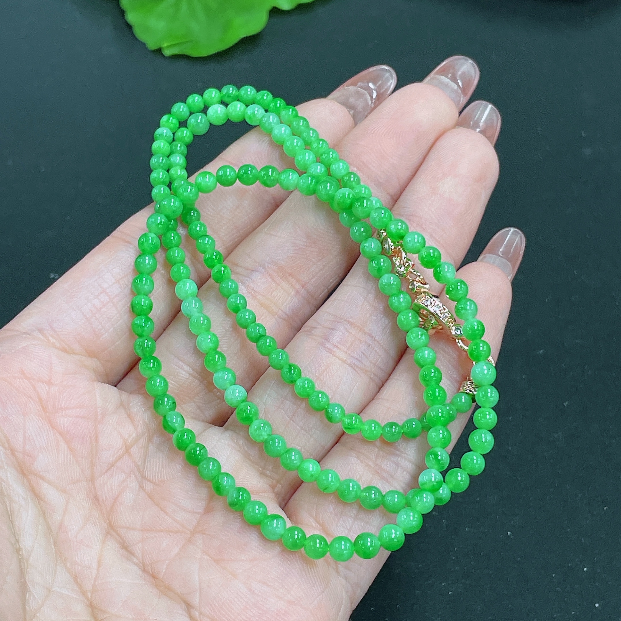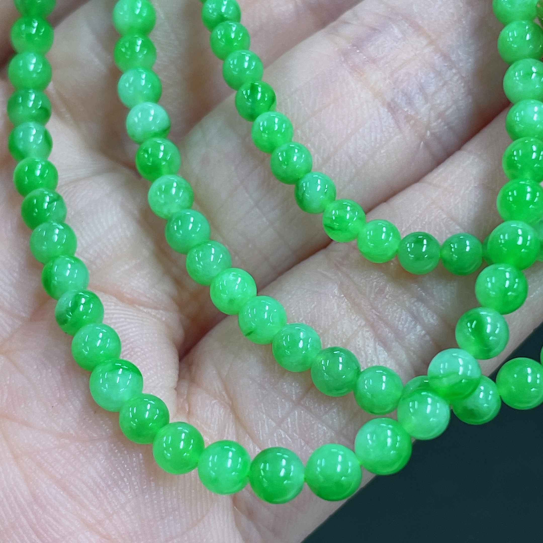 Jadeite Bead Necklace Non-Gold Total Weight Approx.12.3g Size About 3.4mm