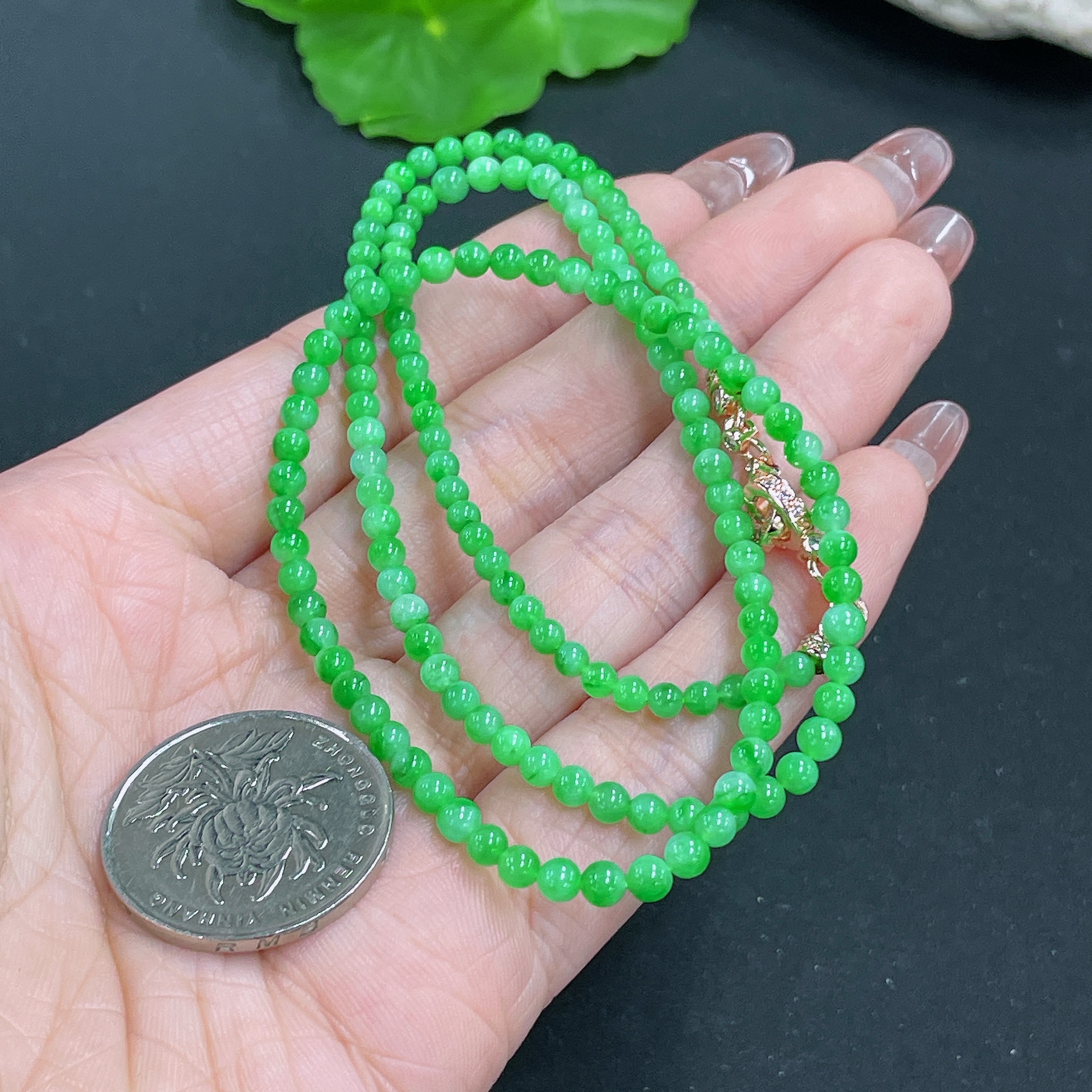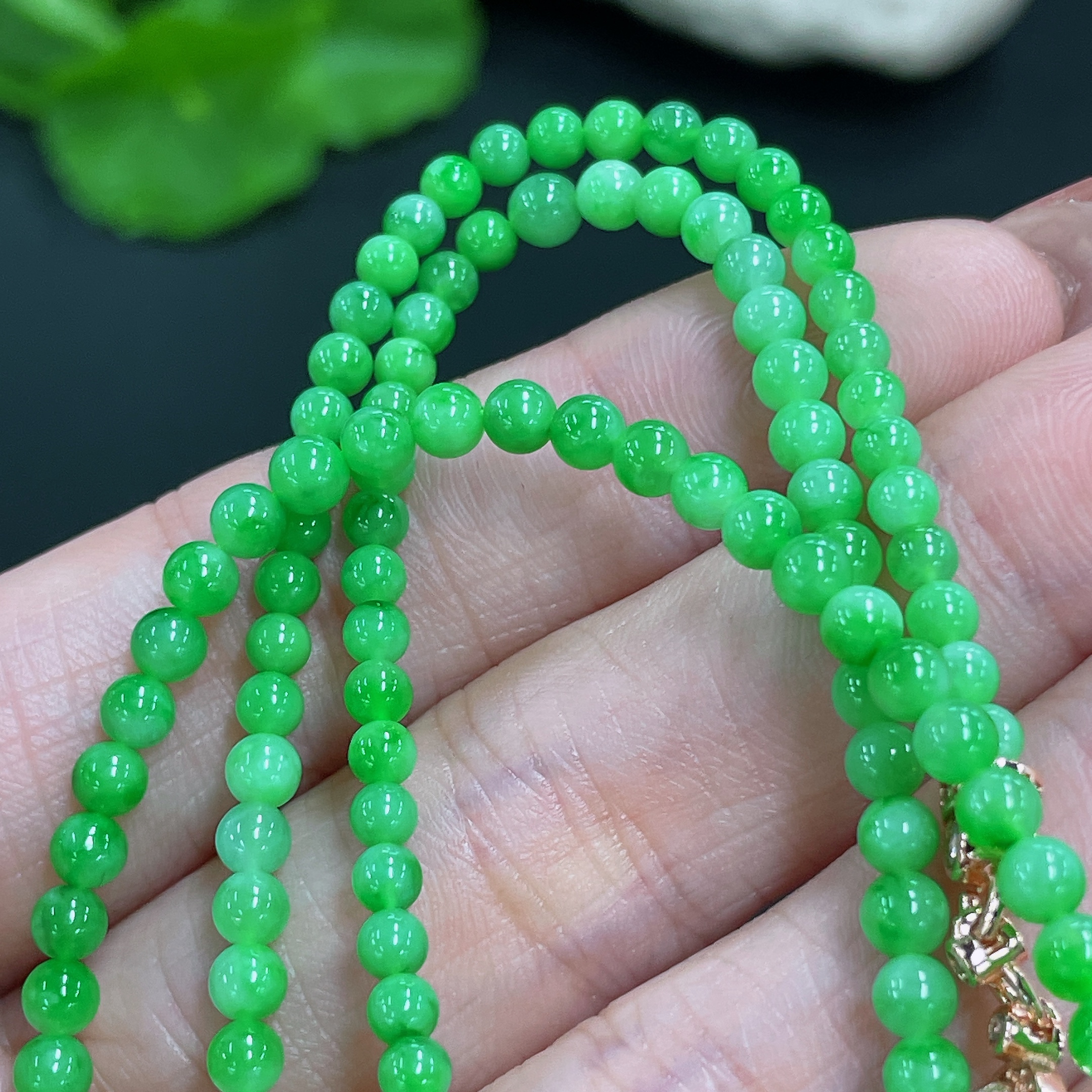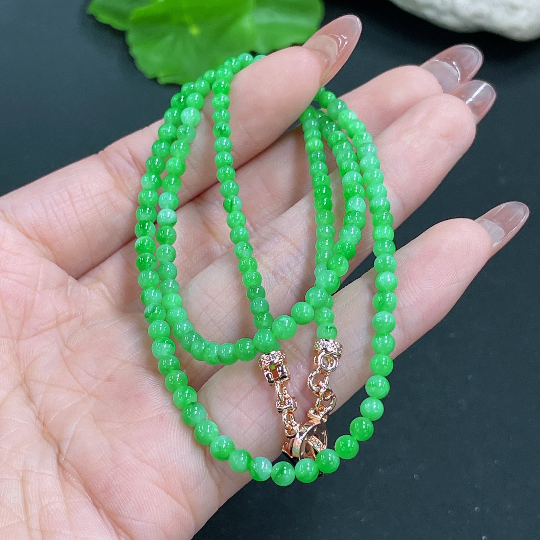 Jadeite Bead Necklace Non-Gold Total Weight Approx.12.3g Size About 3.4mm