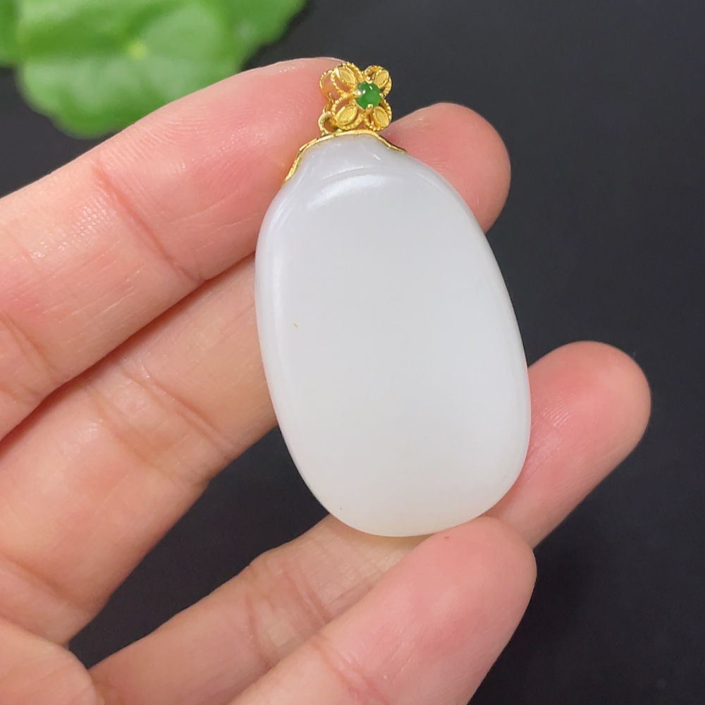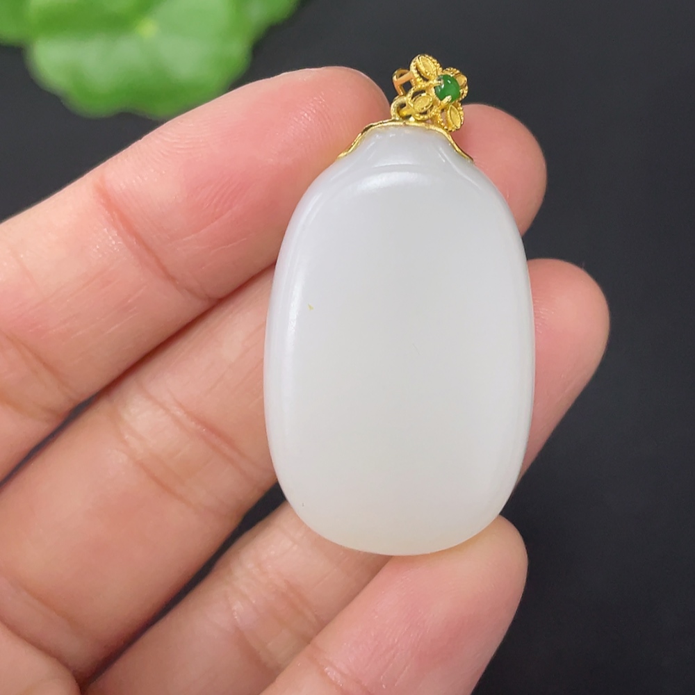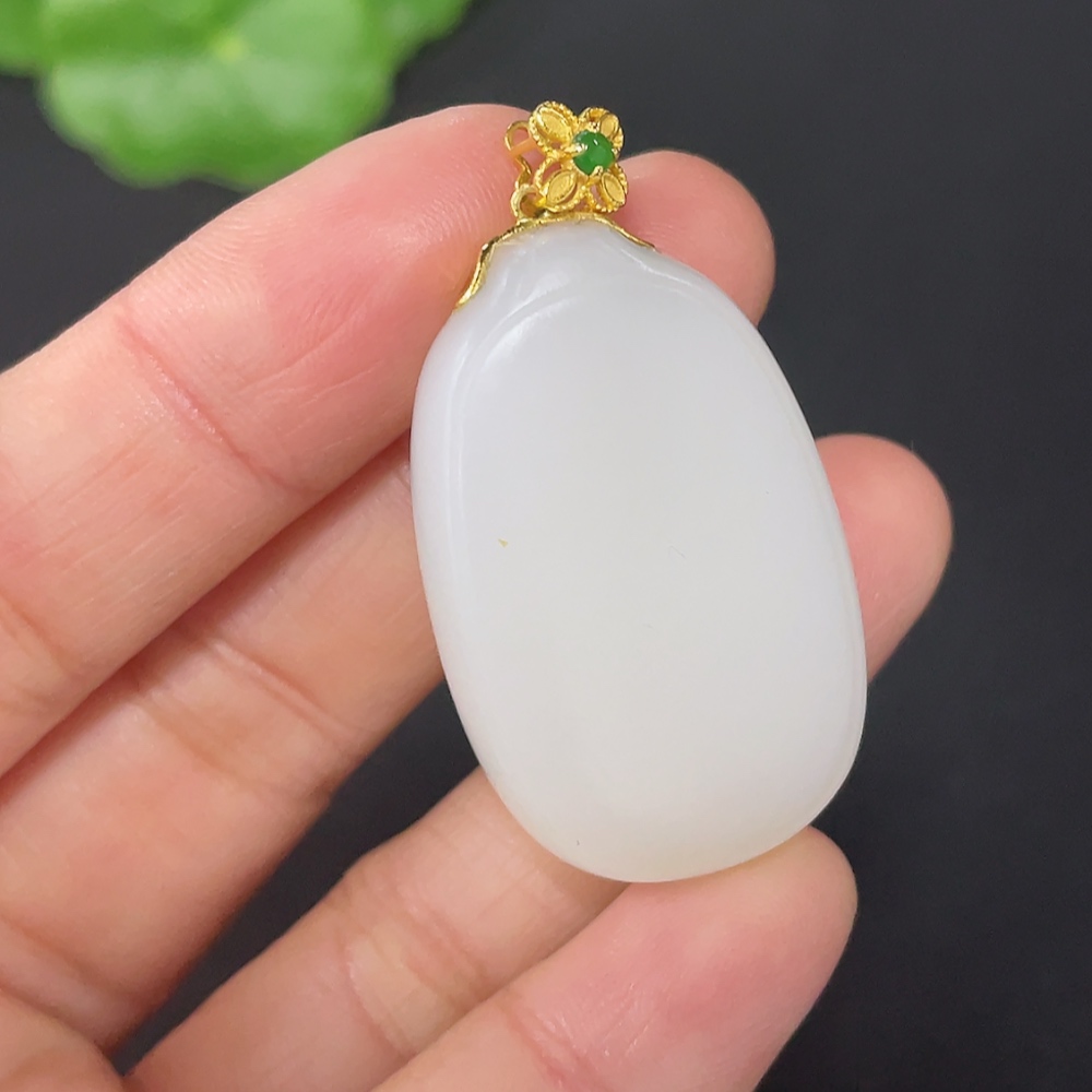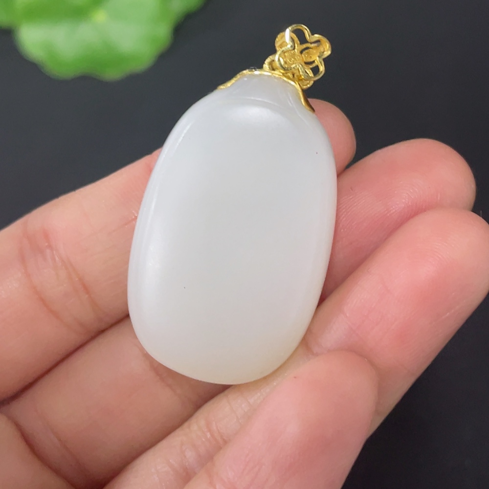 Hetian Jade Pendant, Plain Pendant with 18k Gold Clasp, Total Weight Approx. 14.2g