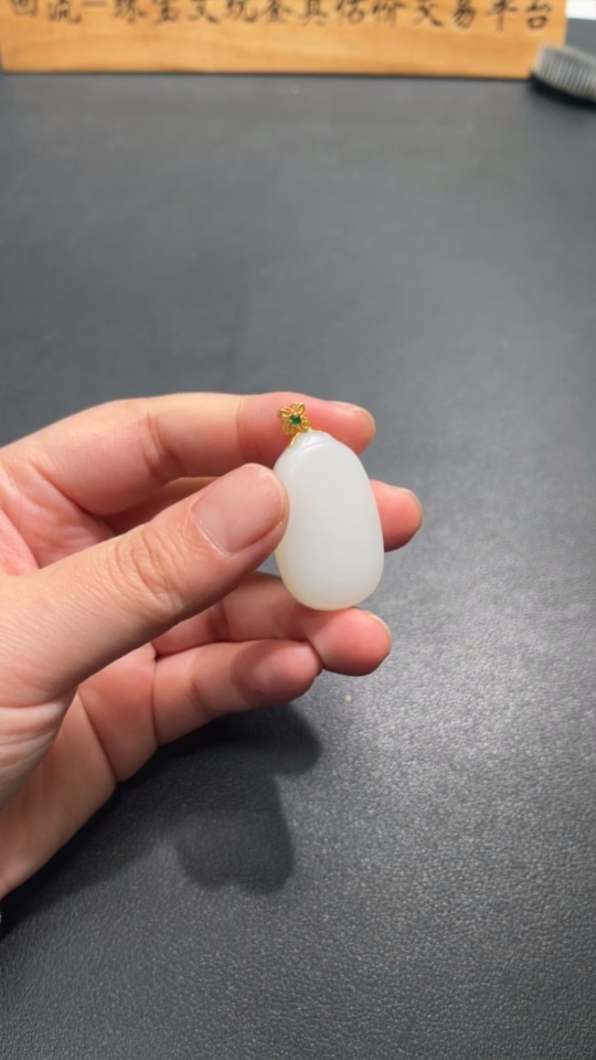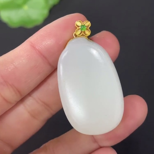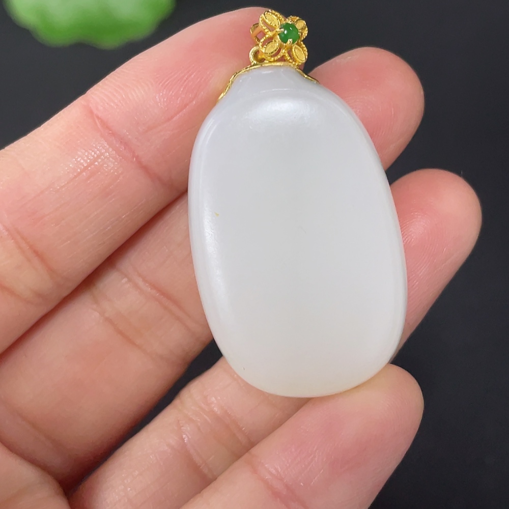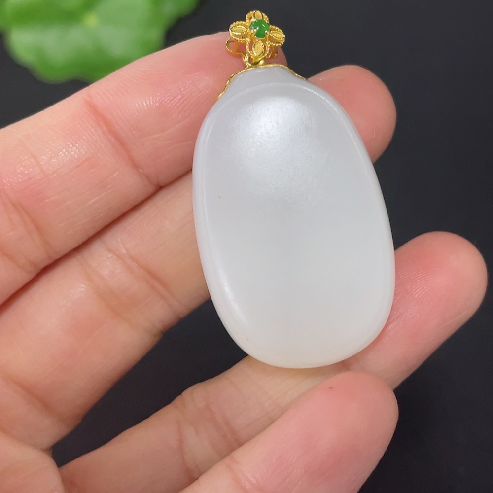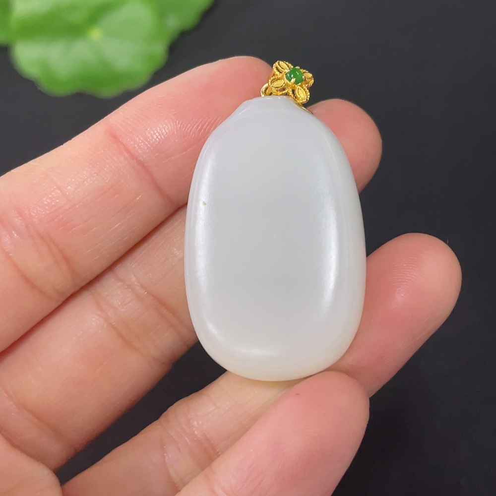 Hetian Jade Pendant, Plain Pendant with 18k Gold Clasp, Total Weight Approx. 14.2g