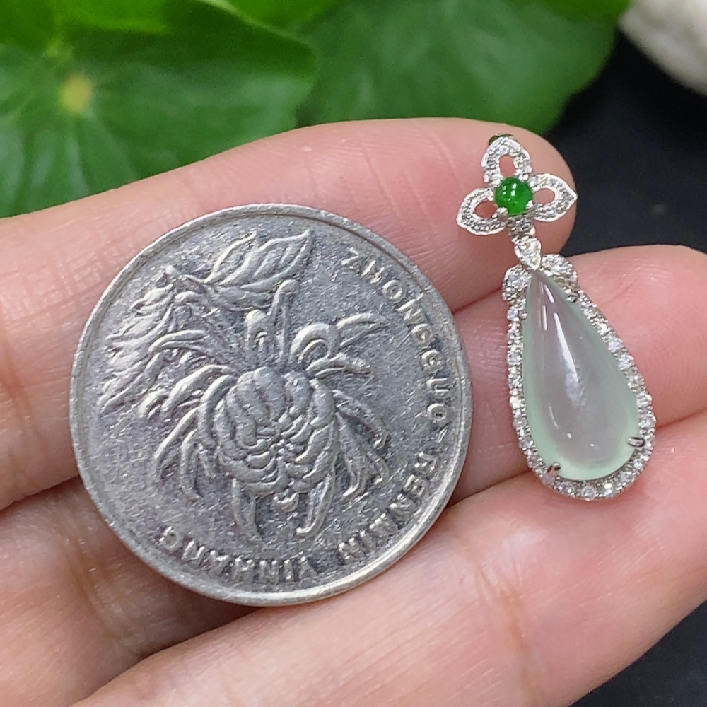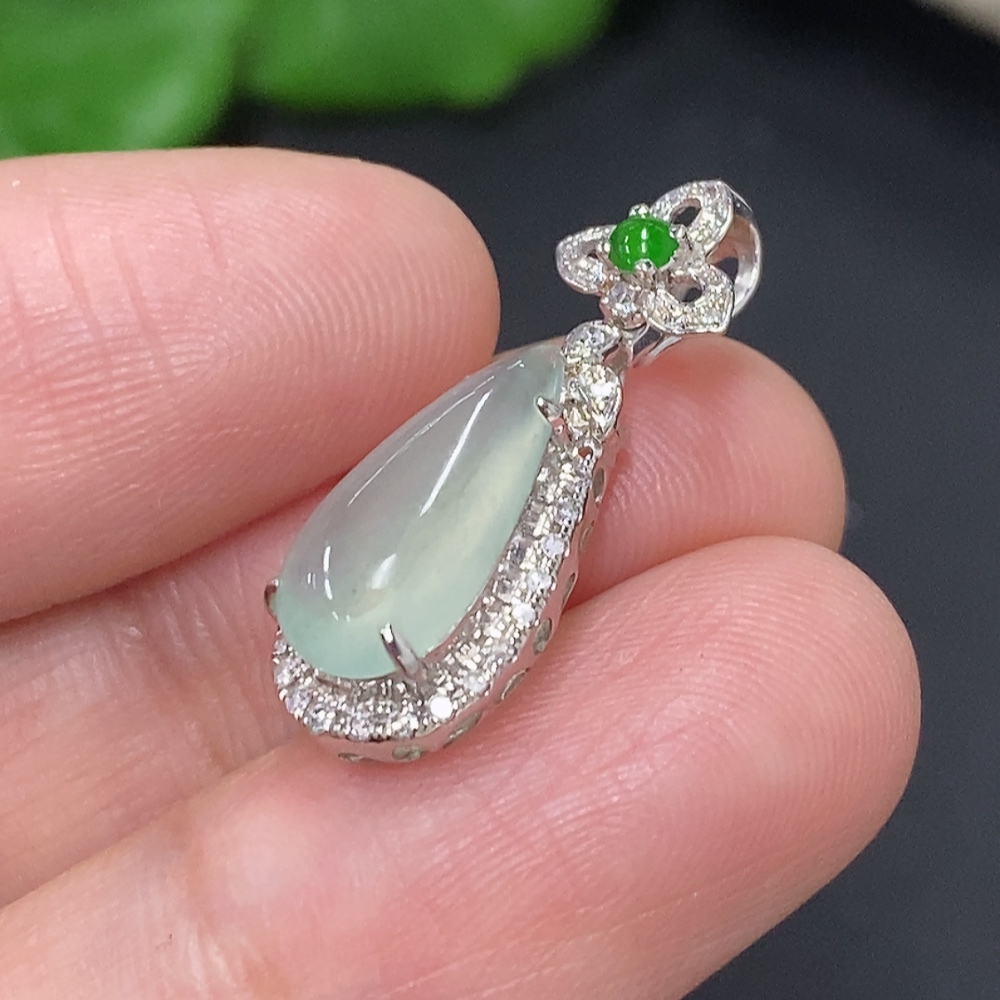 Jadeite Inlaid Pendant 18K Gold Total Weight Approx. 1.6g (With Diamond Accents)