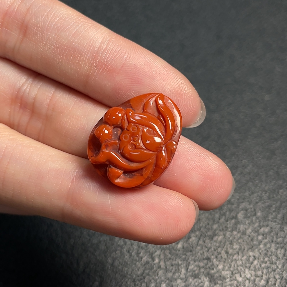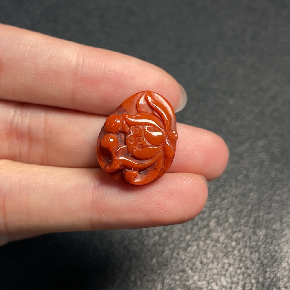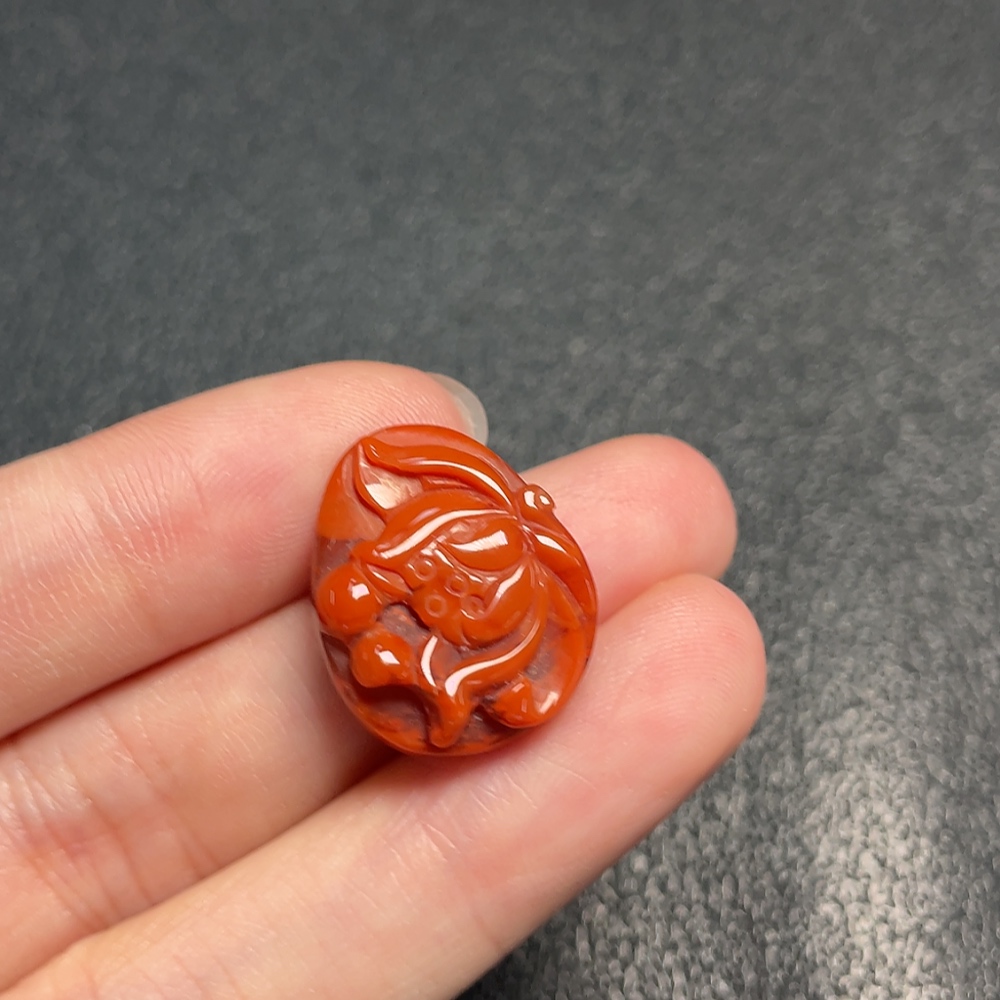 Red Agate Pendant with Visible Organic Matter, Total Weight Approx. 3.46g