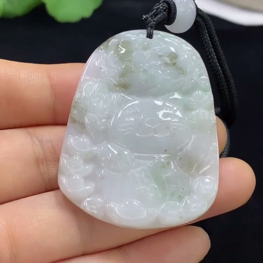 Jadeite Pendant Cat Total Weight Approx. 21.69g (including rope weight)