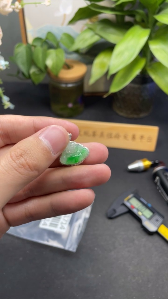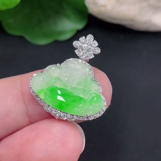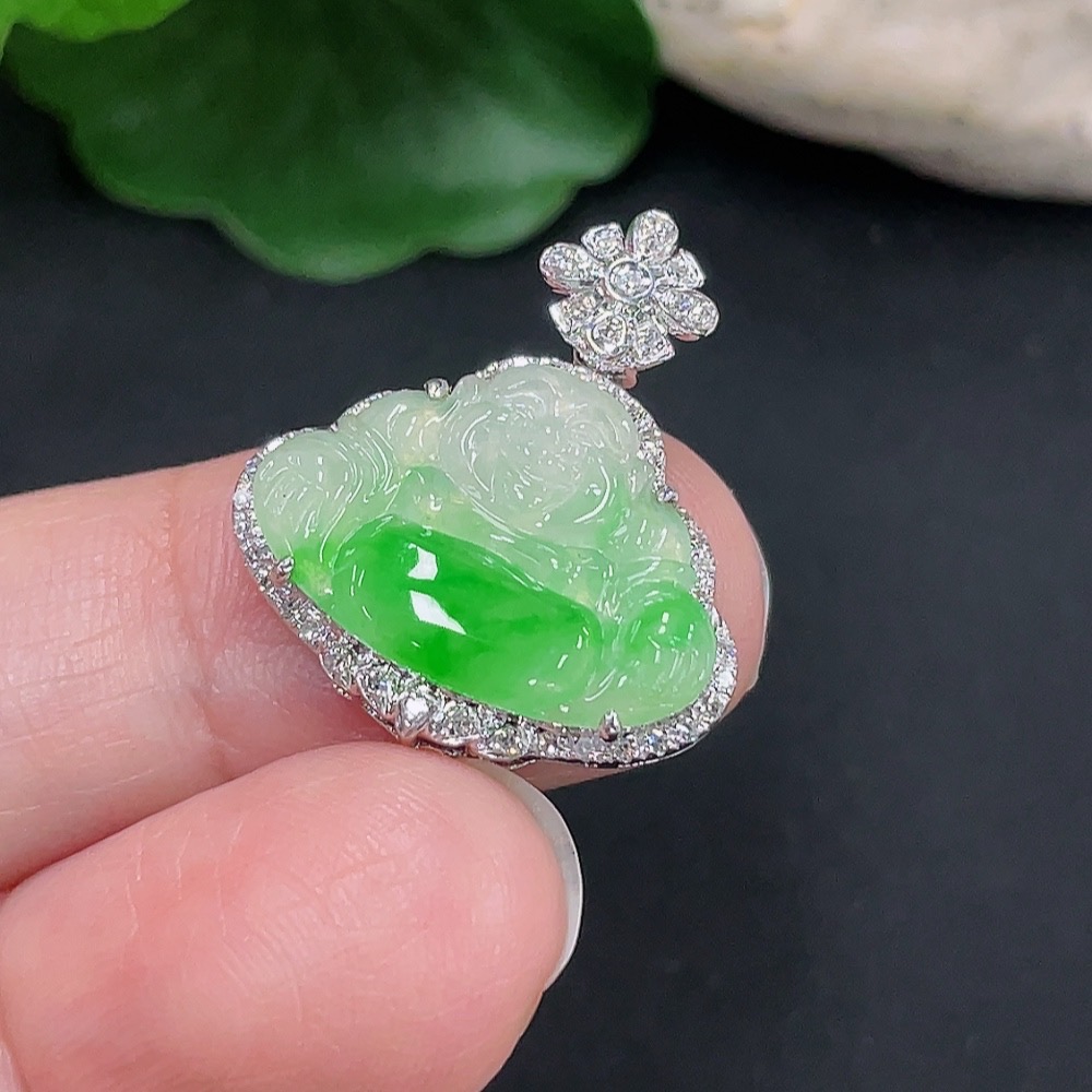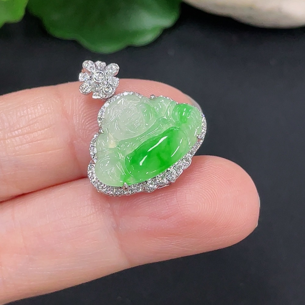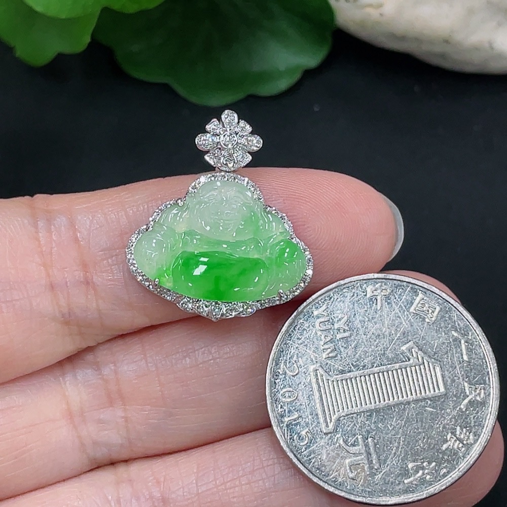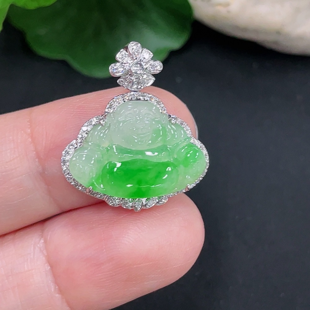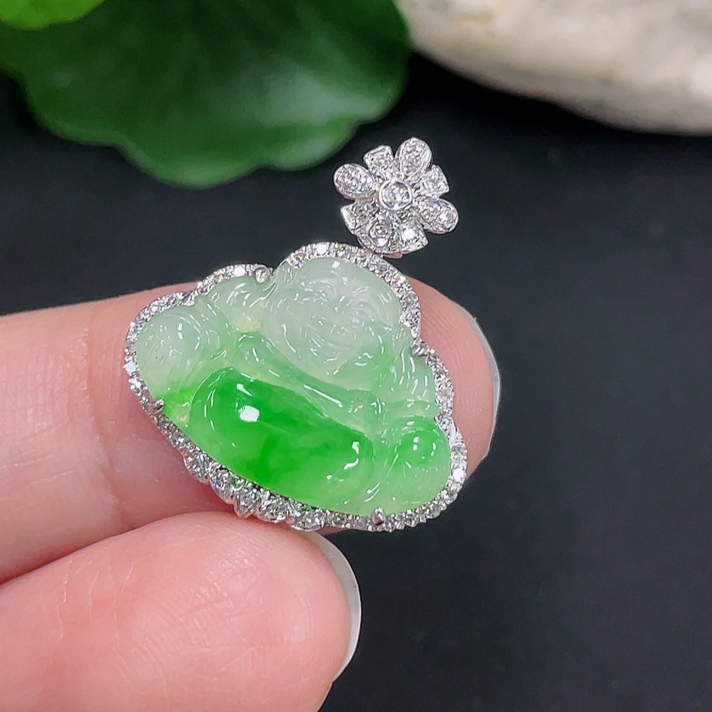 Jadeite Buddha Pendant with 18K Gold Setting, Total Weight Approx. 2.7g (Diamond Accents)