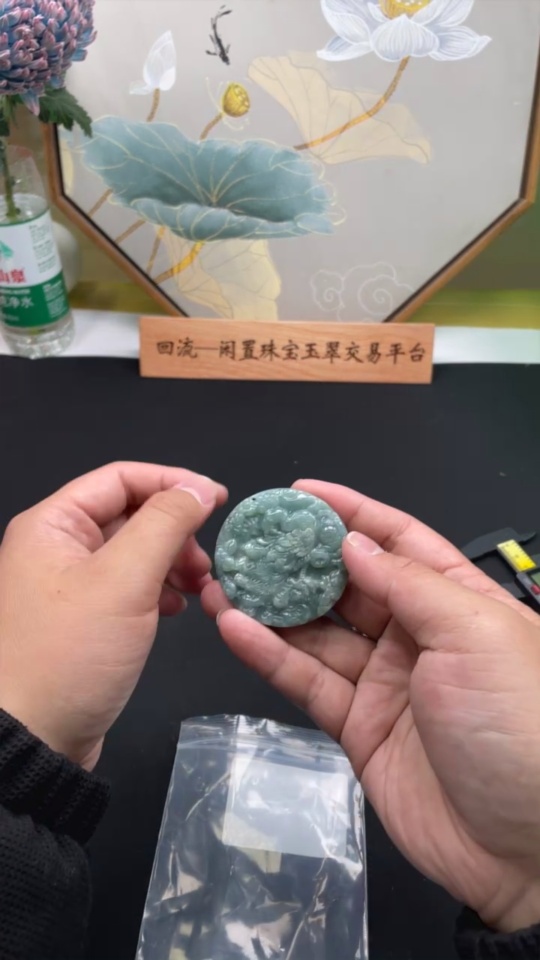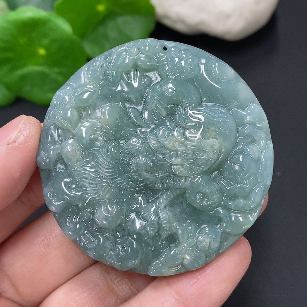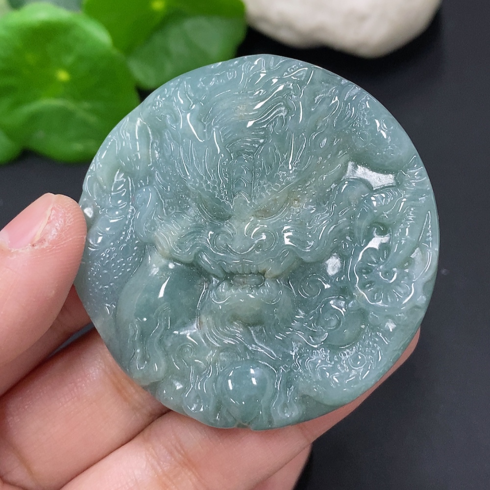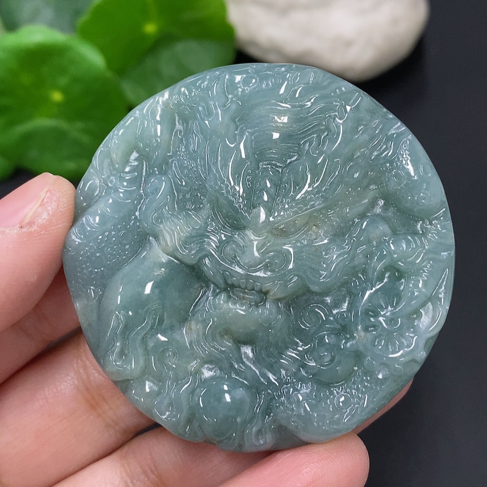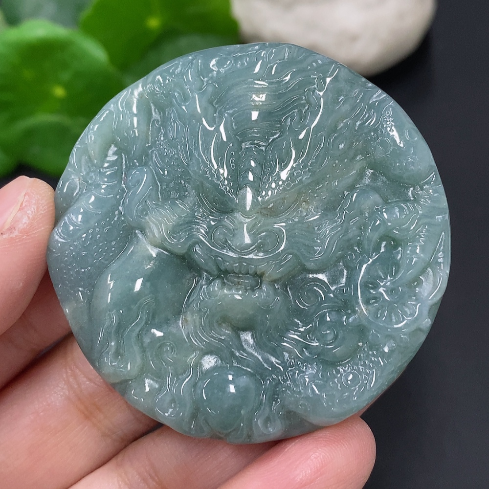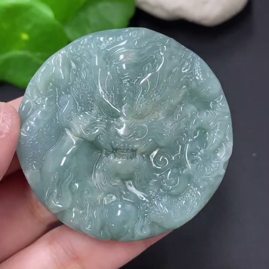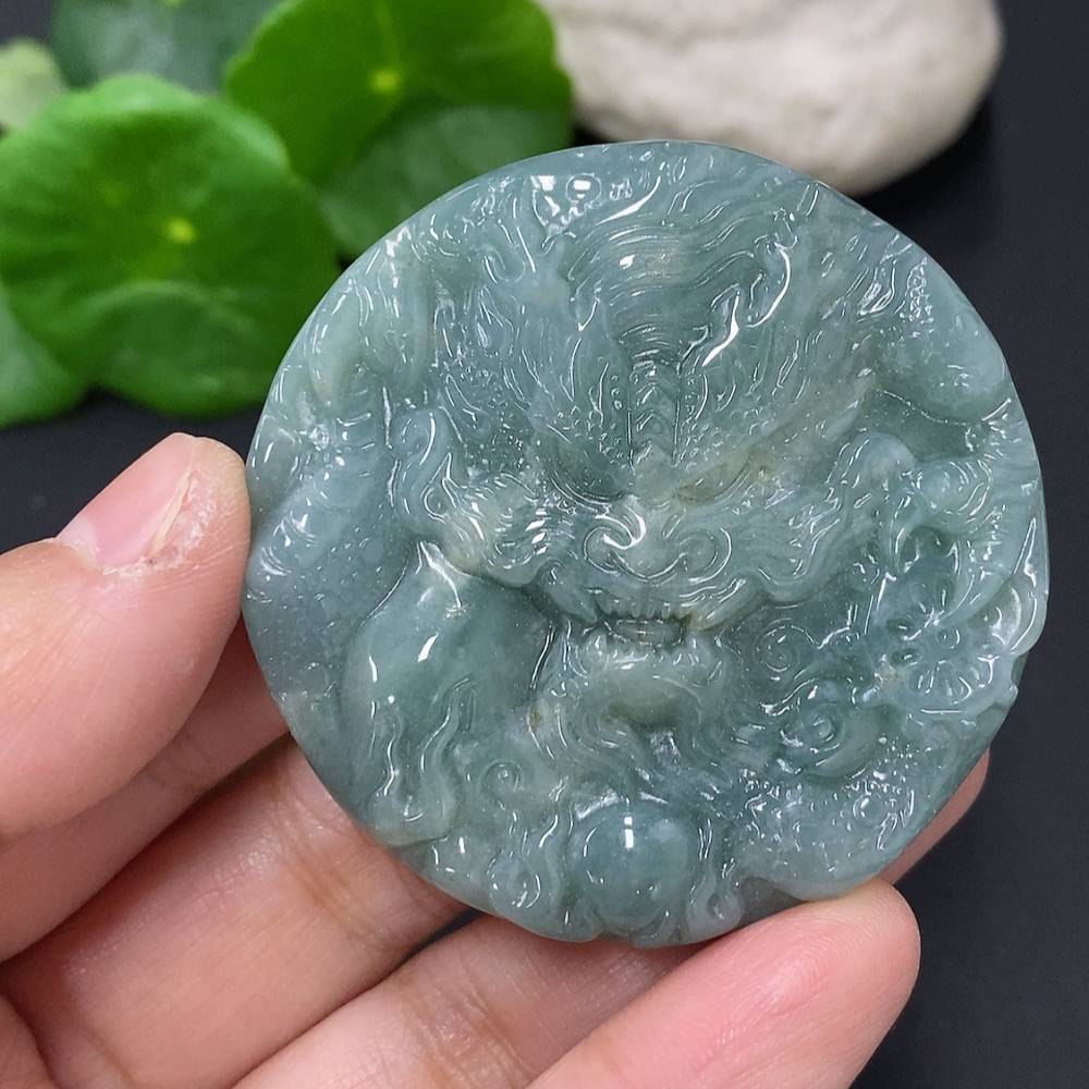 Jadeite Dragon and Phoenix Auspicious Pendant, Total Weight Approximately 55.7g