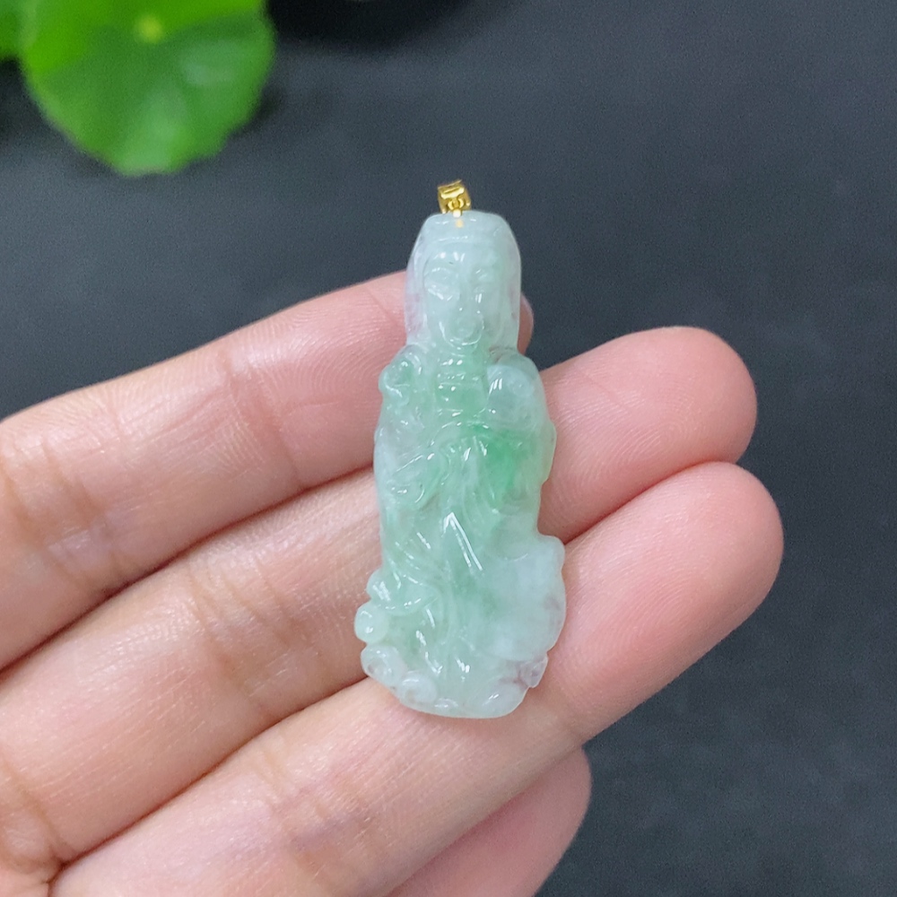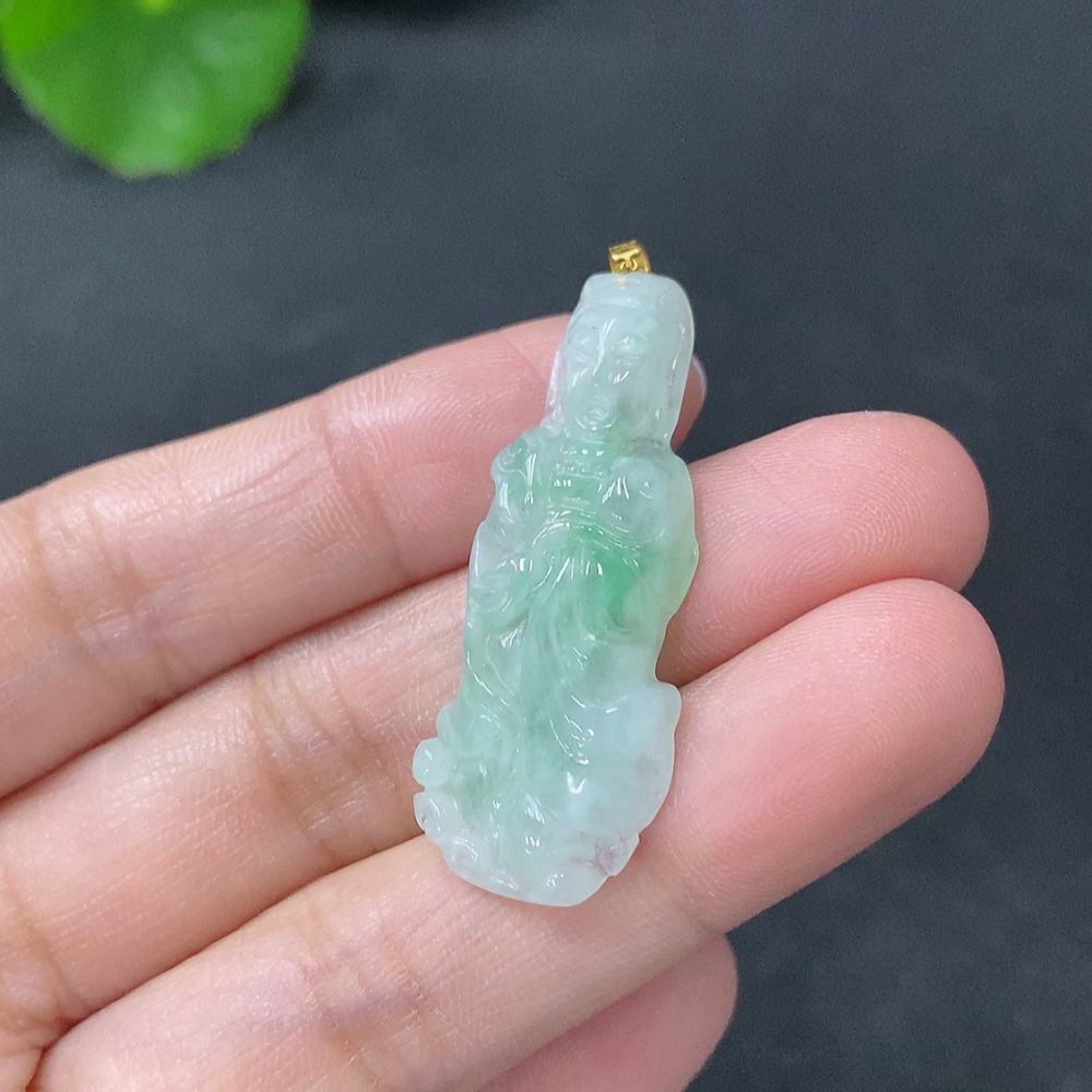 Jadeite Pendant Guanyin 18k Total Weight Approx. 4g