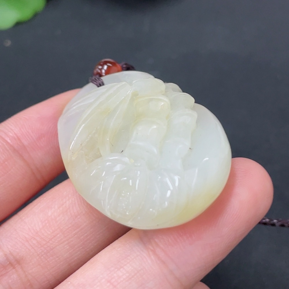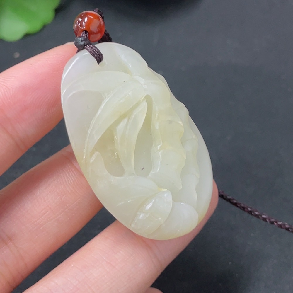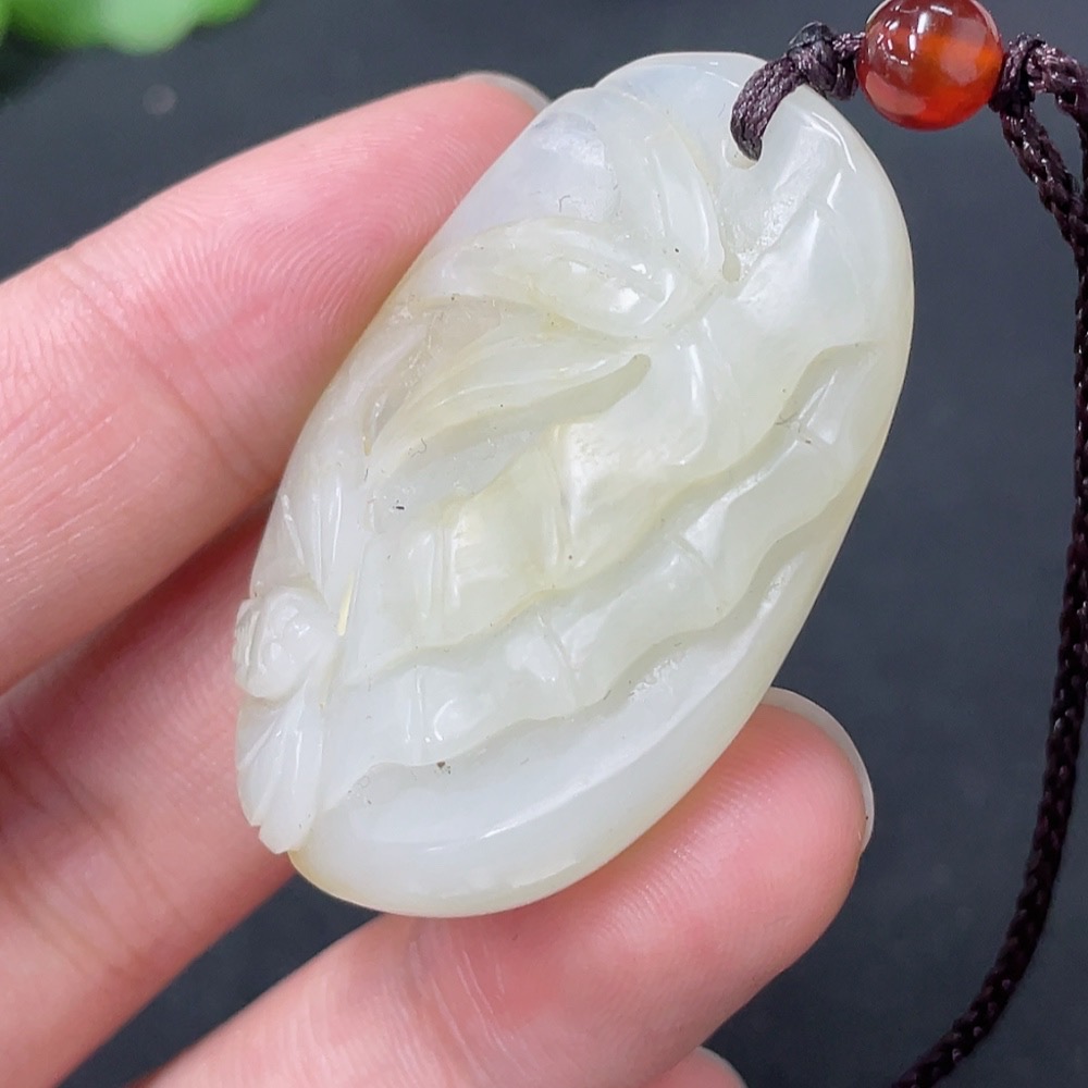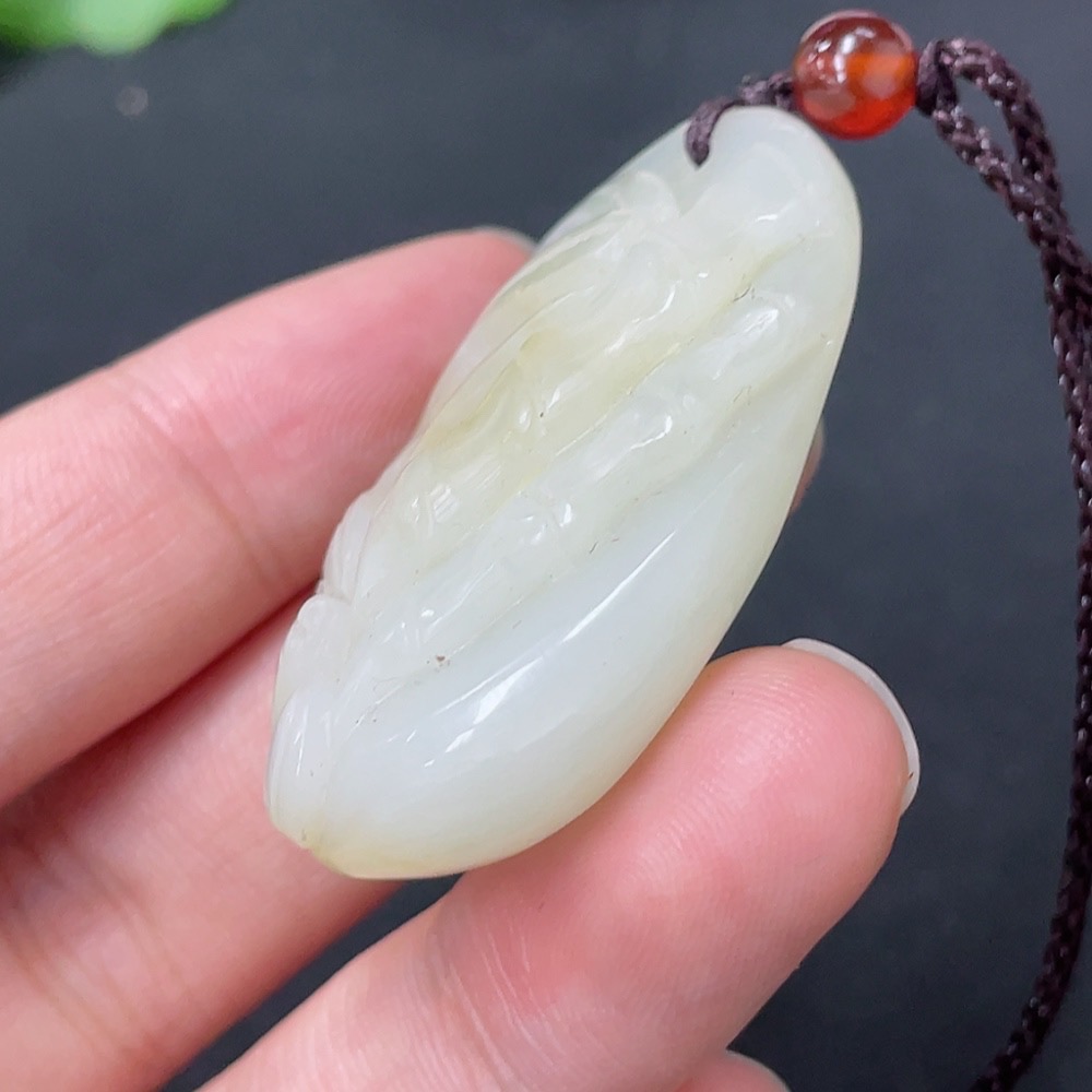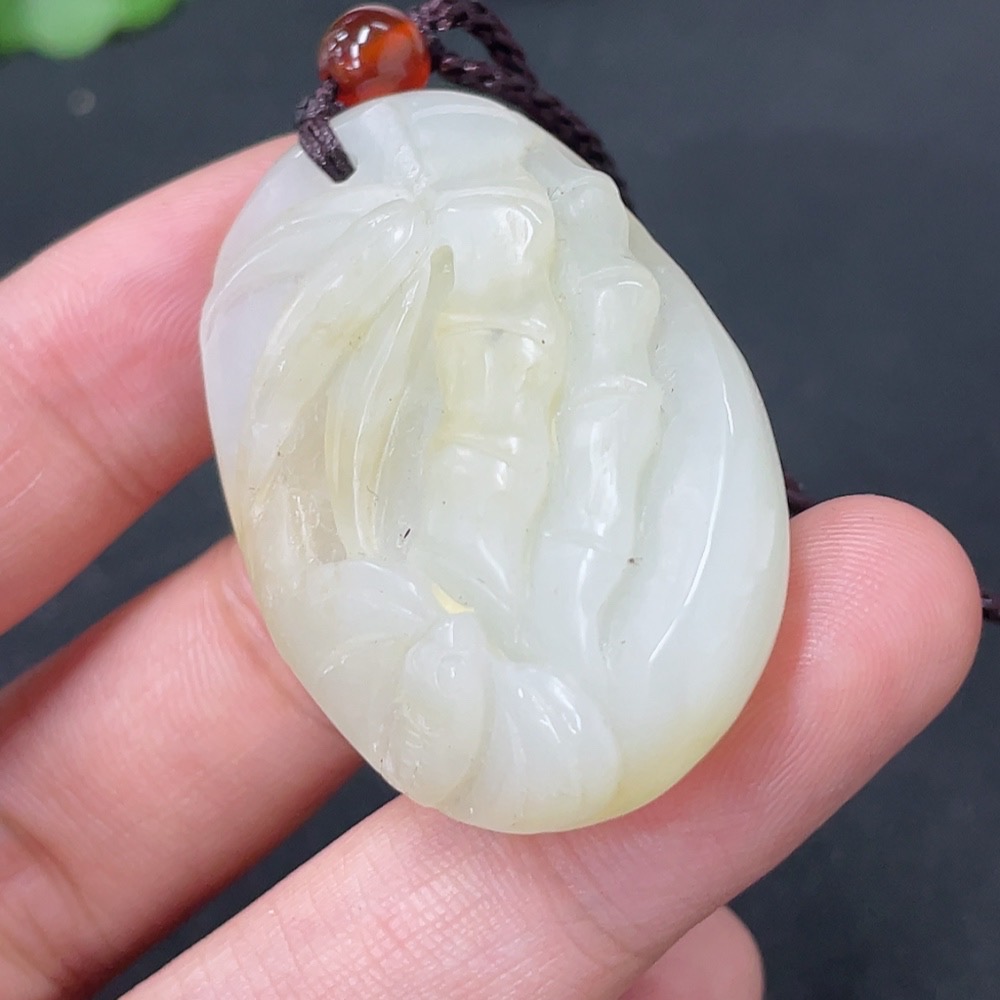 Hetian Jade Pendant Bamboo Knot with Non-Hetian Jade Beads Total Weight Approx. 21.3g (Incl. Cord)