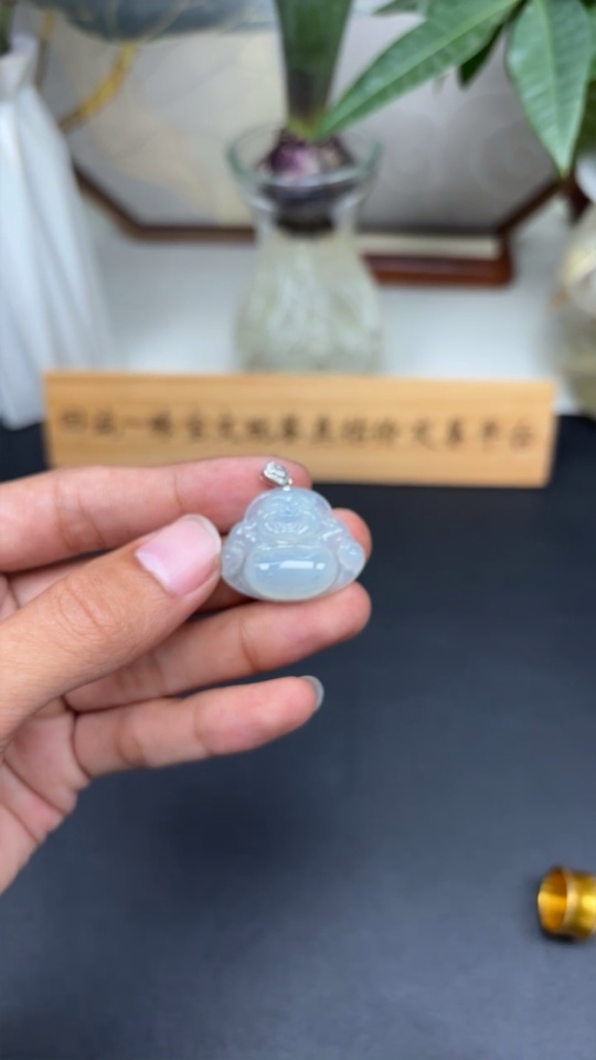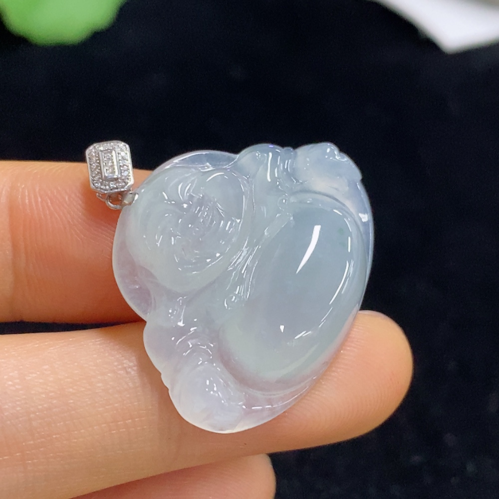 Jadeite Pendant with 18k Clasp and Diamond Accents, Total Weight Approximately 6.1g