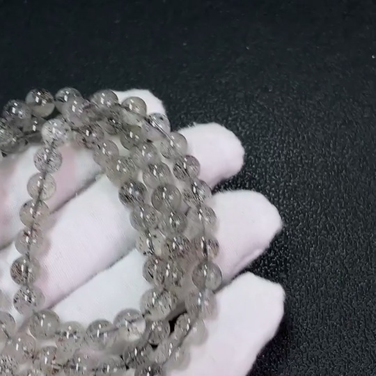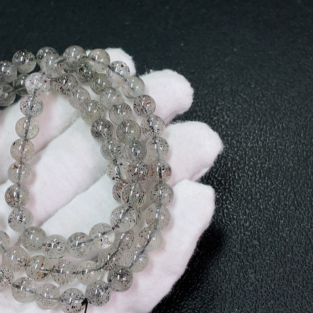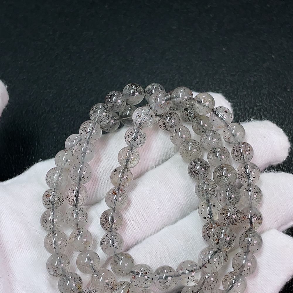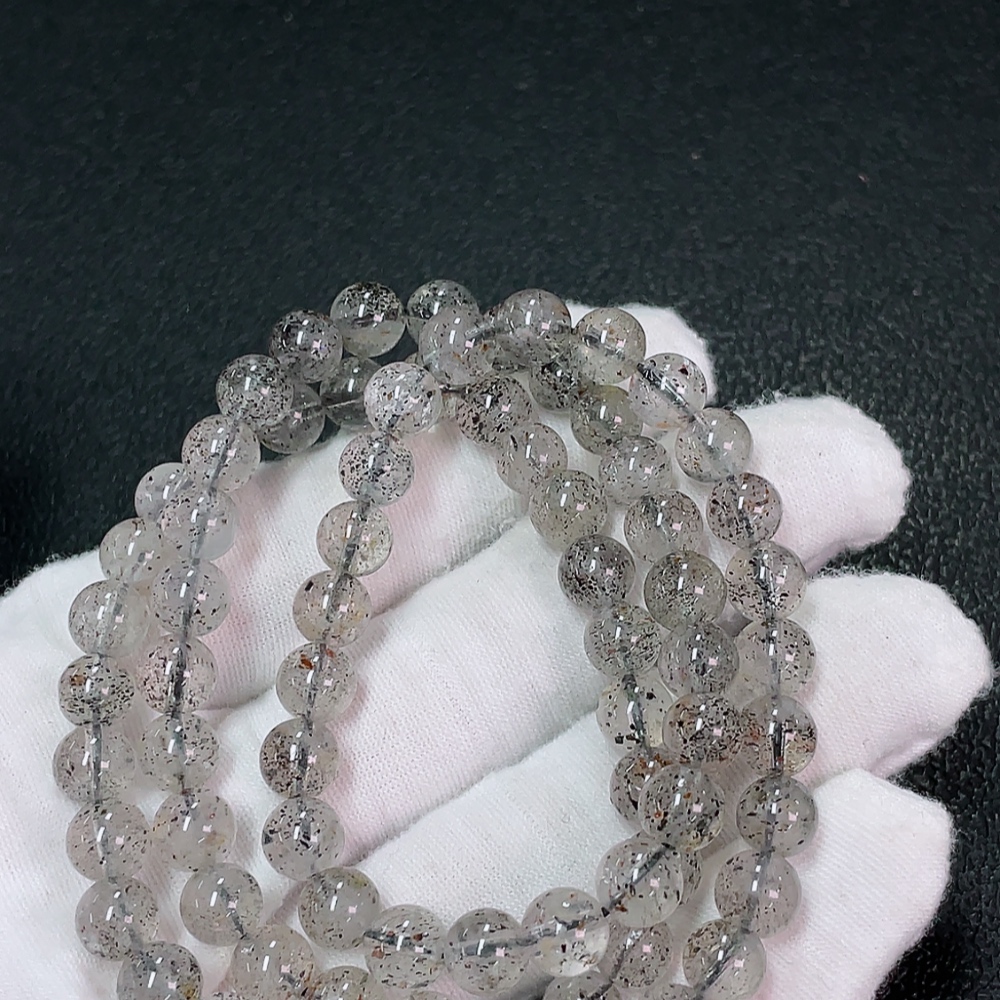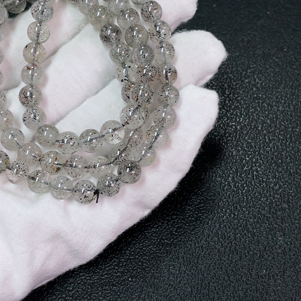Crystal Bead Strand with Visible Organic Matter, Total Weight Approx. 39.51g, 7mm Beads (Filled)