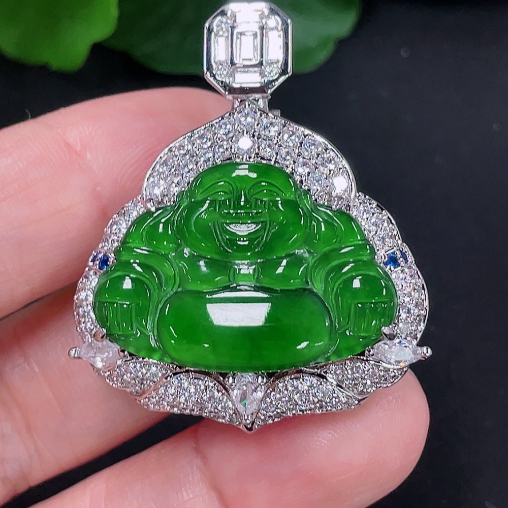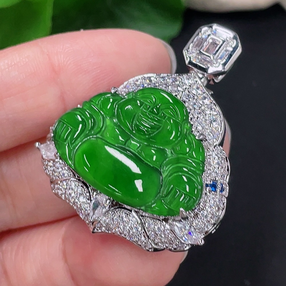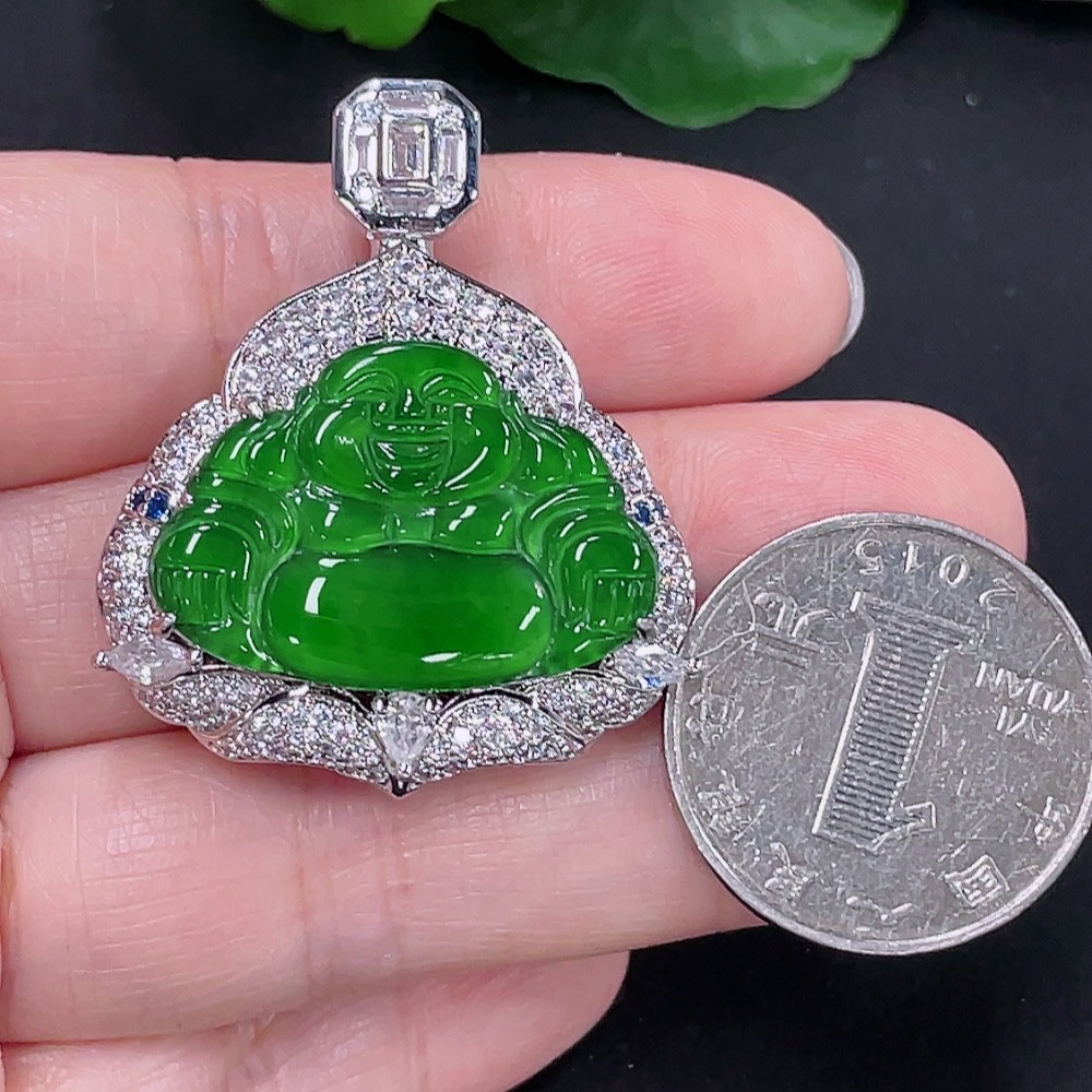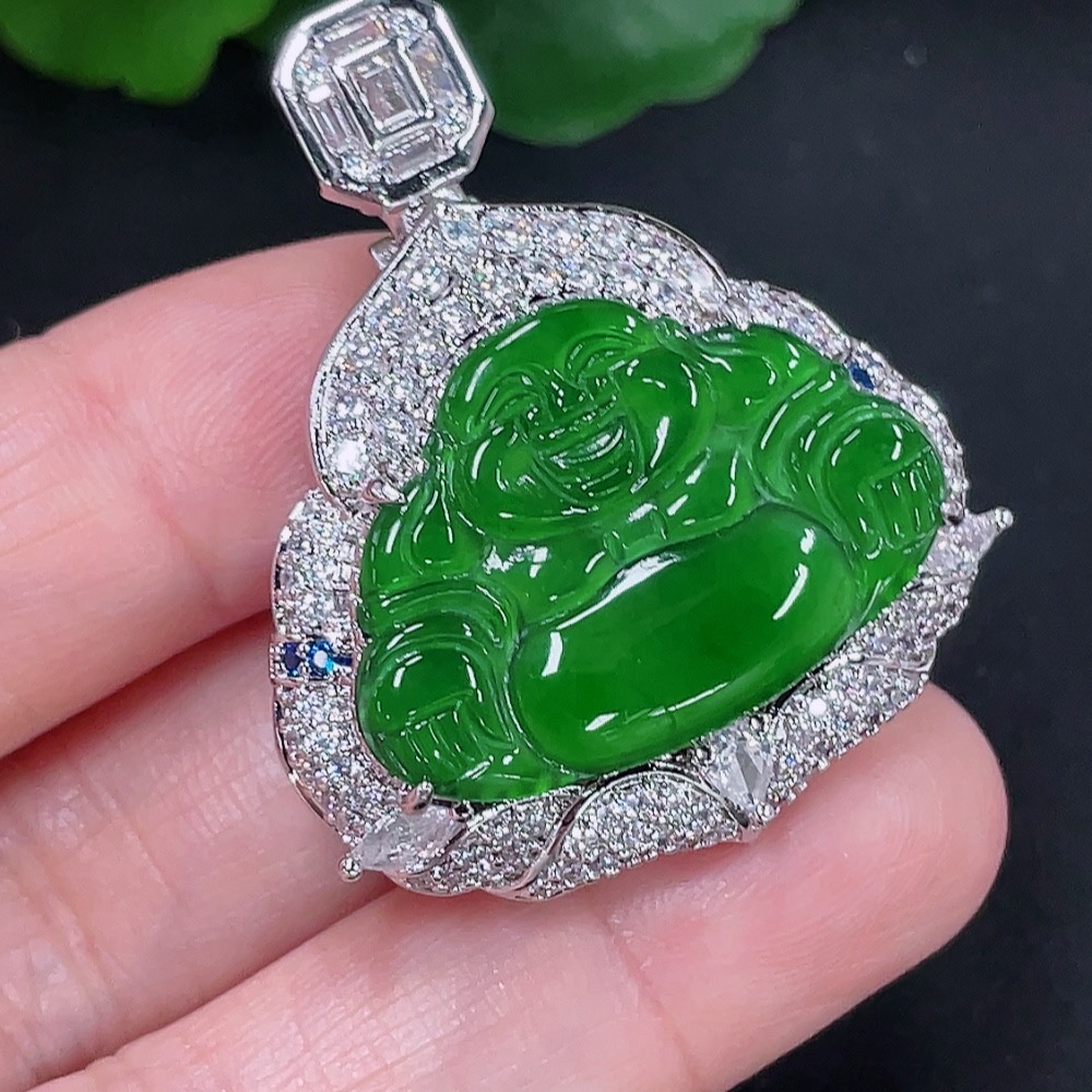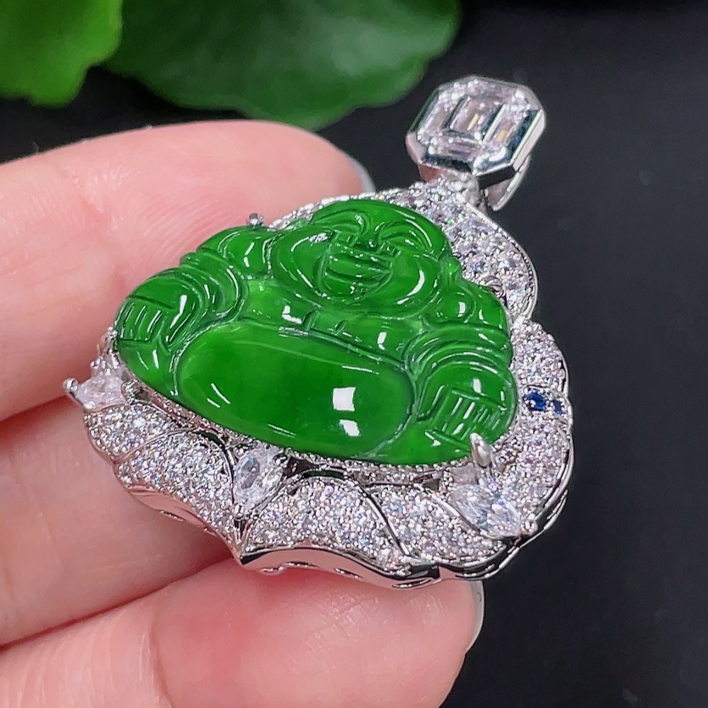 Jadeite Buddha Pendant with Inlay Non-Gold Inlay Total Weight Approx. 16.57g