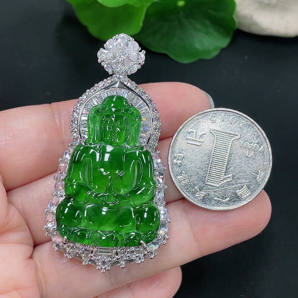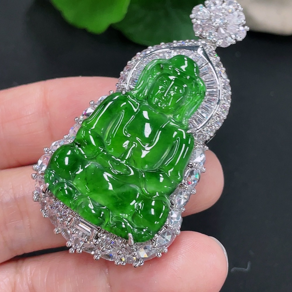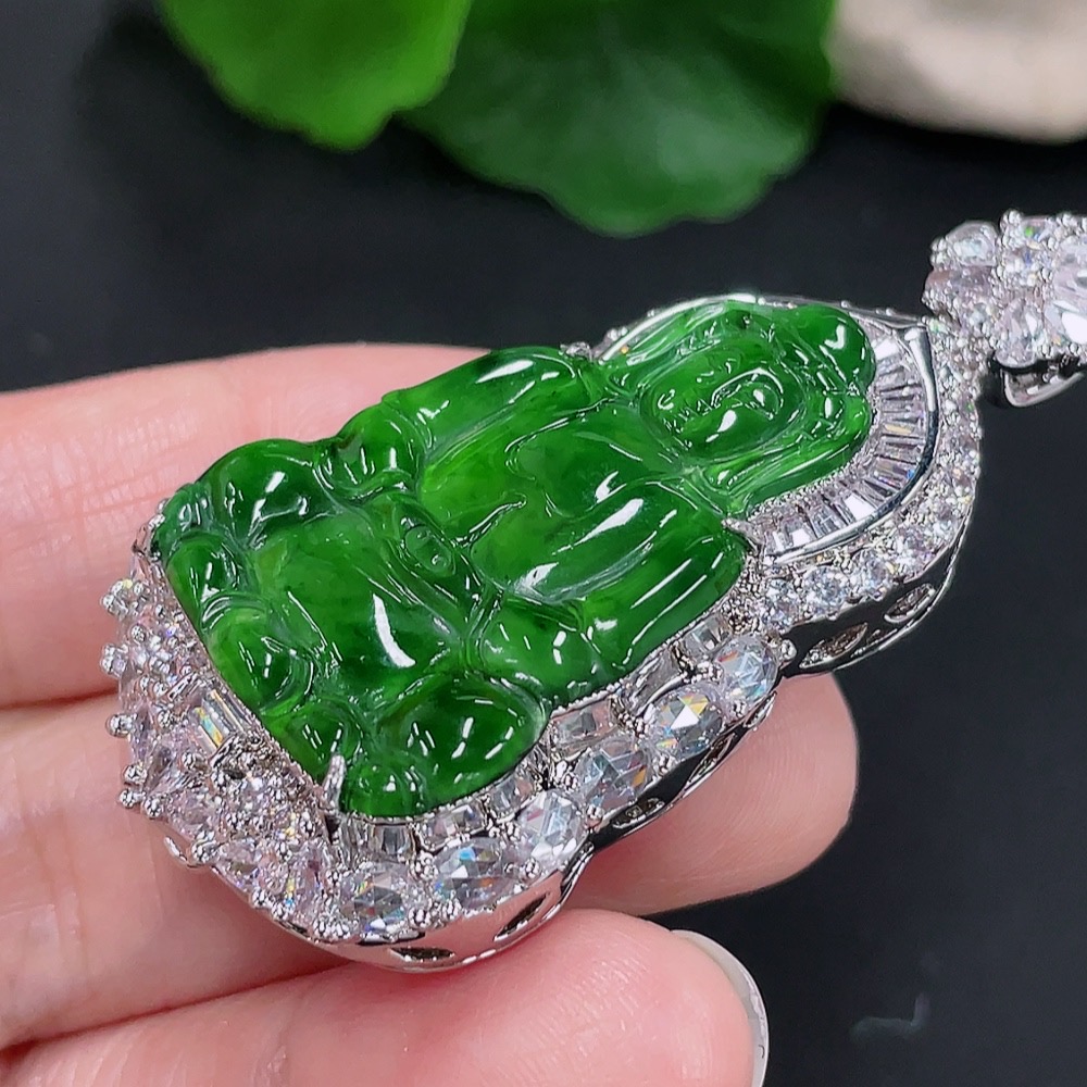 Jadeite Guanyin Inlaid Pendant Non-Gold Inlaid Total Weight About 24.4g