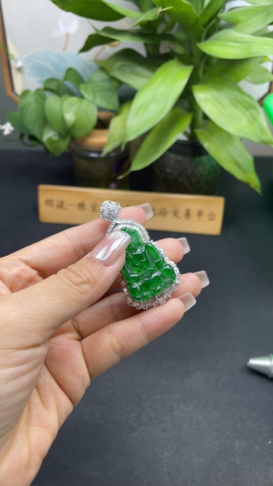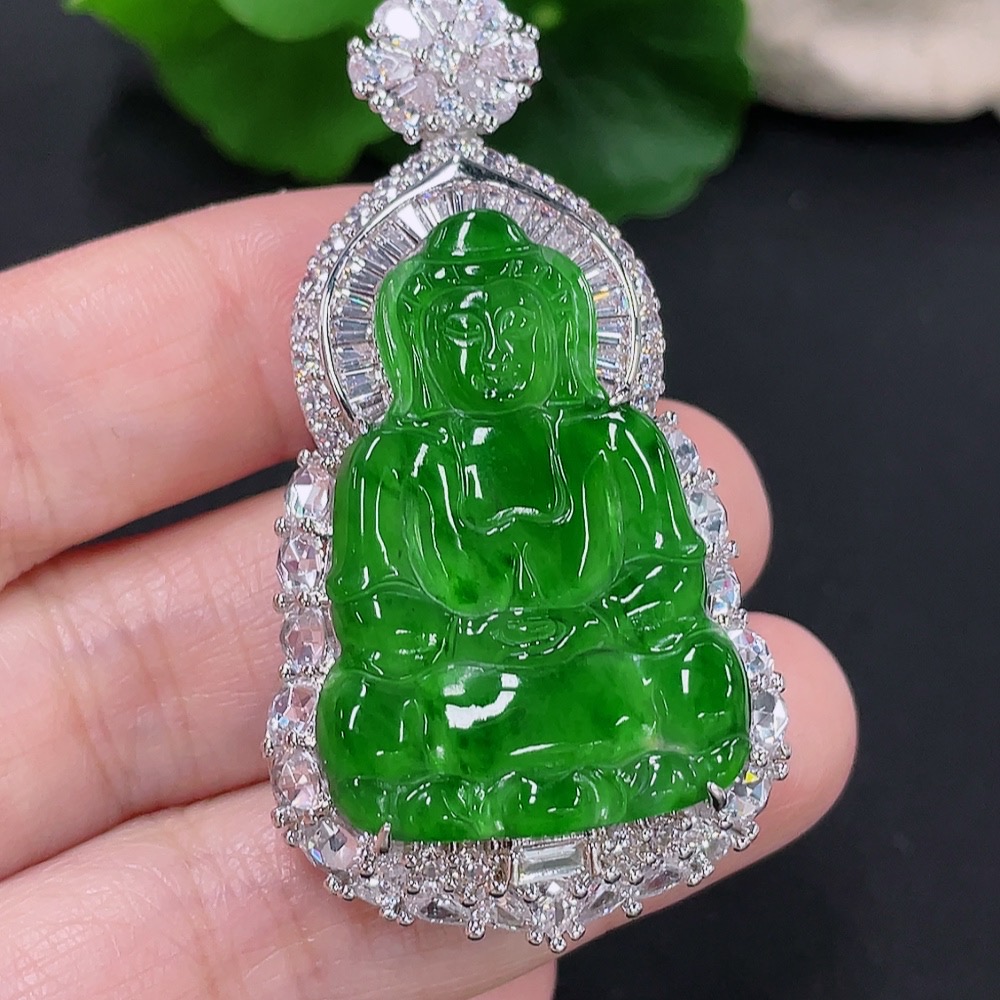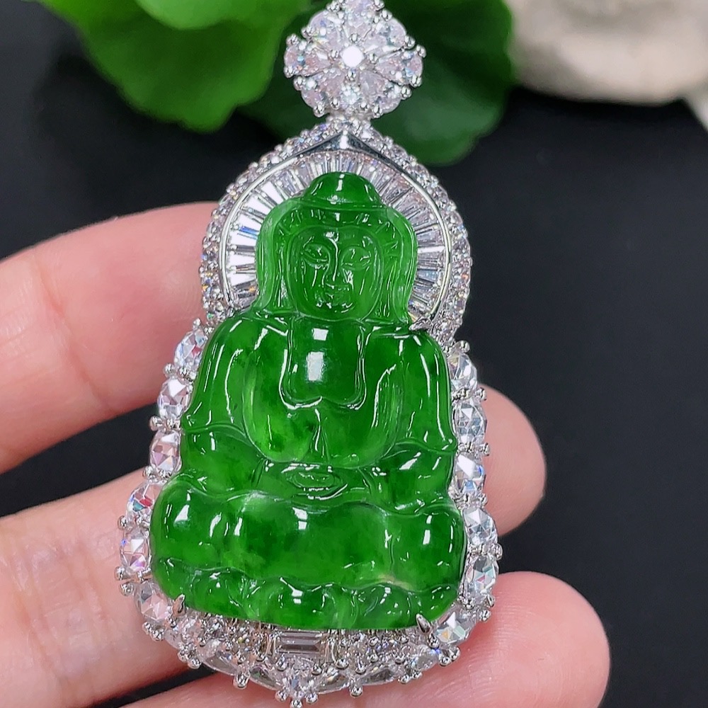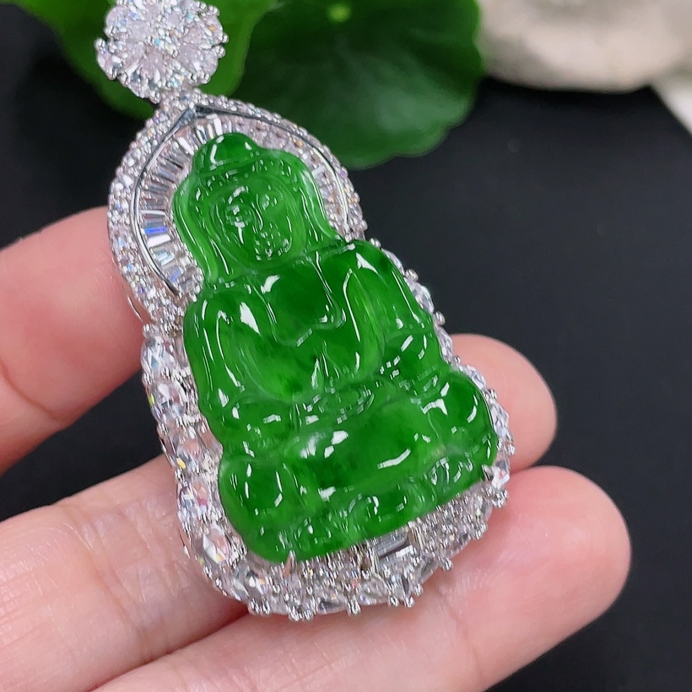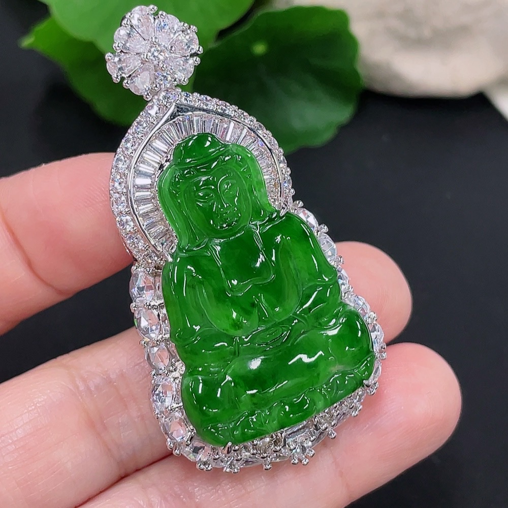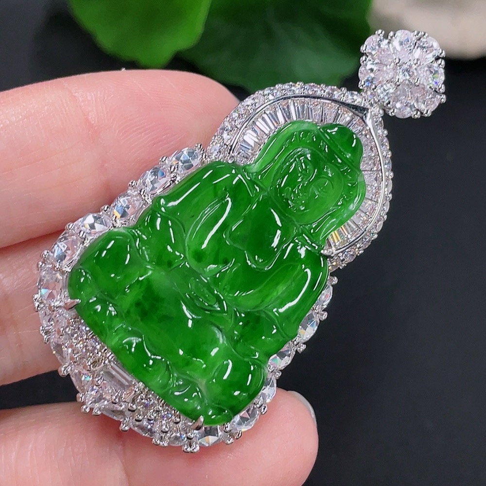 Jadeite Guanyin Inlaid Pendant Non-Gold Inlaid Total Weight About 22.26g
