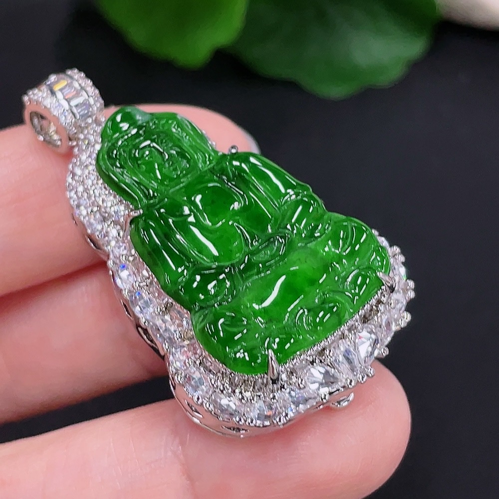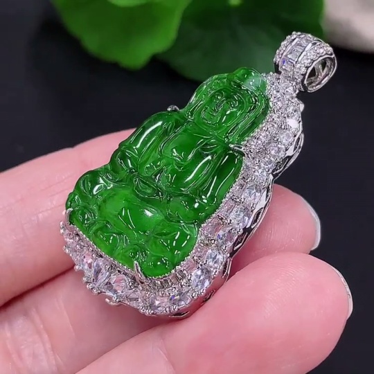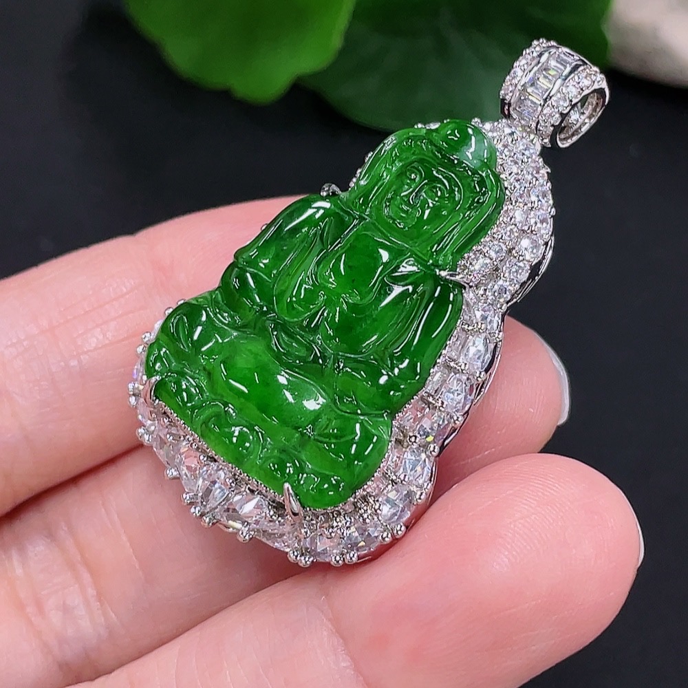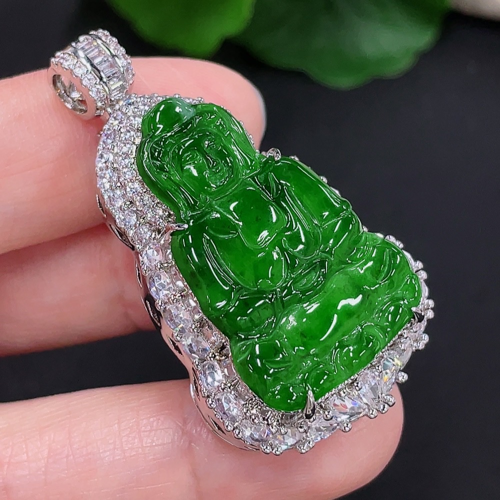 Jadeite Guanyin Inlaid Pendant Non-Gold Inlaid Total Weight Approx. 14.94g