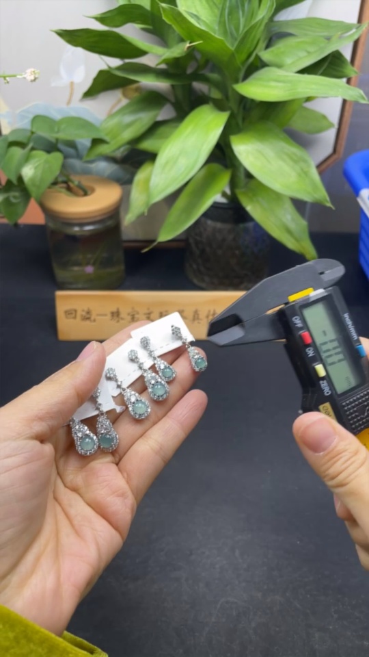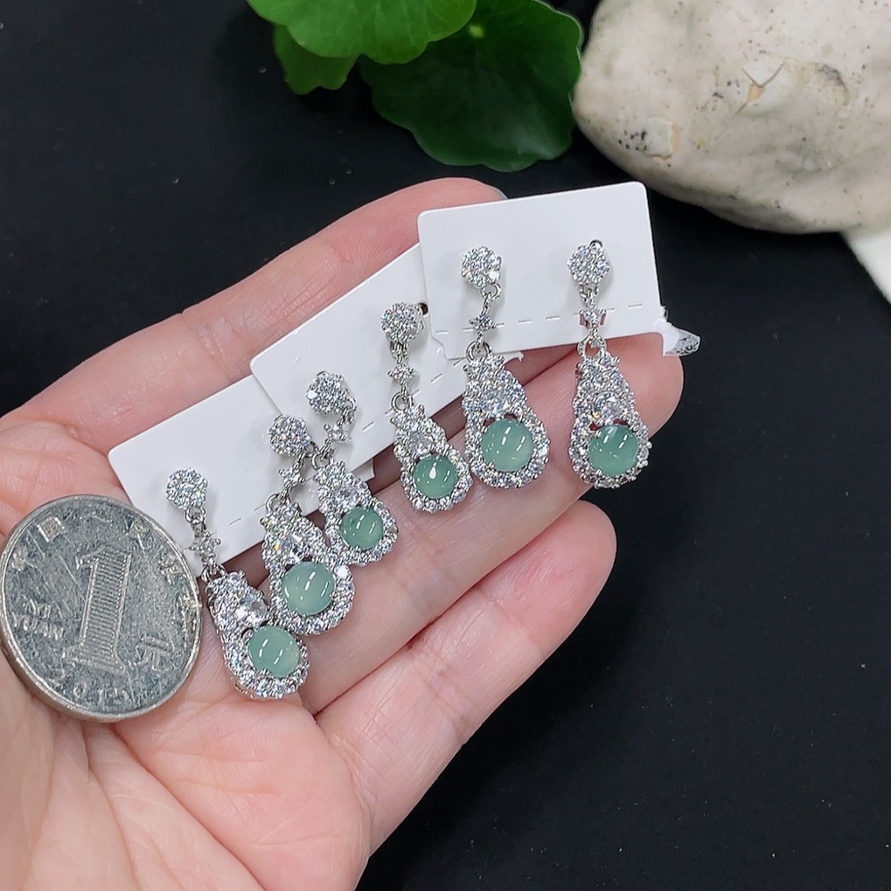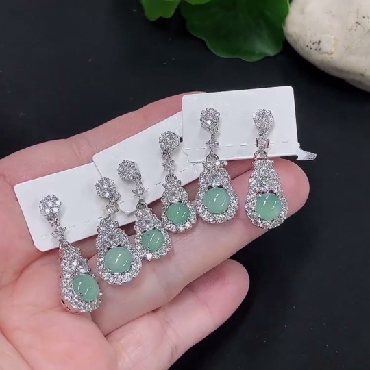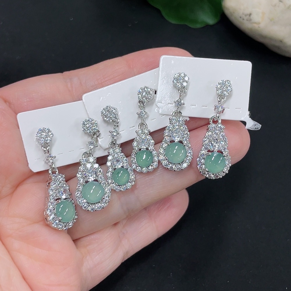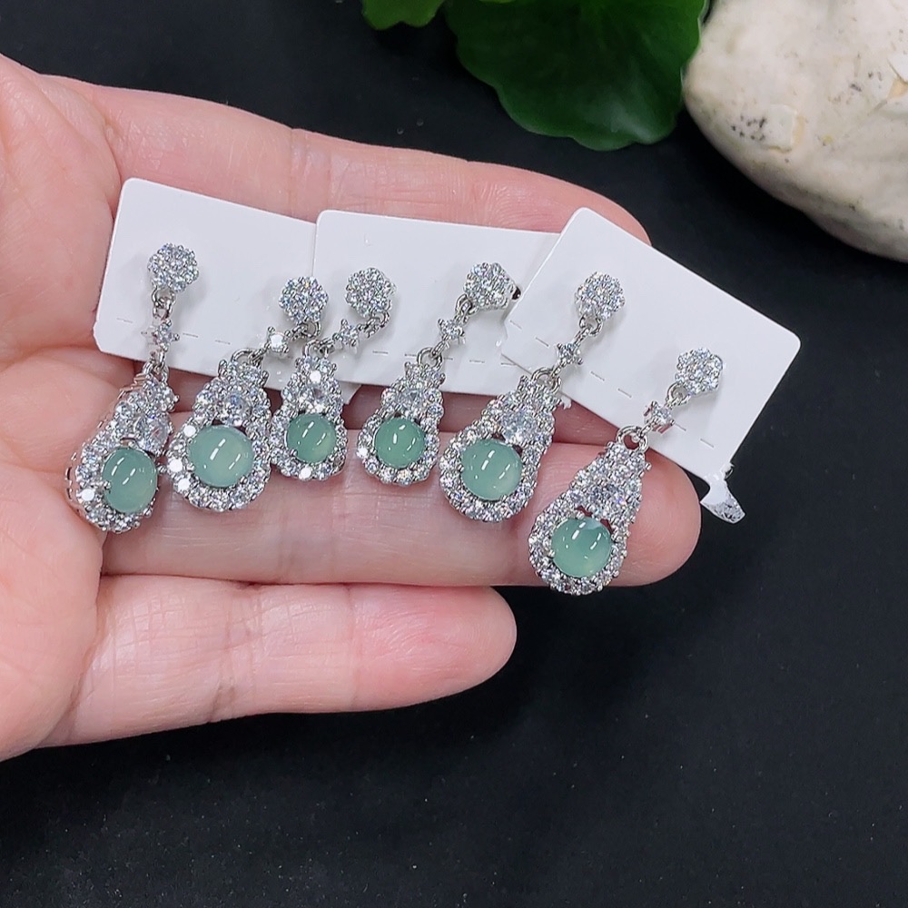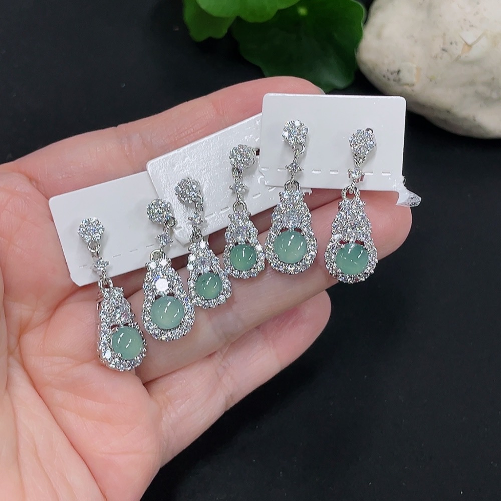 Jadeite cabochon inlaid earrings non-gold inlaid
