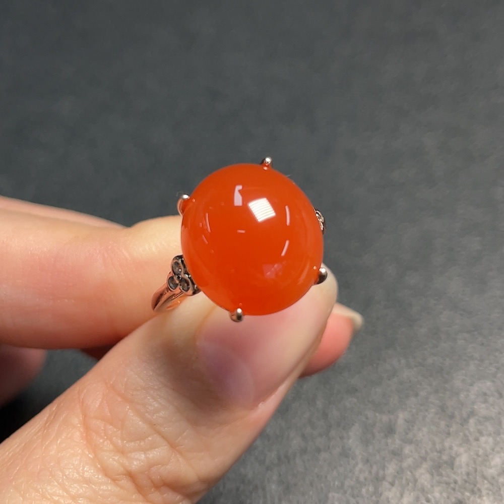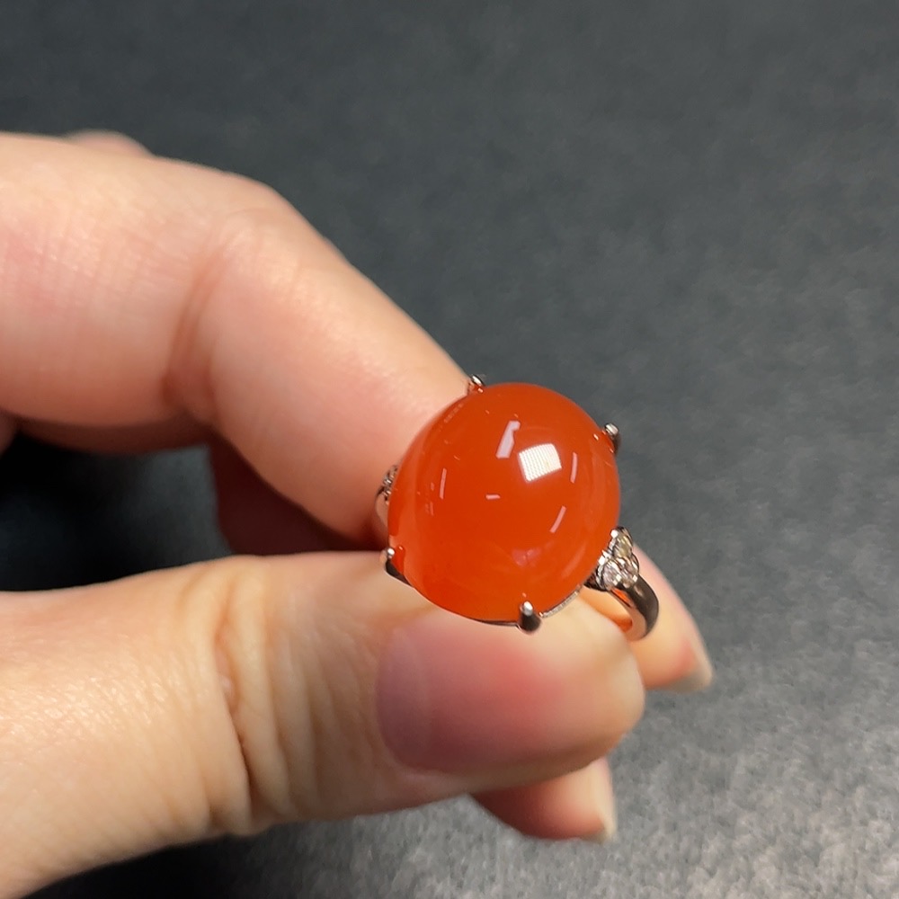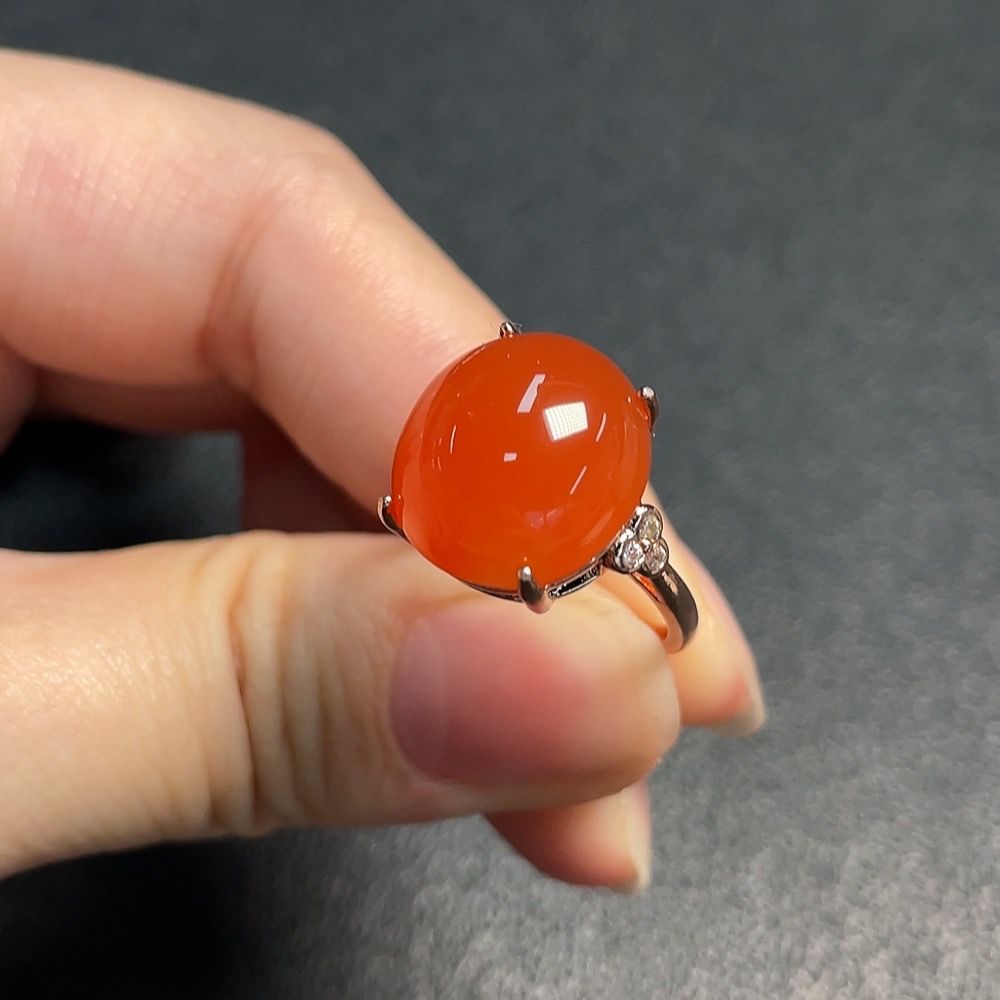 South Red Agate Ring, Non-Gold, Adjustable, Total Weight Approx. 4.5g