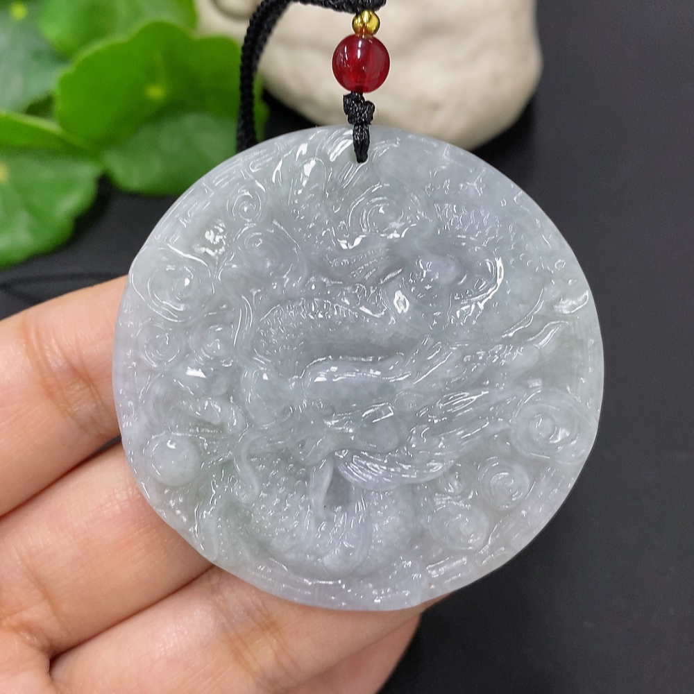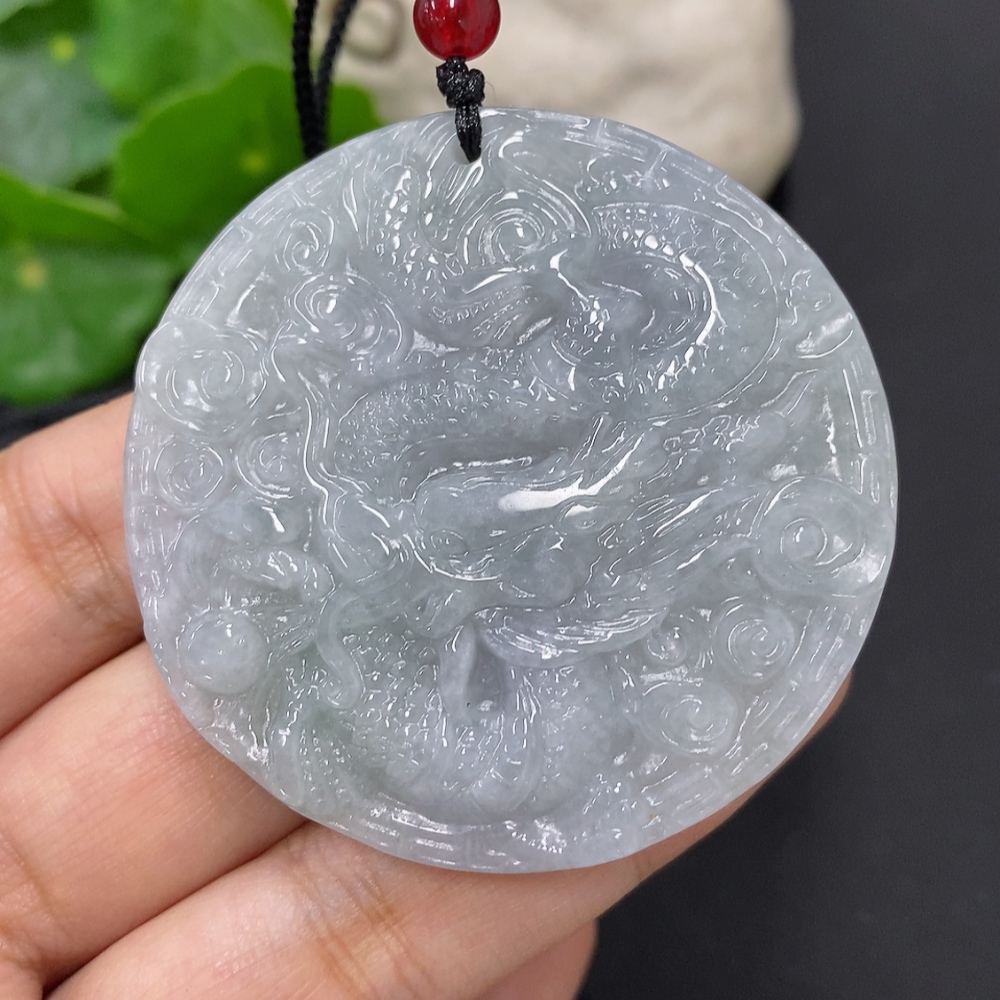 Jadeite Dragon Pendant Total Weight Including Rope Approximately 34.7g