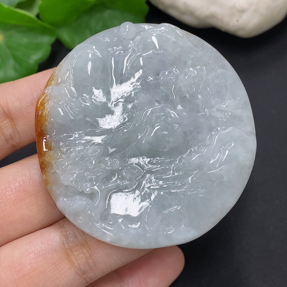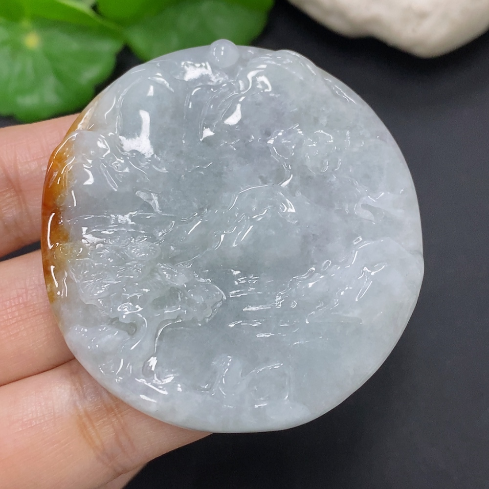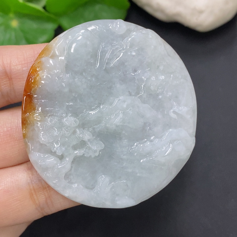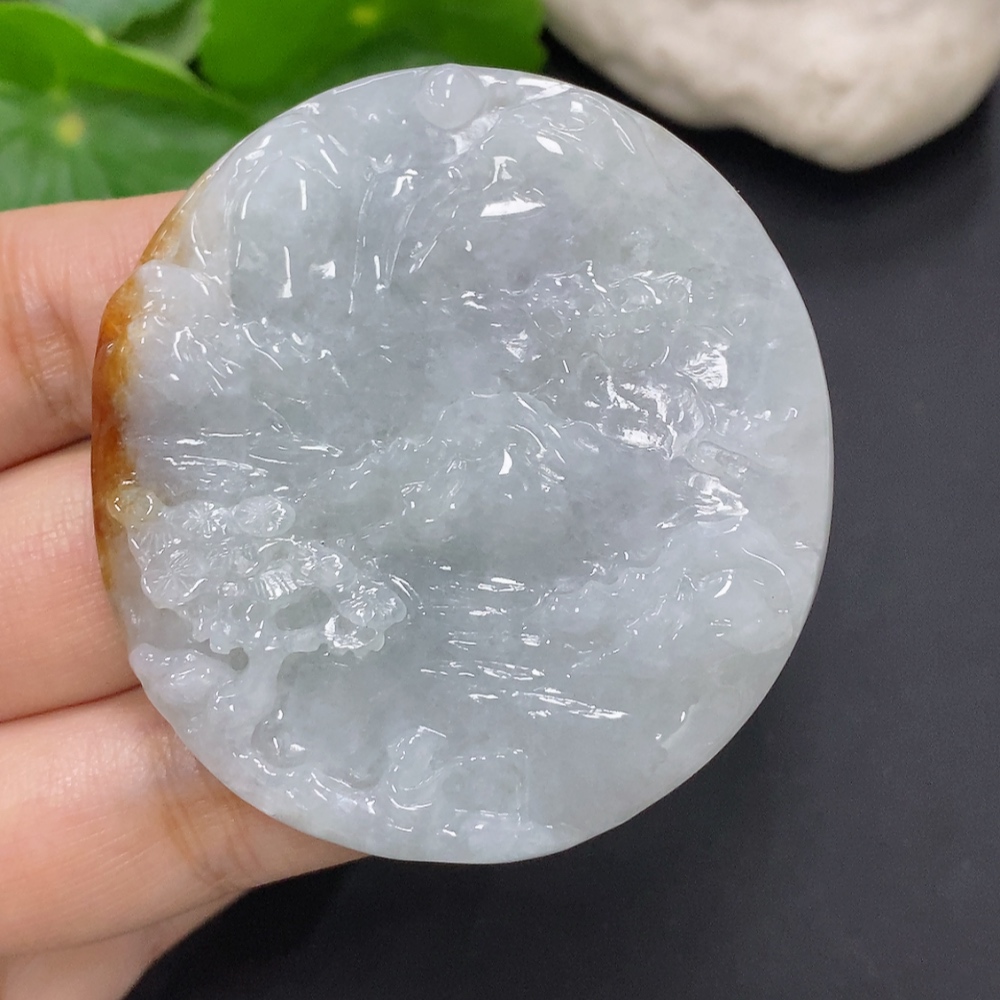 Jadeite Landscape Pendant, Total Weight Approximately 52.3g